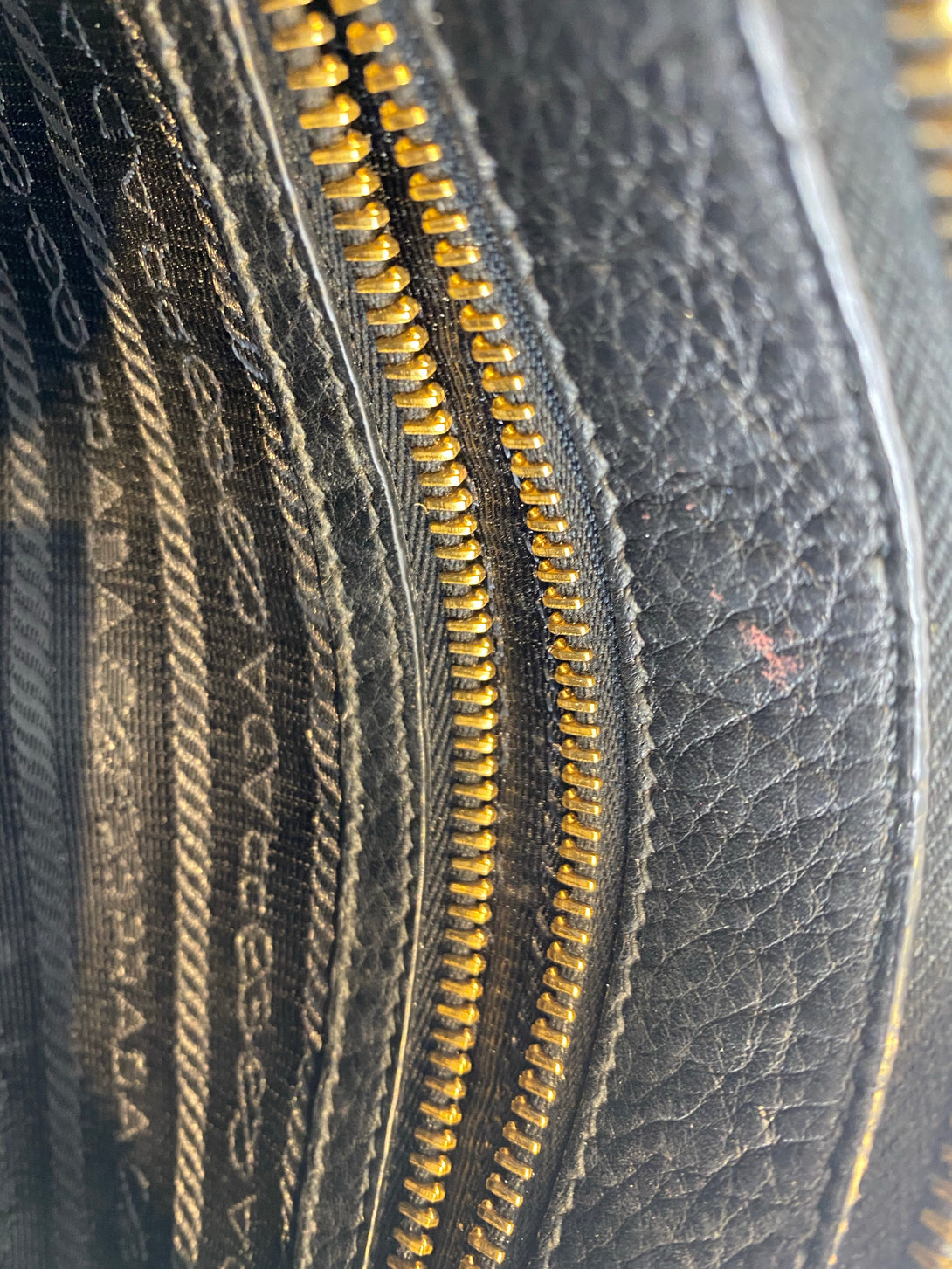 Good: Items show more prominent wear such as noticeable discoloration, stains and snags to fabric. May have worn corners and handles, tarnishing to hardware and creasing to leather. Pen or make up marks may be visible in the interior of the bag.