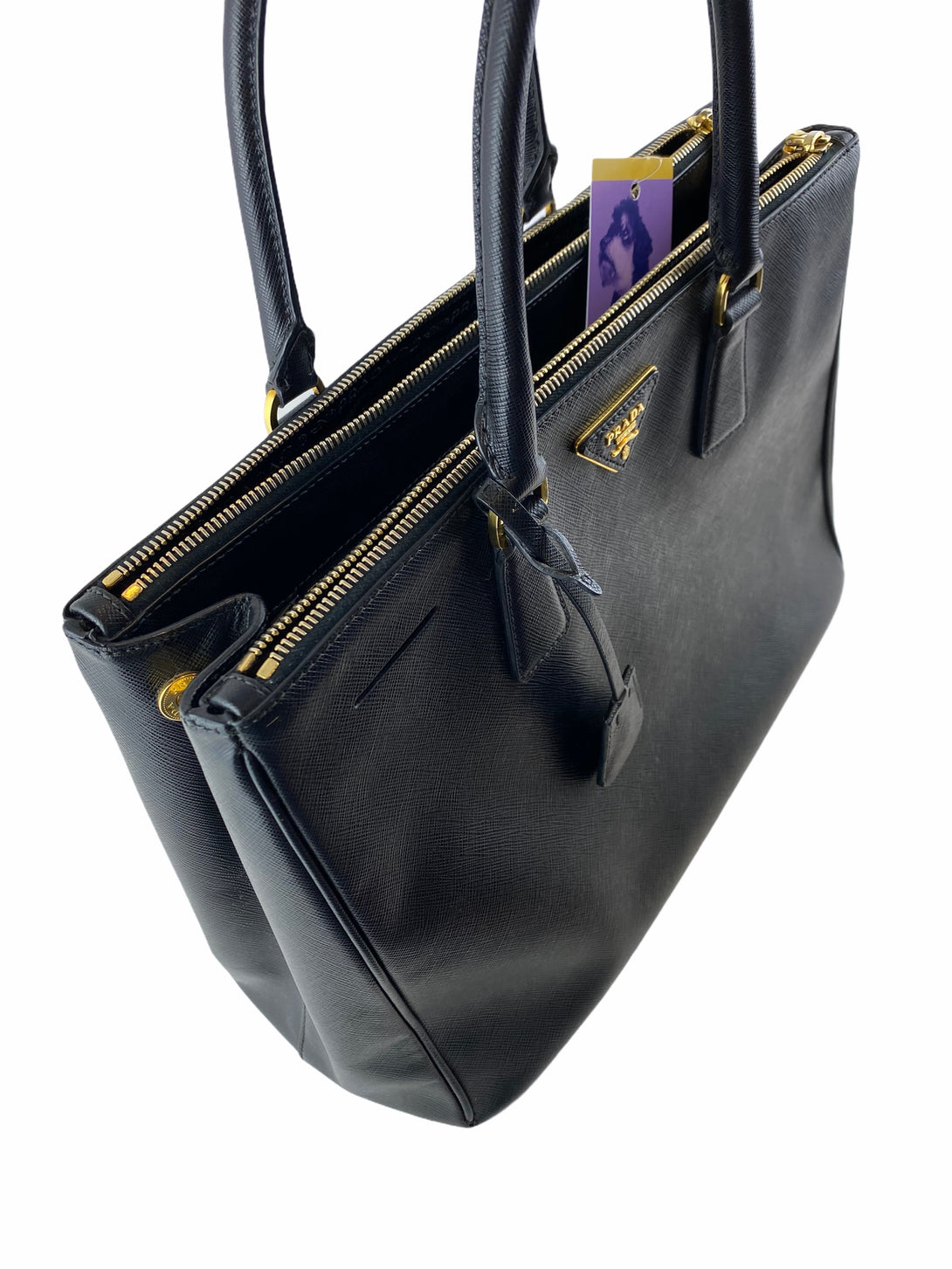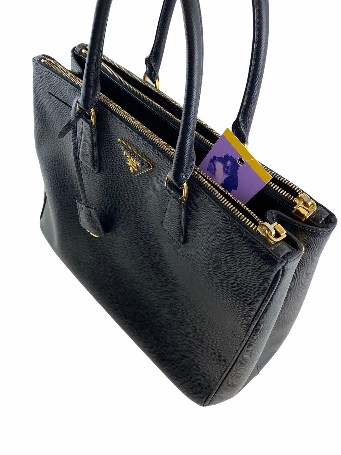 Prada Black Saffiano Leather Double Zip Tote