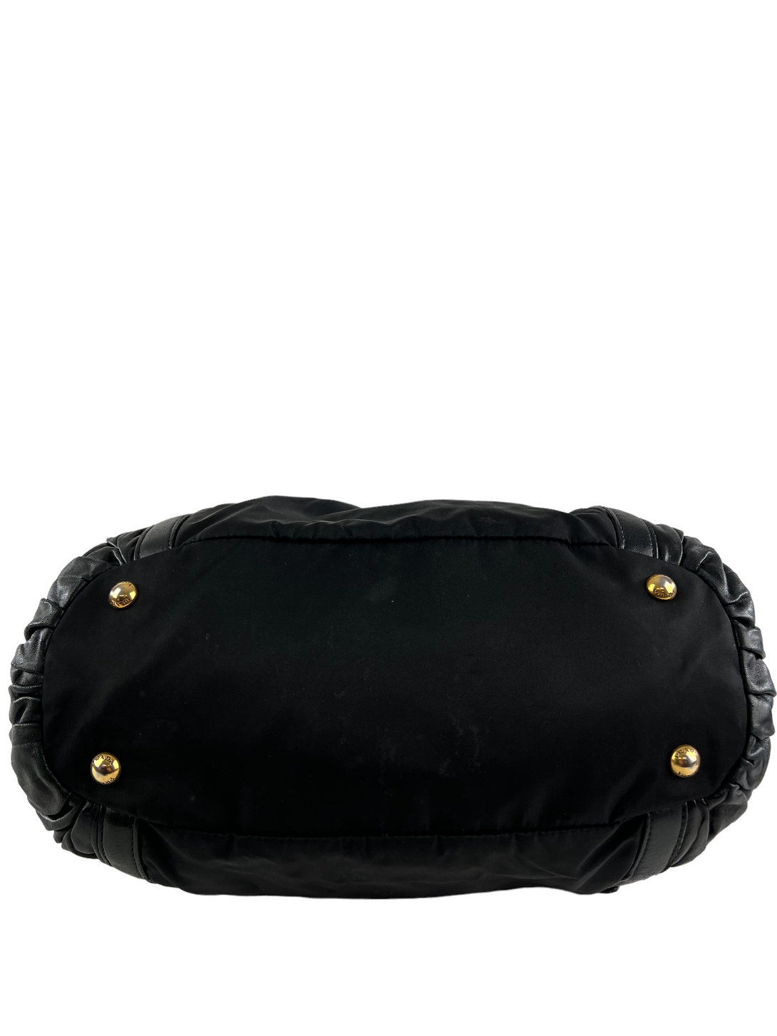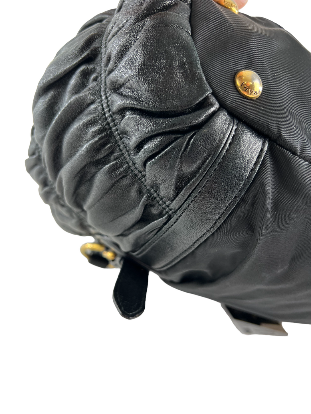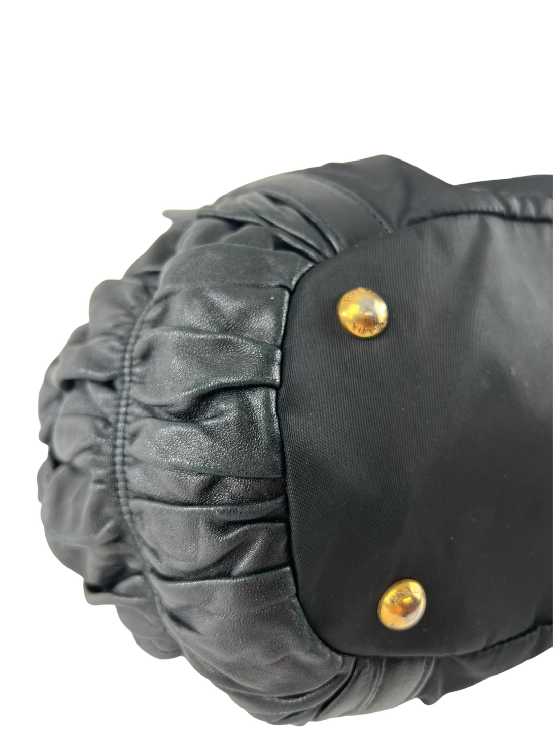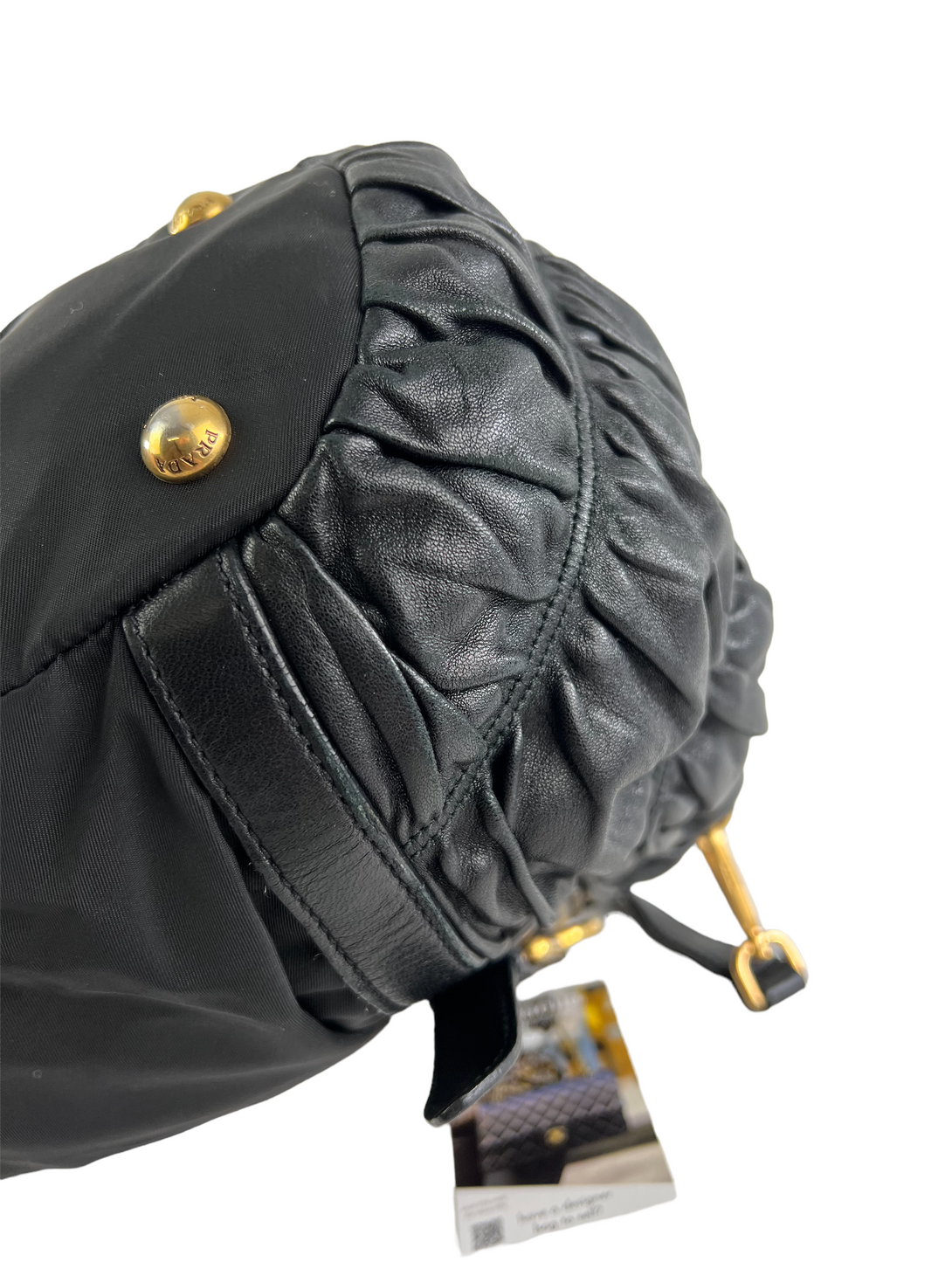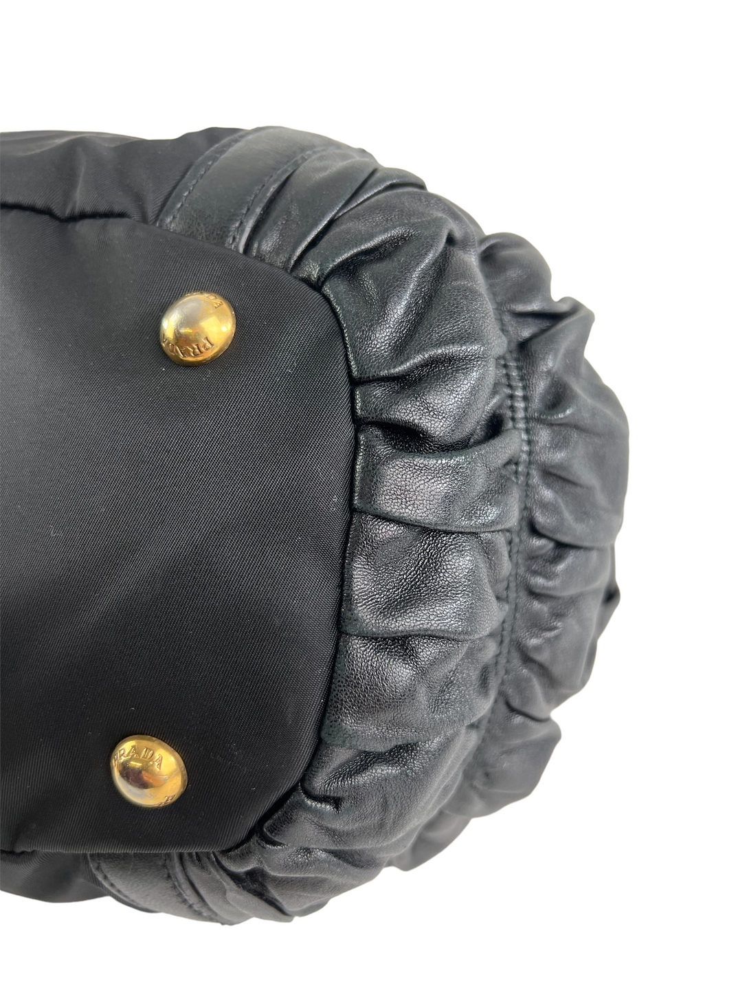 Prada Black Nylon & Leather Ruched Shoulder Bag