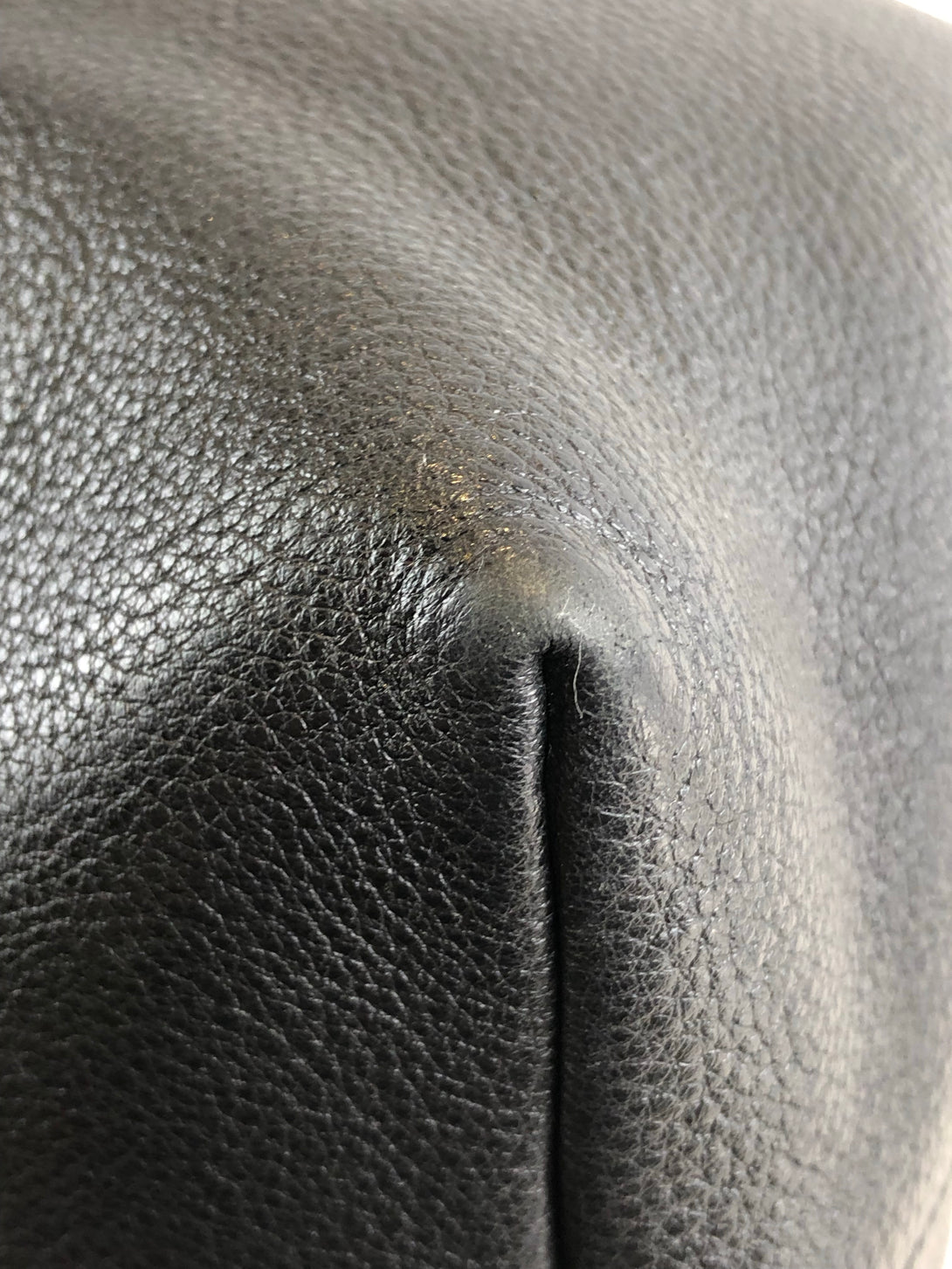 Good: Items show more prominent wear such as noticeable discoloration, stains and snags to fabric. May have worn corners and handles, tarnishing to hardware and creasing to leather. Pen or make up marks may be visible in the interior of the bag.