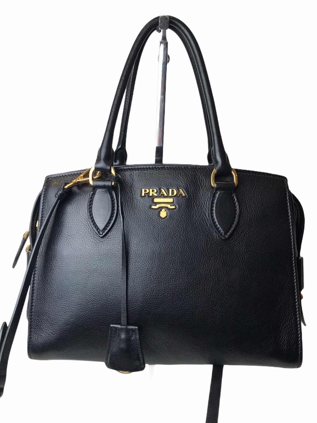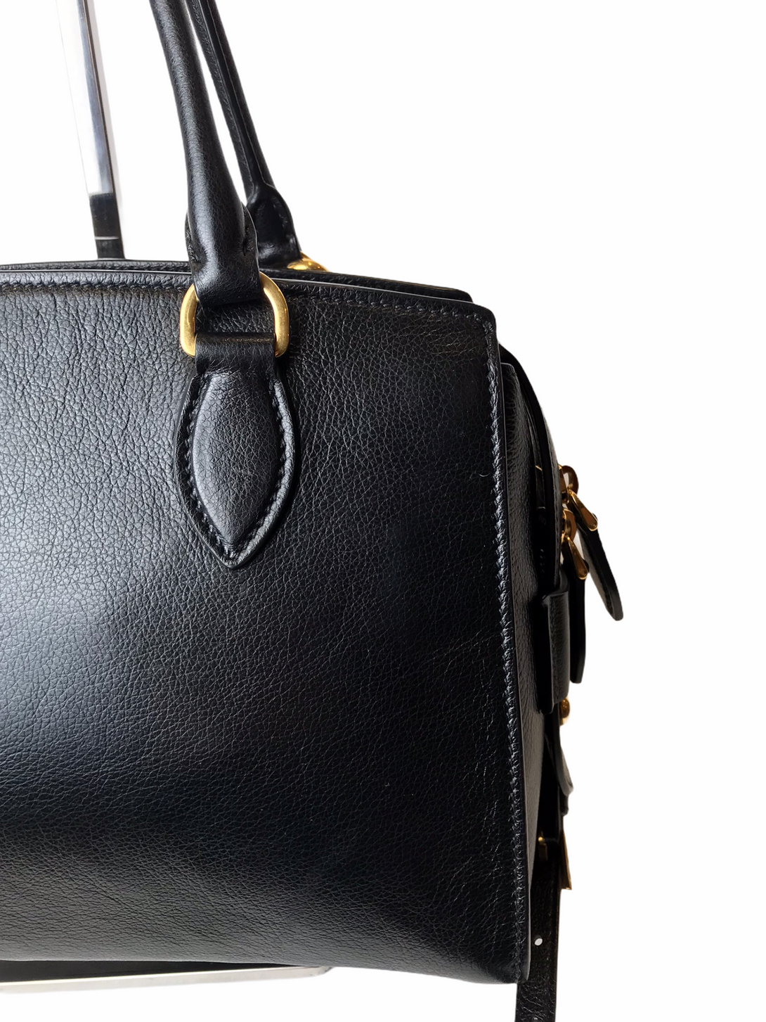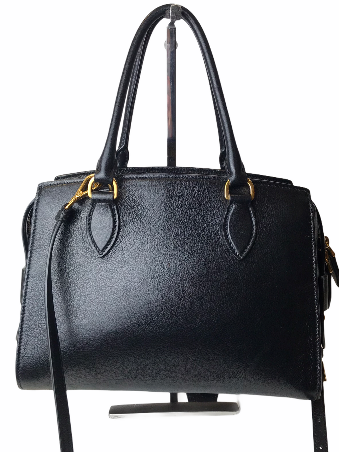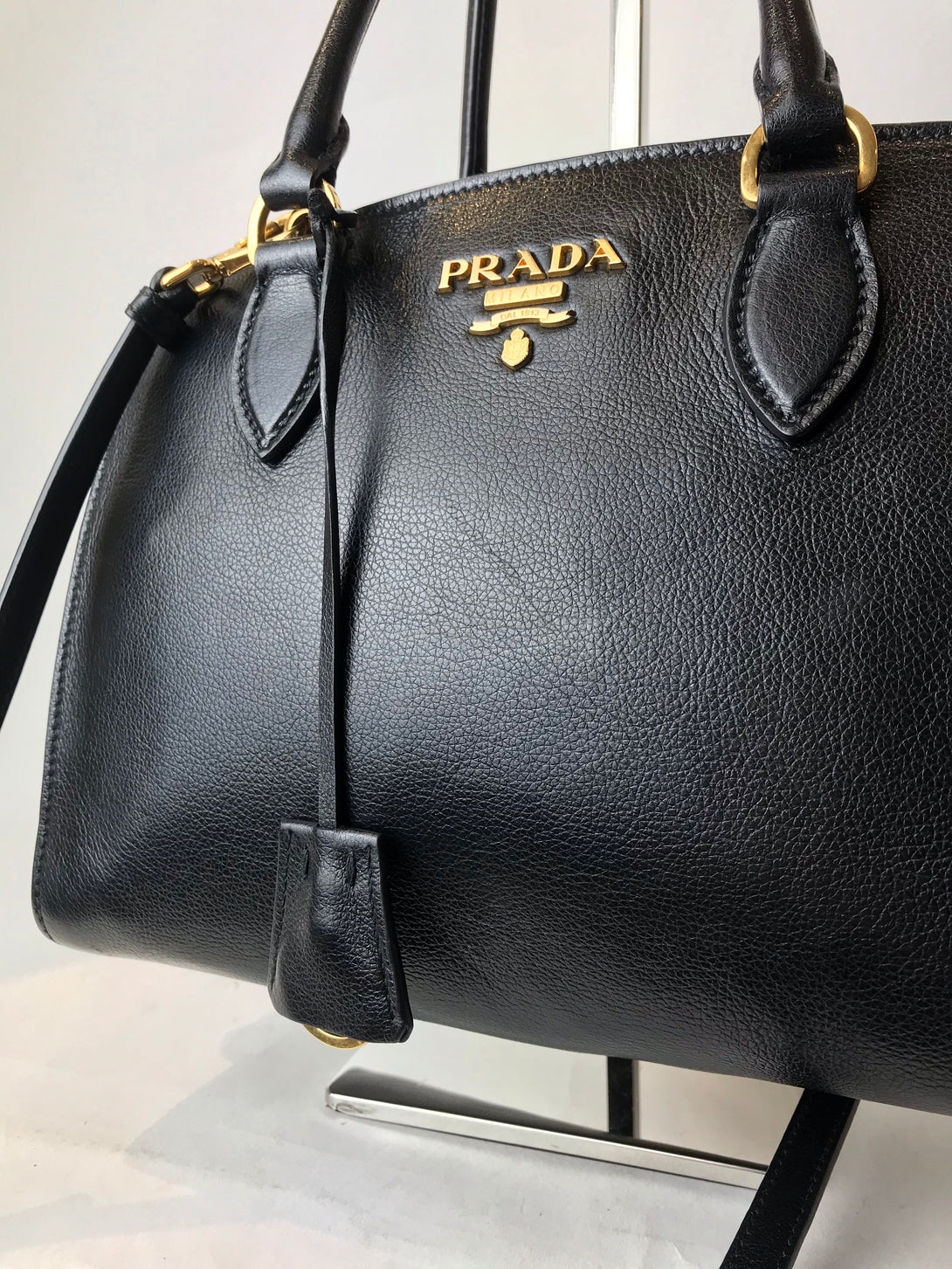 Prada "Cameo" Black Glazed Calfskin Leather Crossbody Tote - As Seen on Instagram 14/02/21
