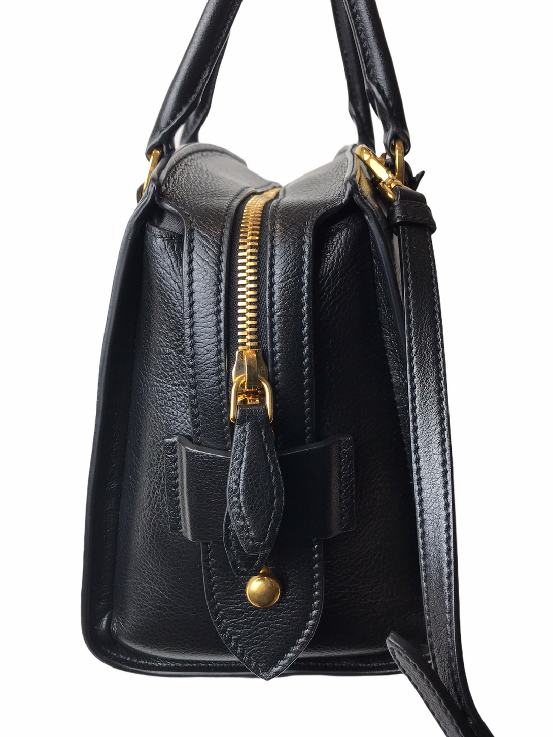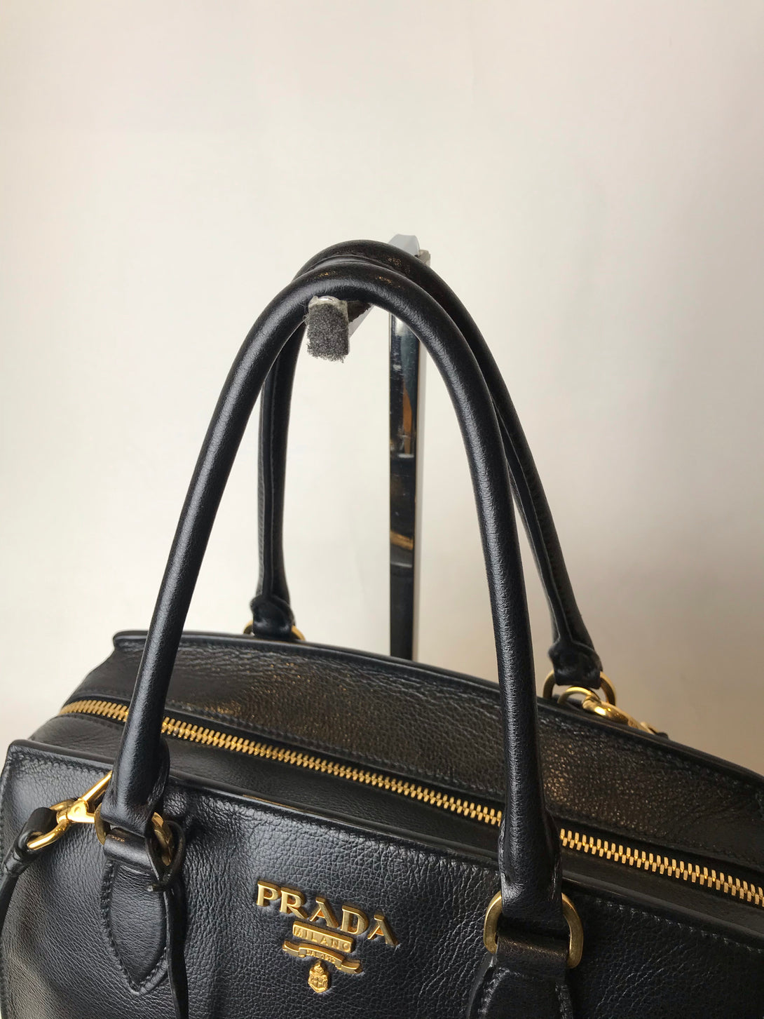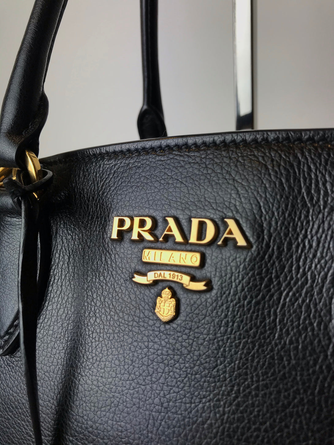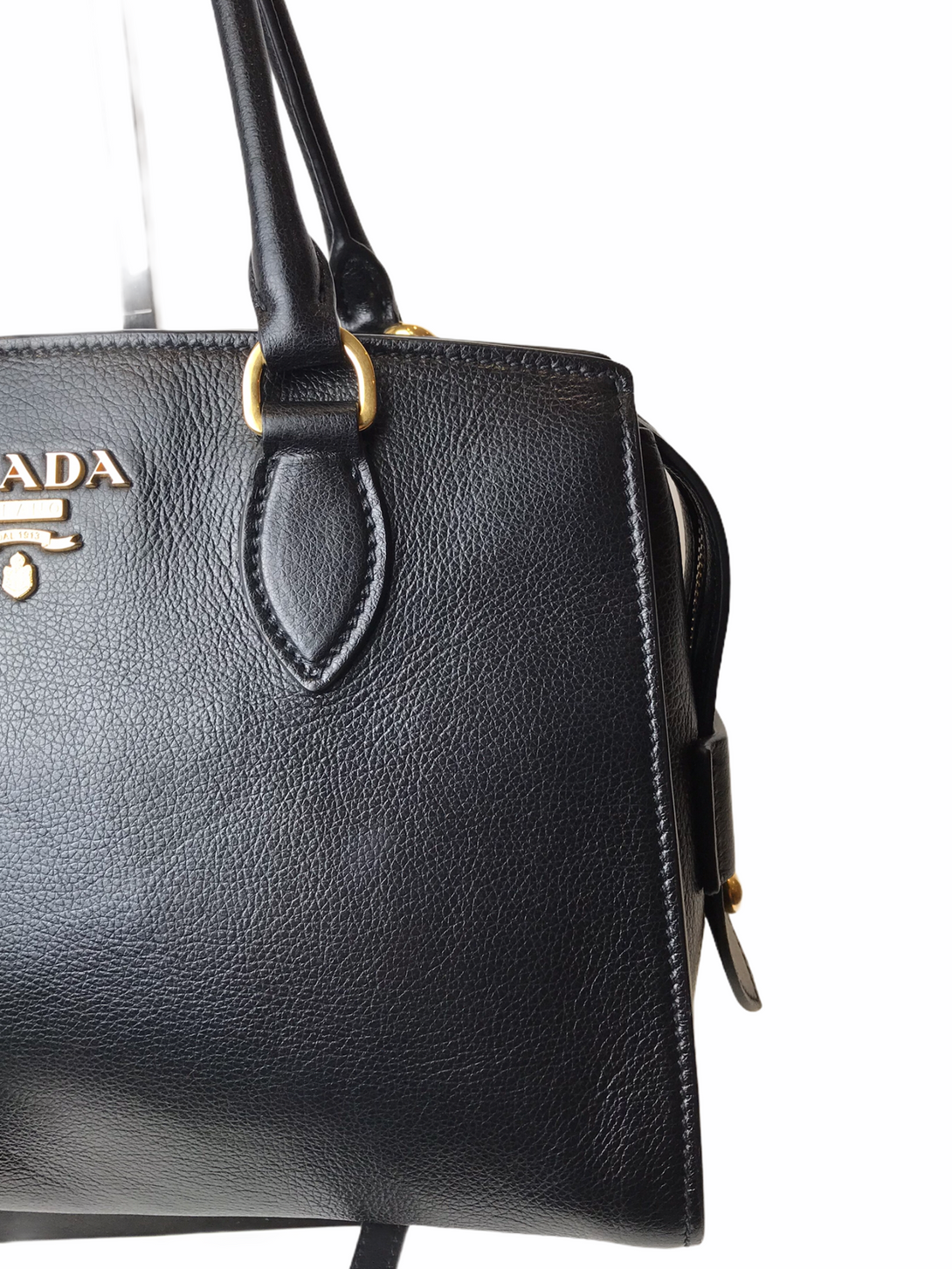 Prada "Cameo" Black Glazed Calfskin Leather Crossbody Tote - As Seen on Instagram 14/02/21