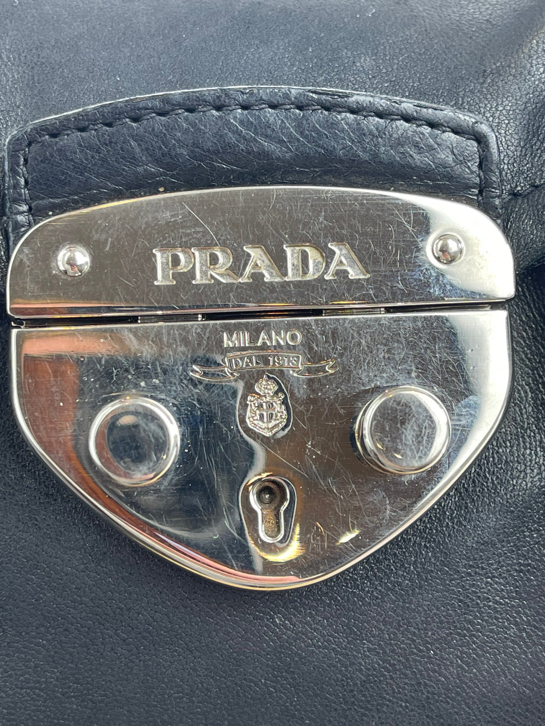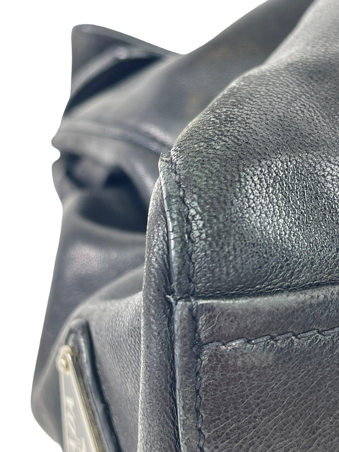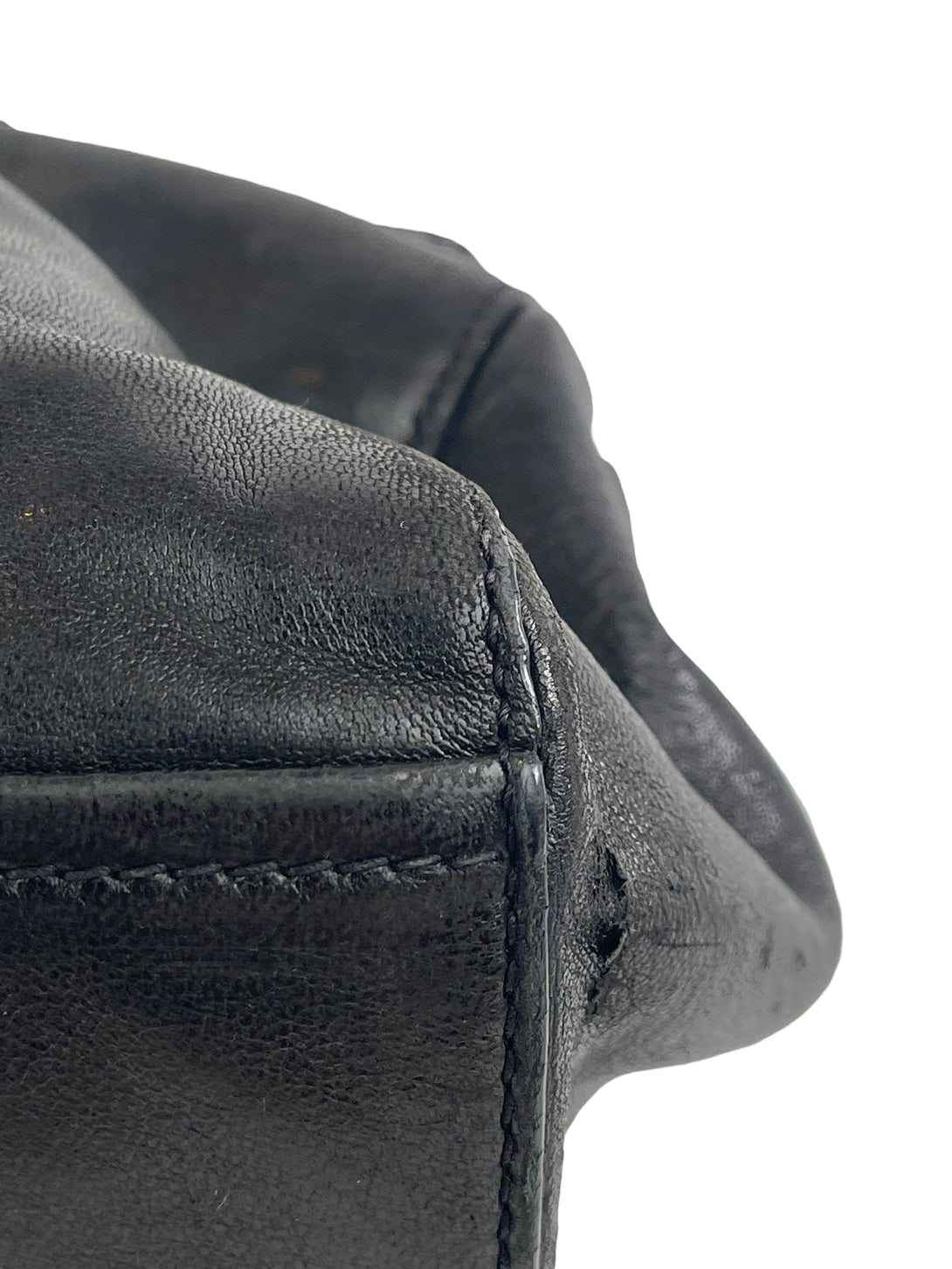 Good: Items show more prominent wear such as noticeable discoloration, stains and snags to fabric. May have worn corners and handles, tarnishing to hardware and creasing to leather. Pen or make up marks may be visible in the interior of the bag.