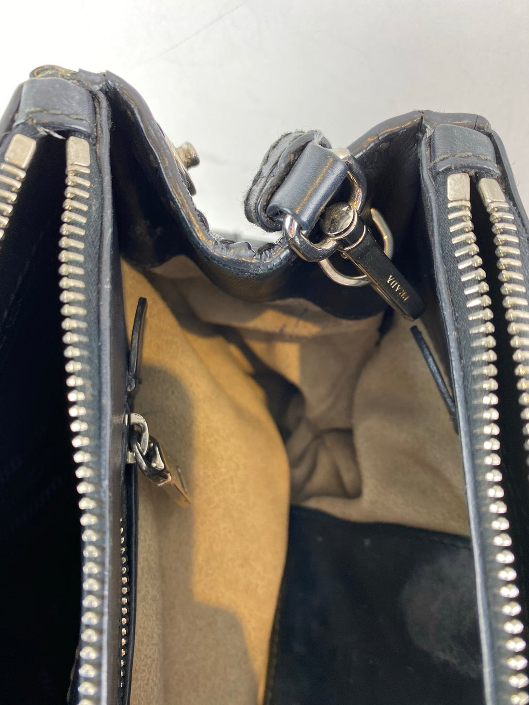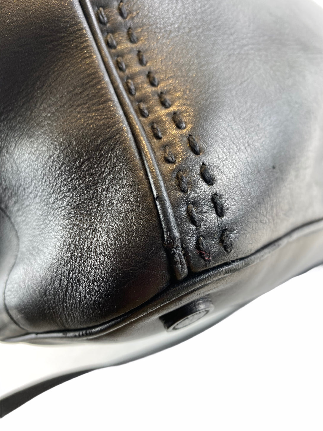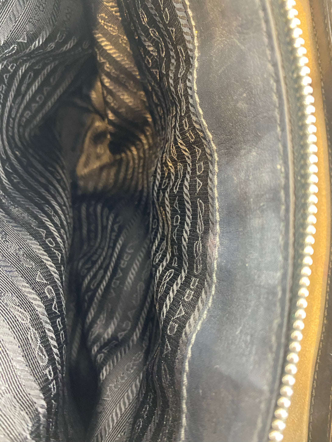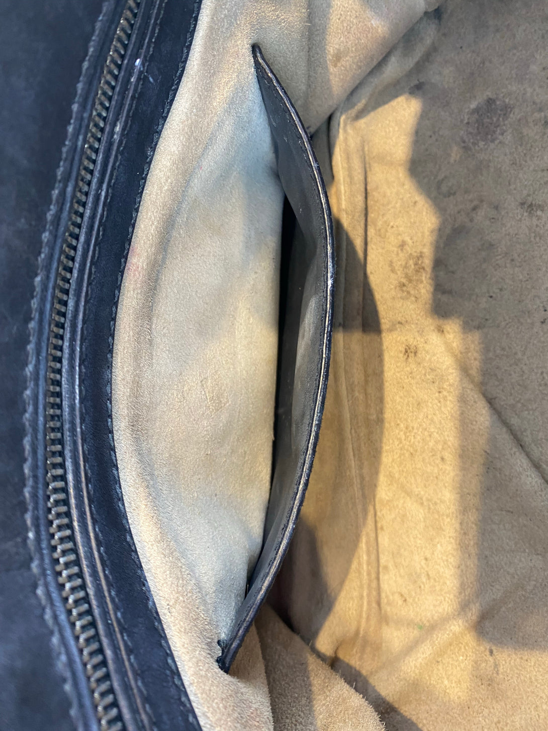 Good: Items show more prominent wear such as noticeable discoloration, stains and snags to fabric. May have worn corners and handles, tarnishing to hardware and creasing to leather. Pen or make up marks may be visible in the interior of the bag.