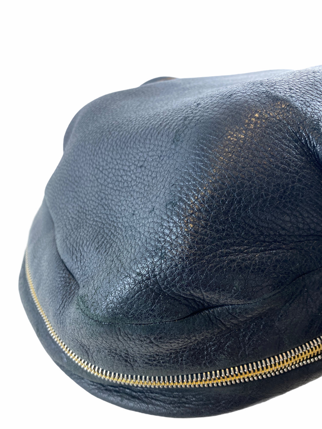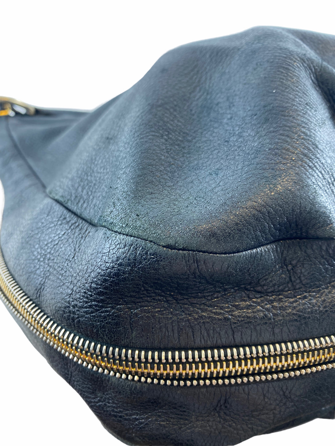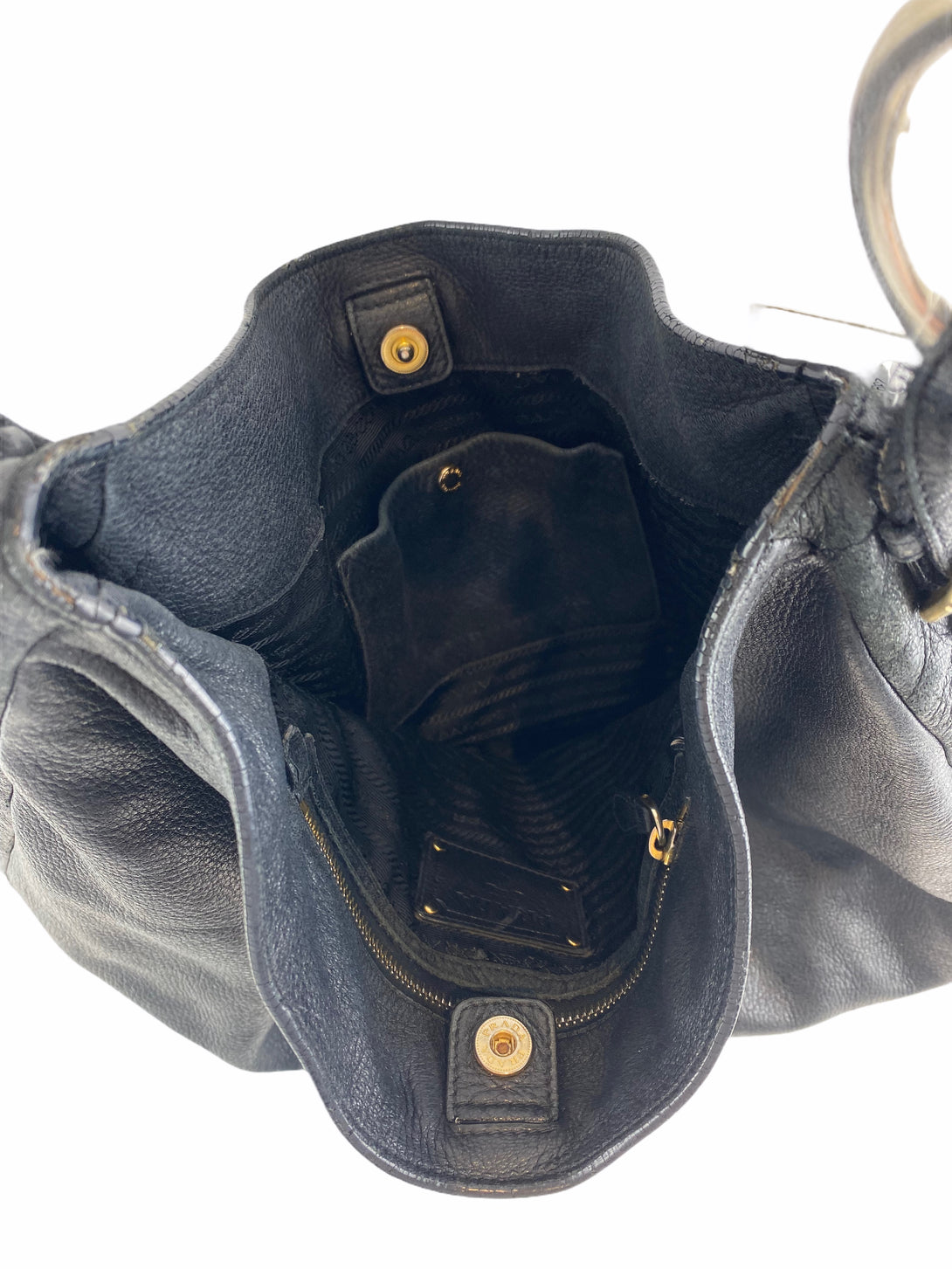 Prada Black Cervo Leather “Zipper Hobo” Tote
