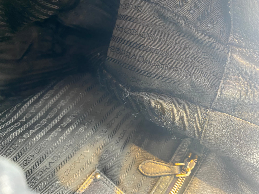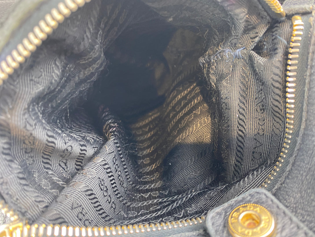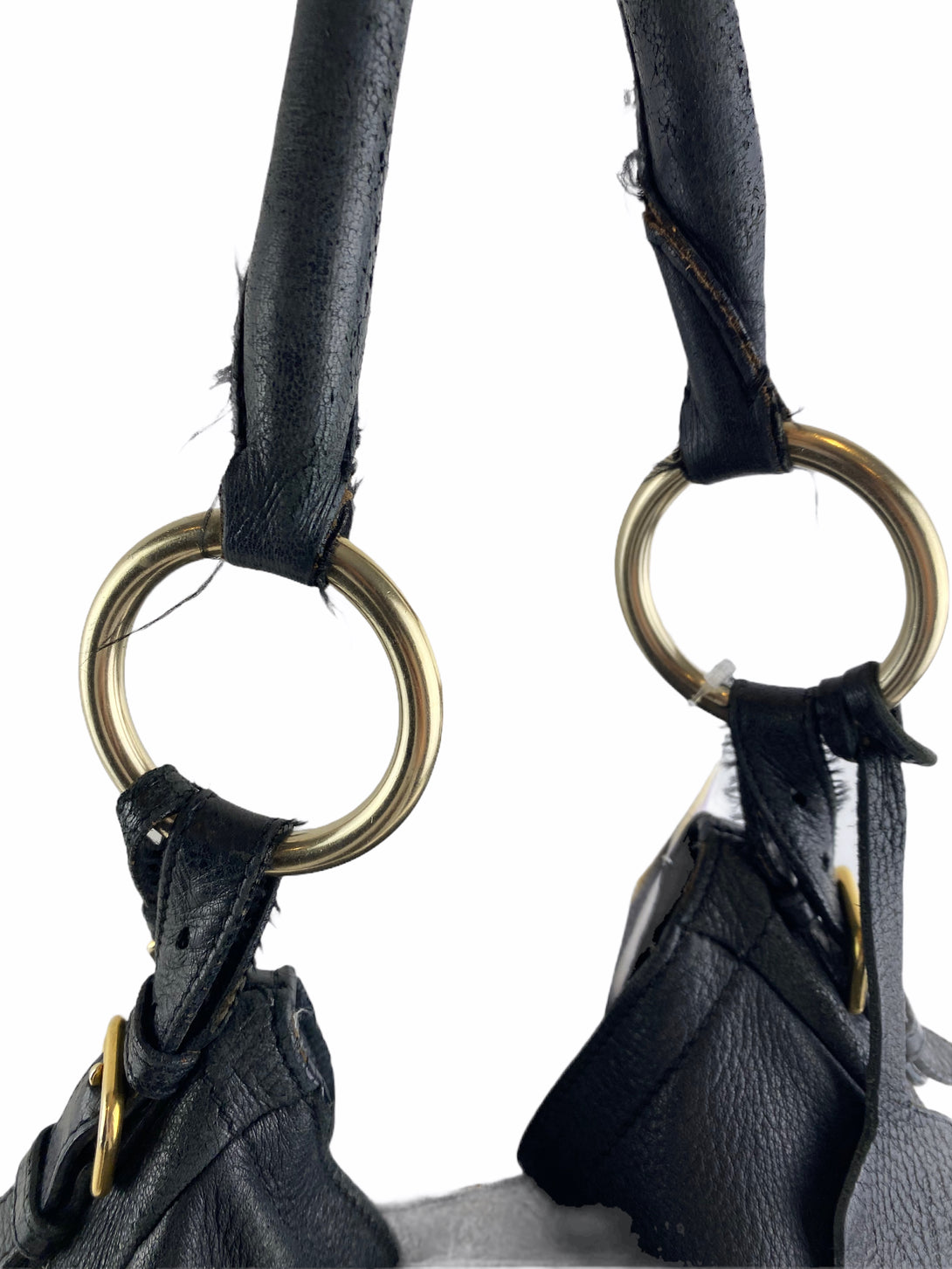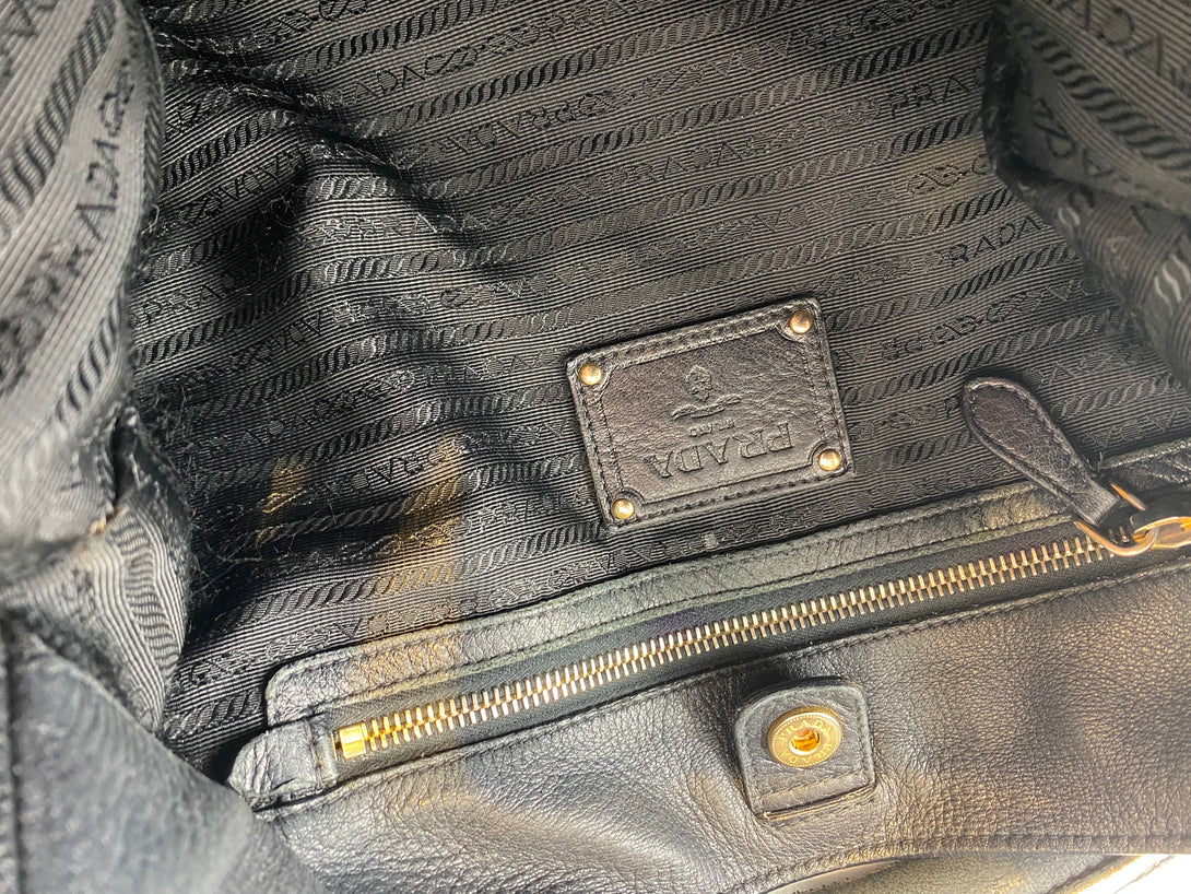 Prada Black Cervo Leather “Zipper Hobo” Tote