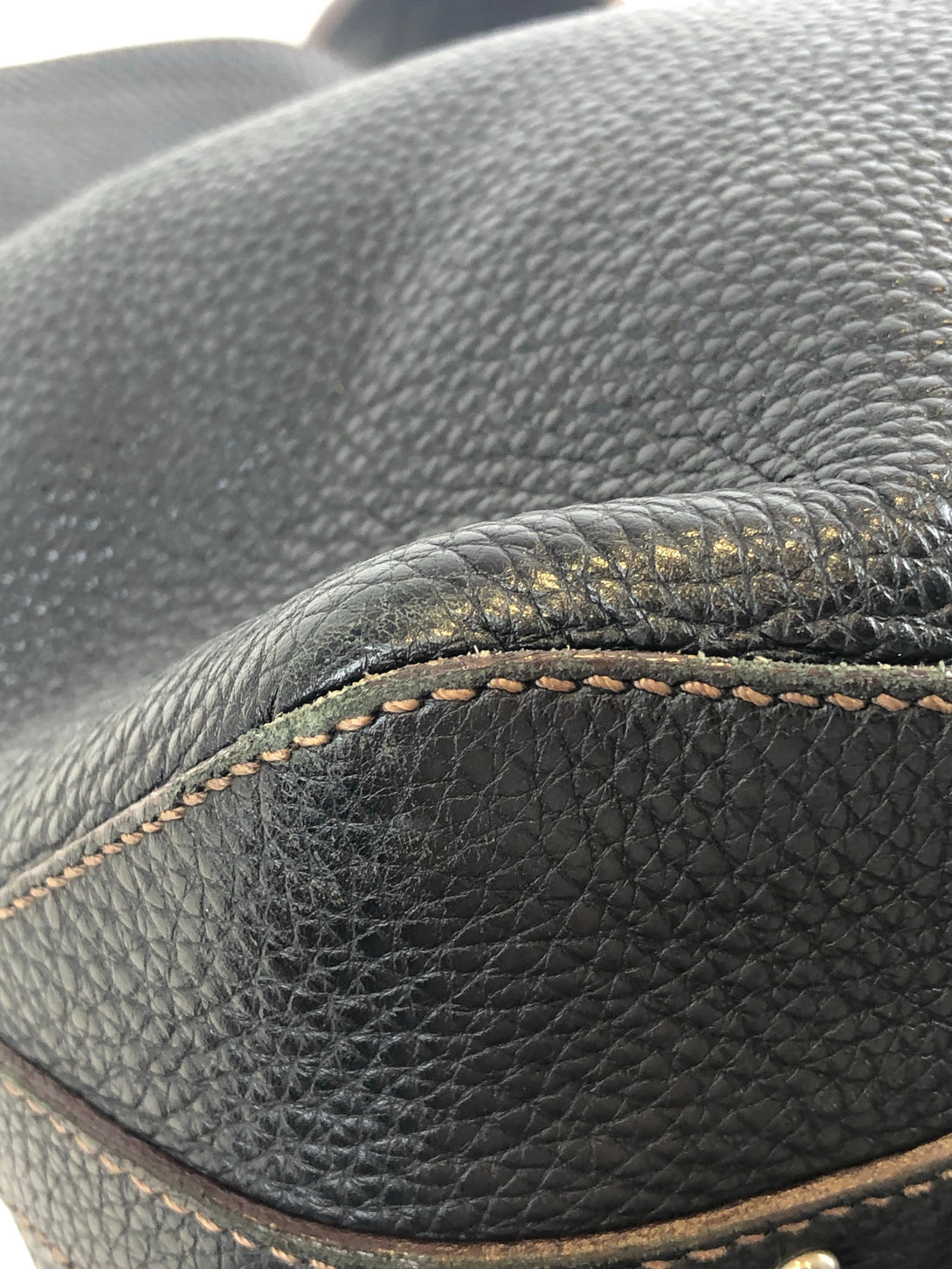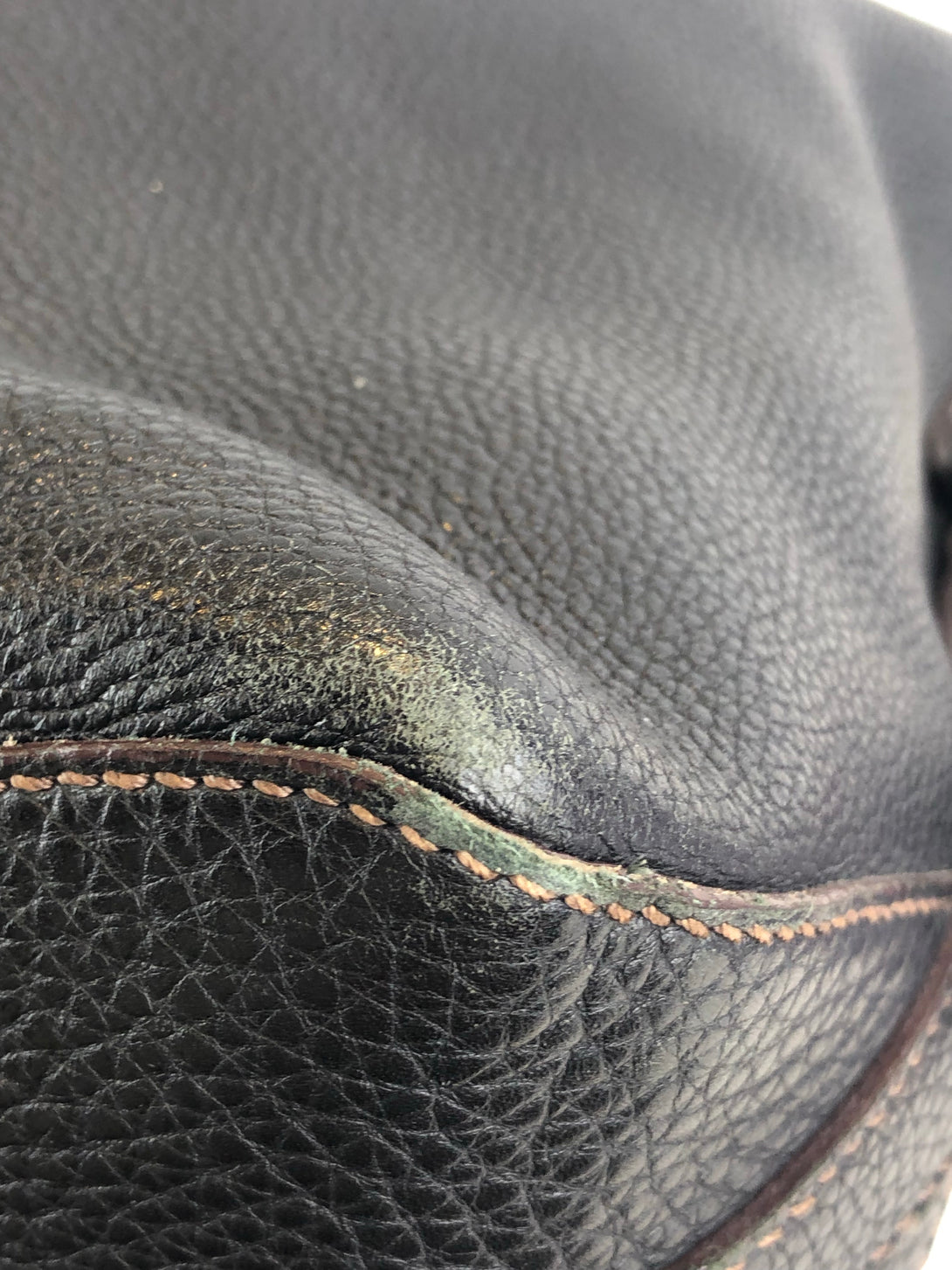 Good: Items show more prominent wear such as noticeable discoloration, stains and snags to fabric. May have worn corners and handles, tarnishing to hardware and creasing to leather. Pen or make up marks may be visible in the interior of the bag.