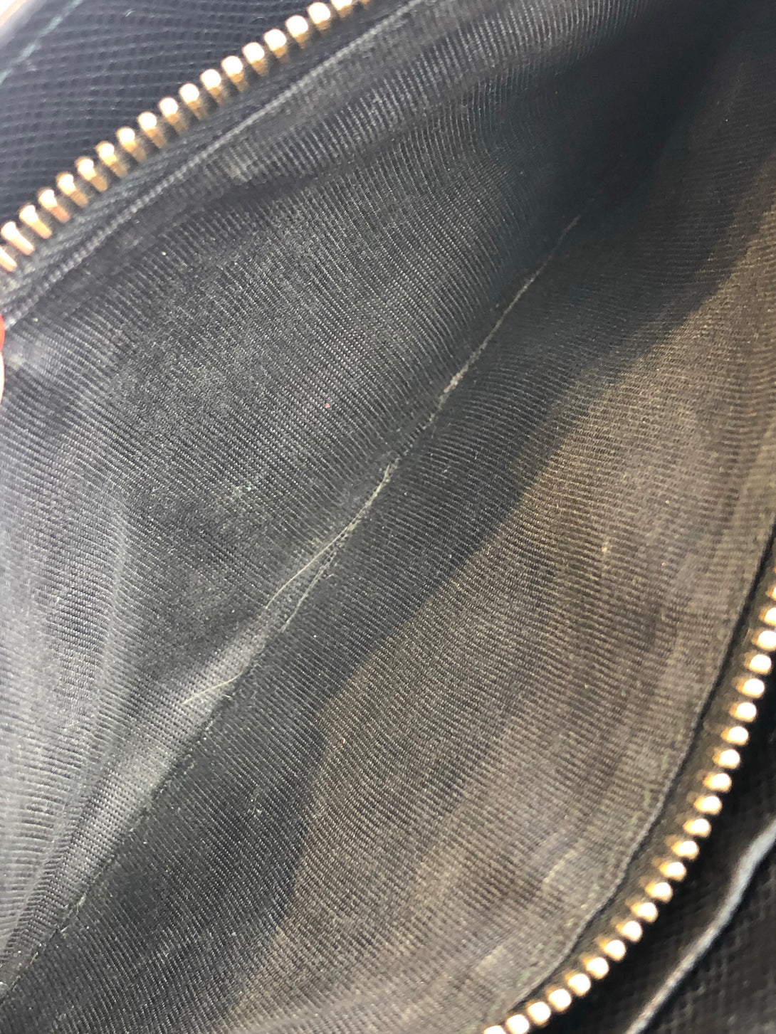 Good: Items show more prominent wear such as noticeable discoloration, stains and snags to fabric. May have worn corners and handles, tarnishing to hardware and creasing to leather. Pen or make up marks may be visible in the interior of the bag.