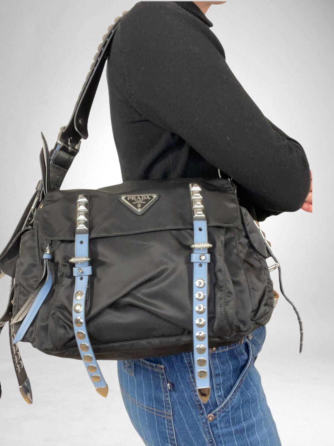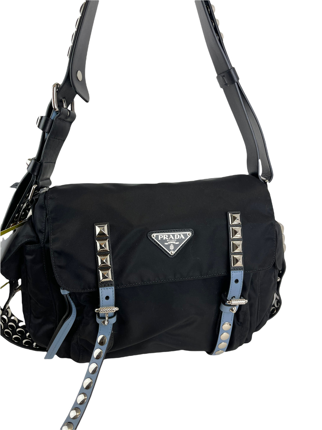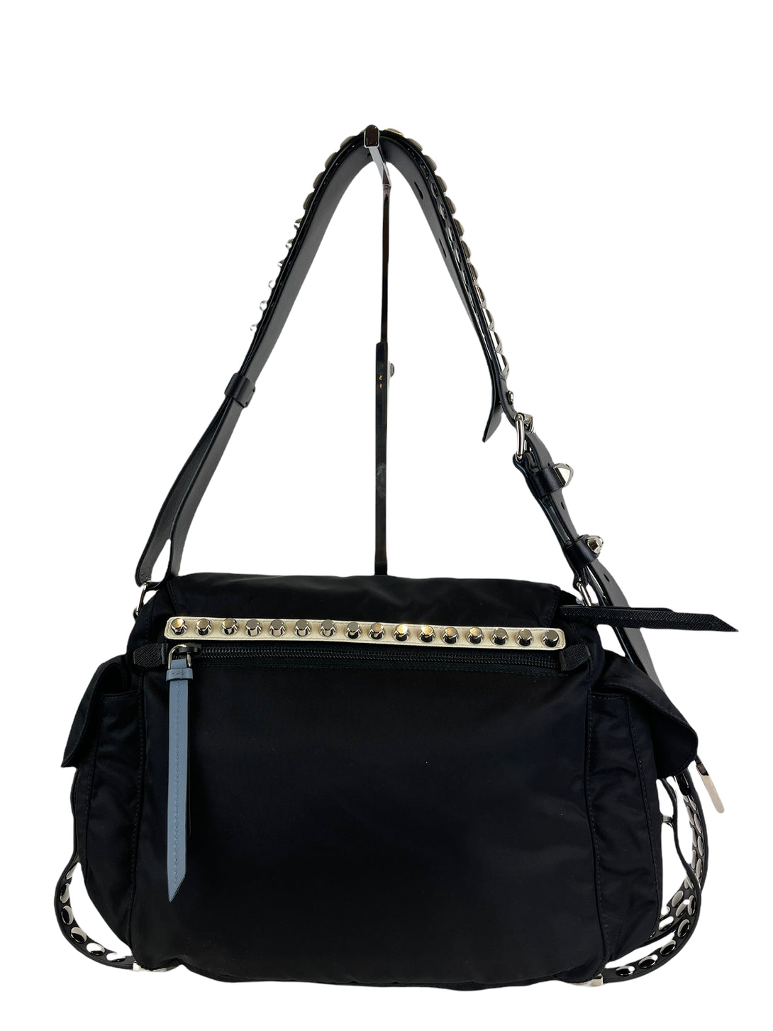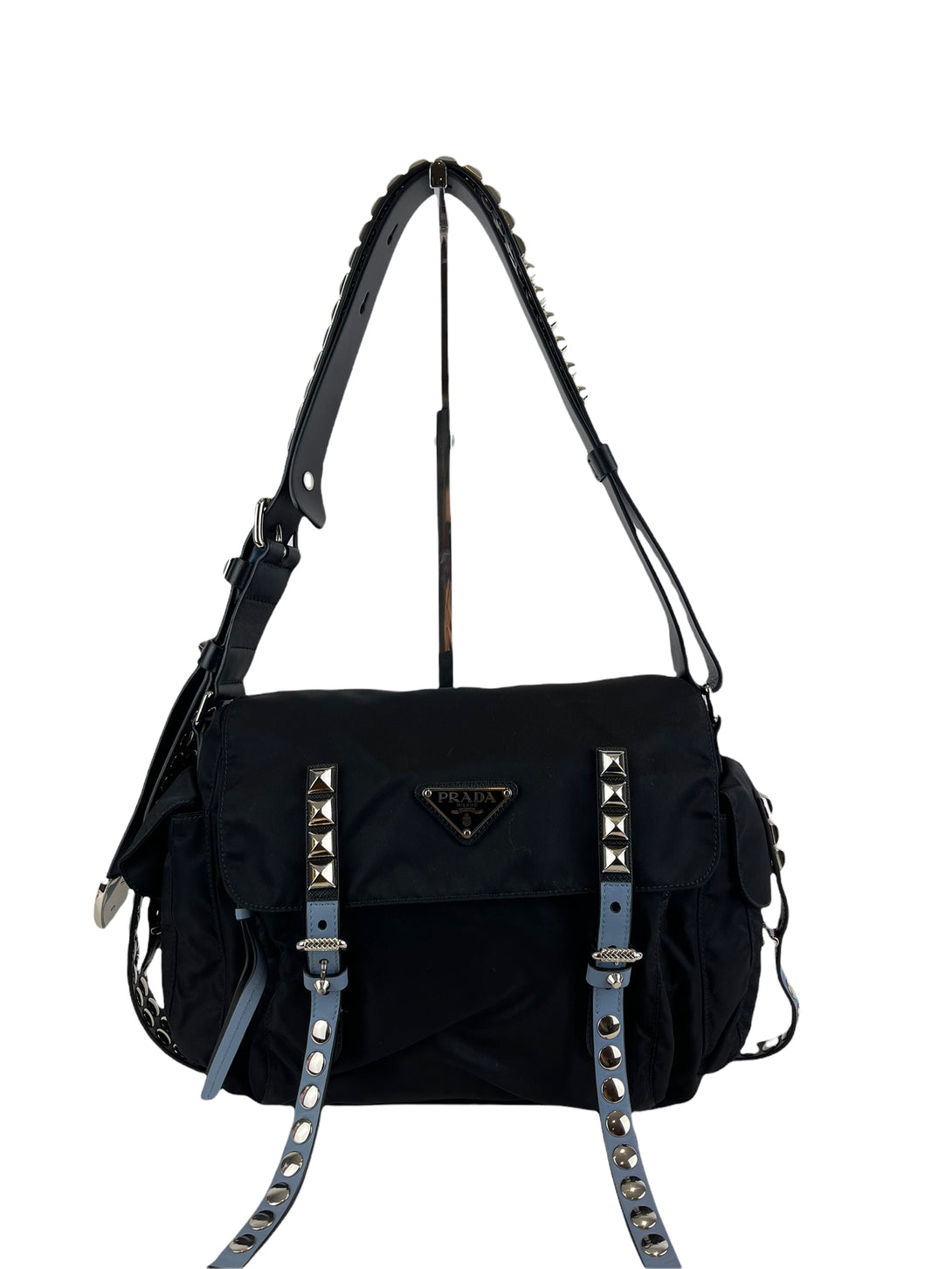 Prada Black Nylon ‘New Vela’ Flap Messenger Bag