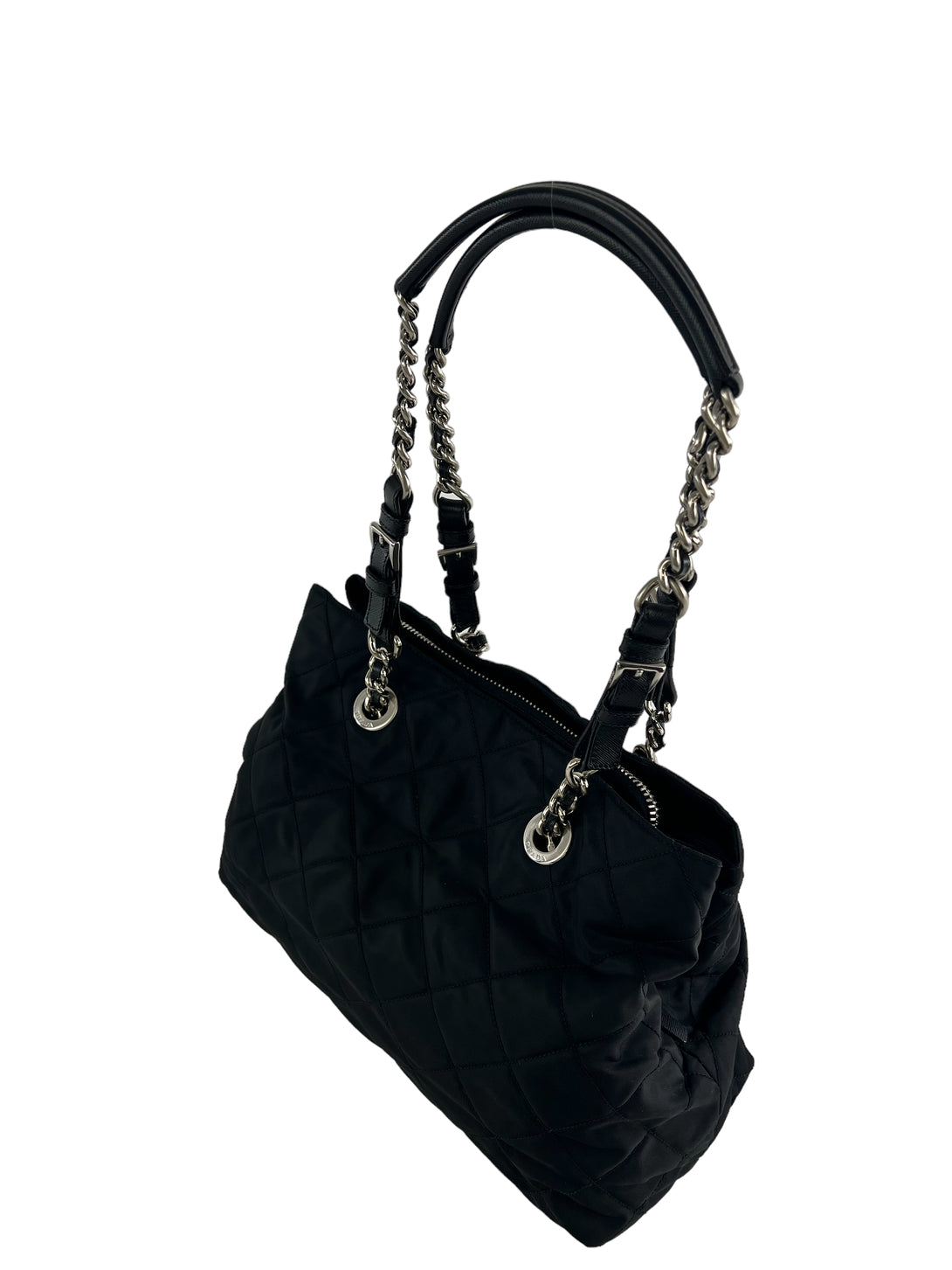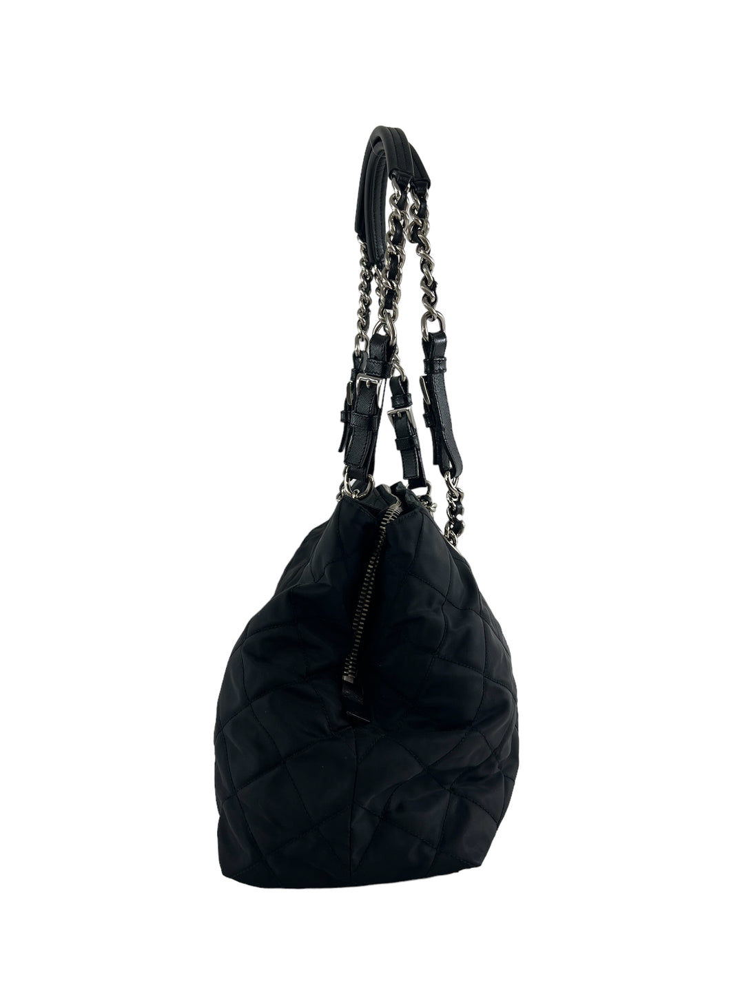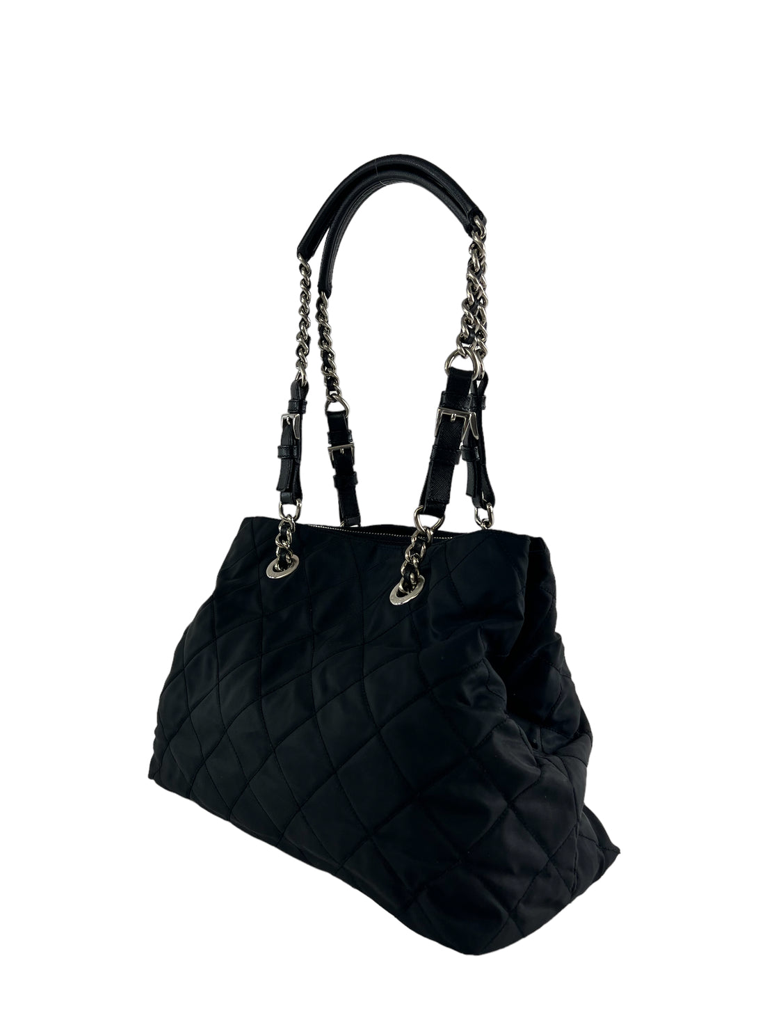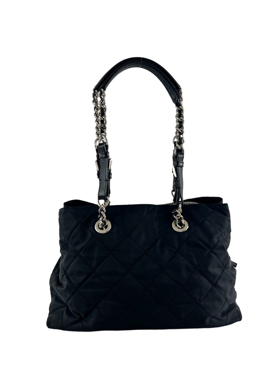 Prada Black Nylon Tote with Silver Chain Detail
