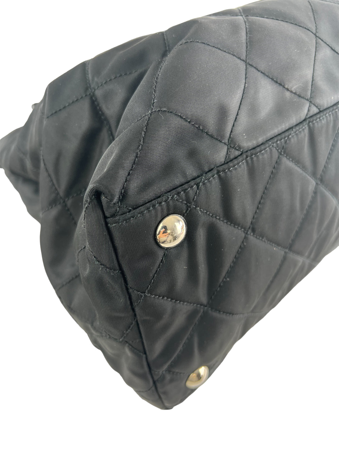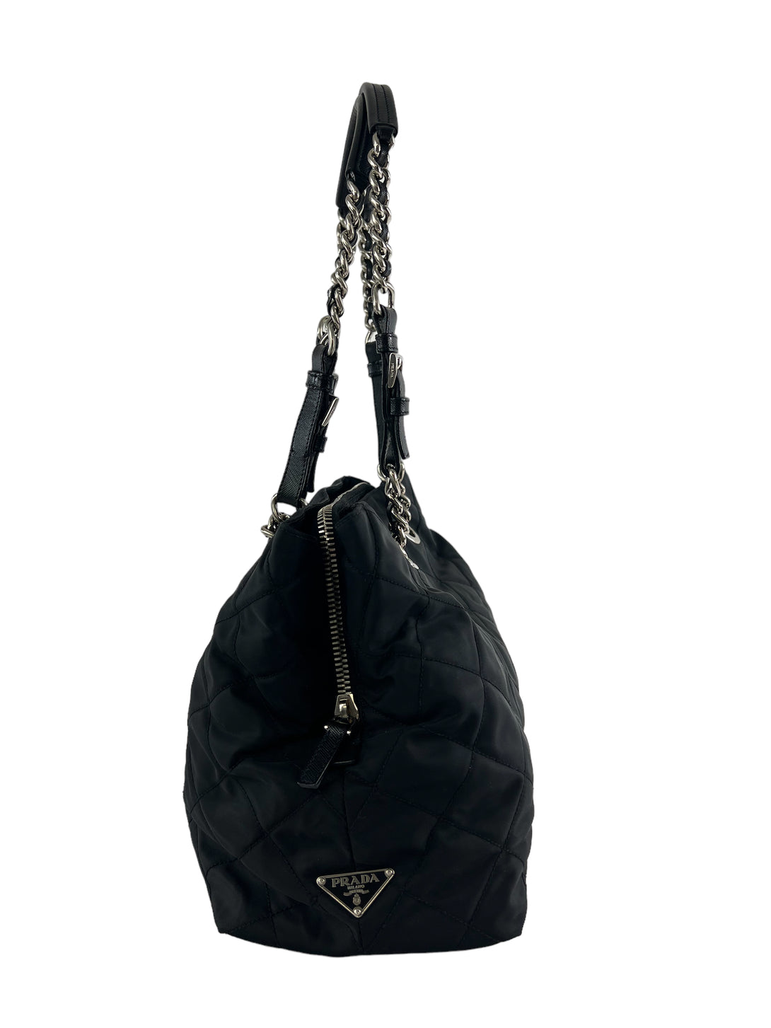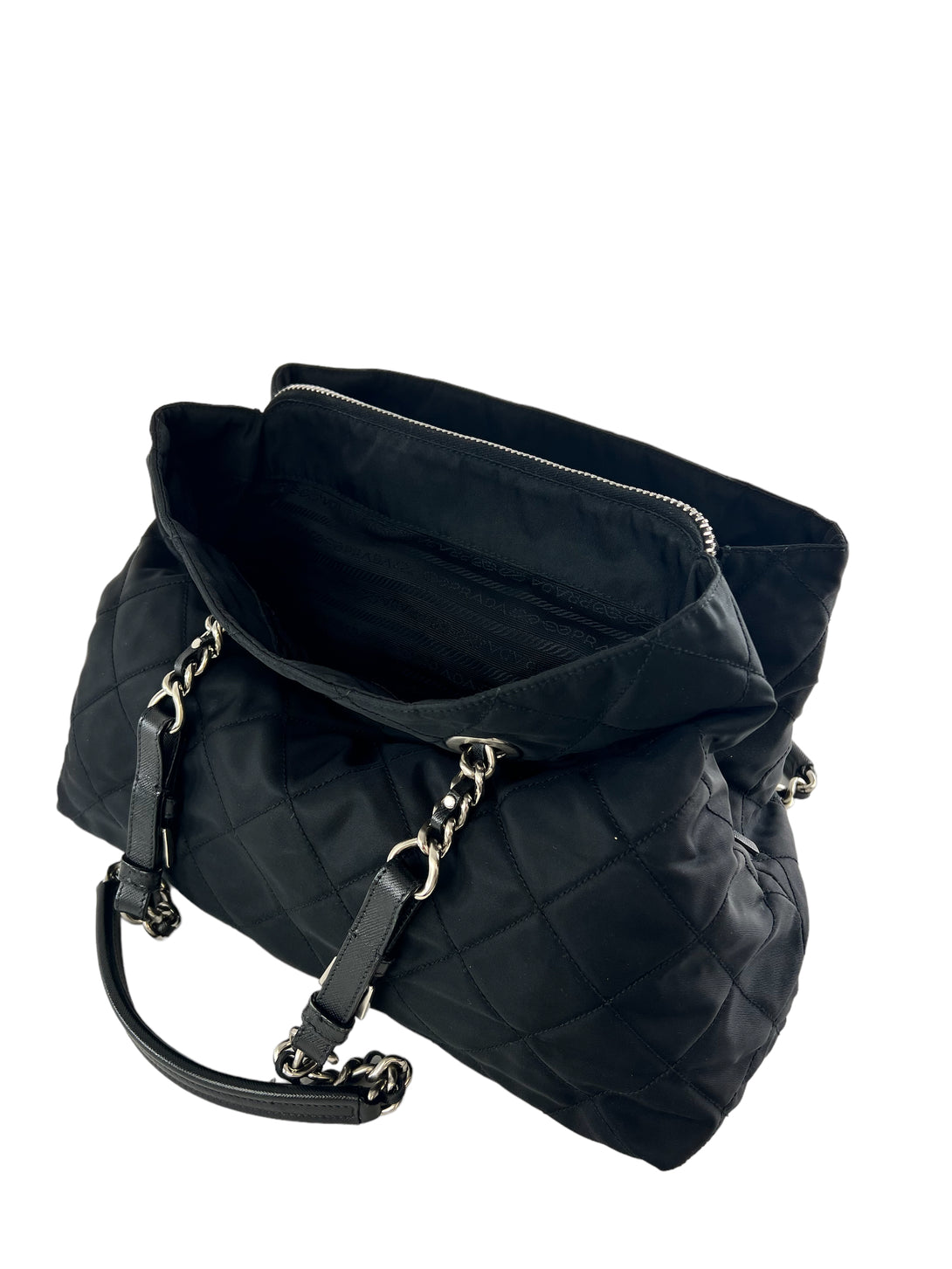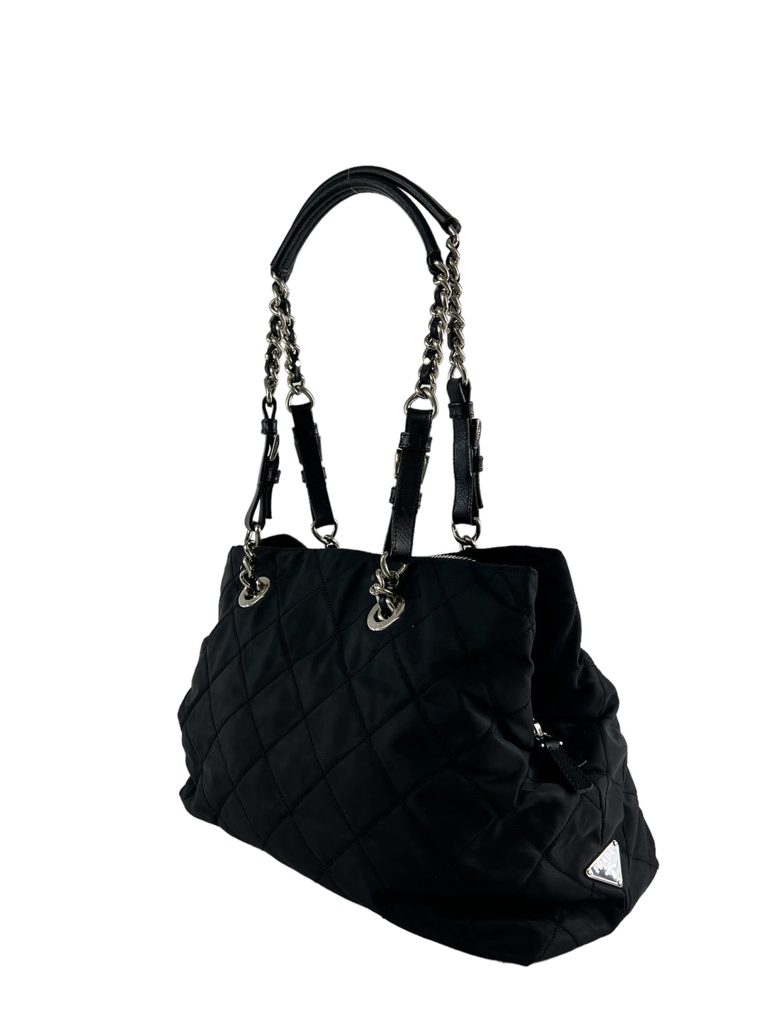 Prada Black Nylon Tote with Silver Chain Detail