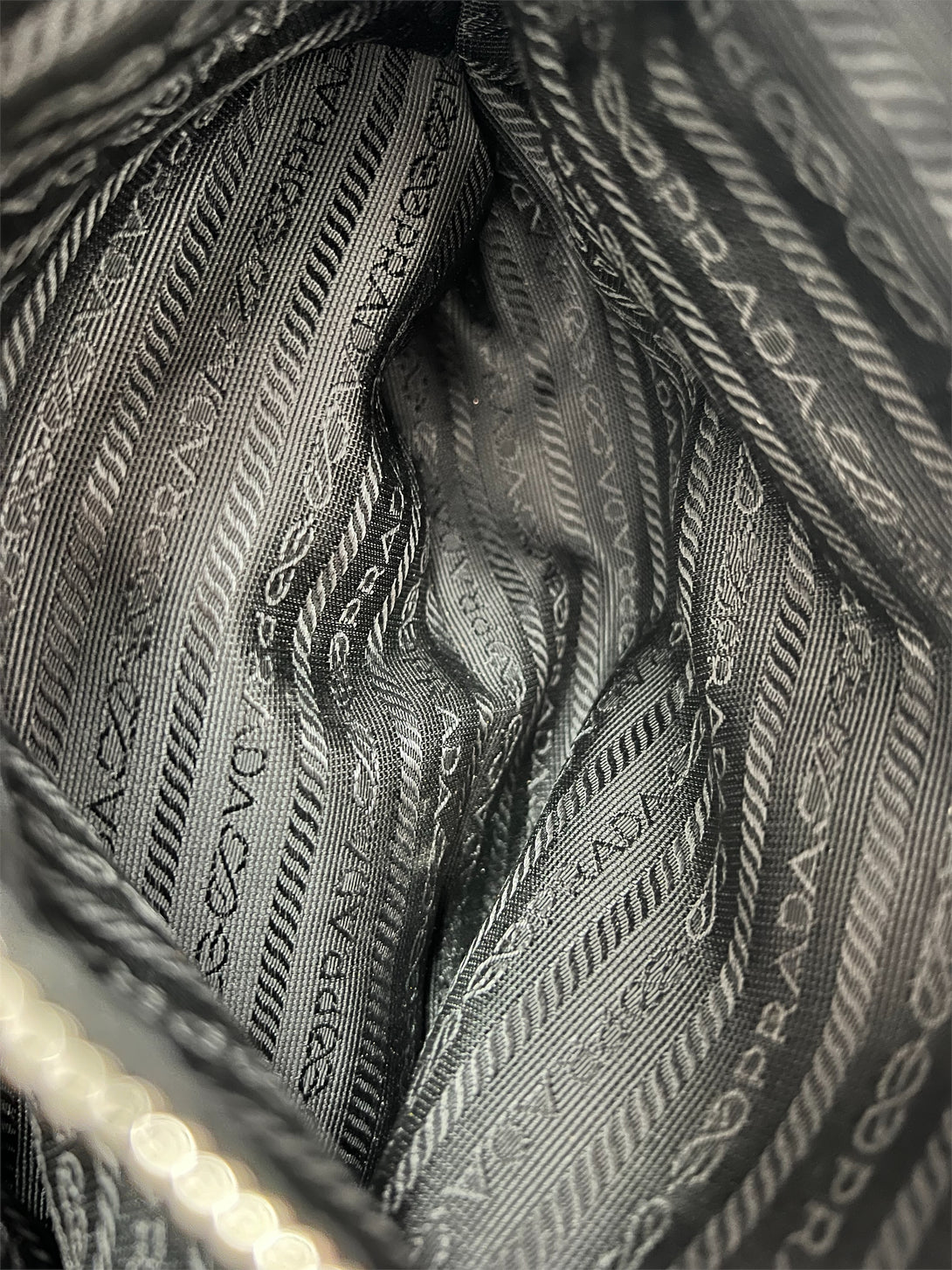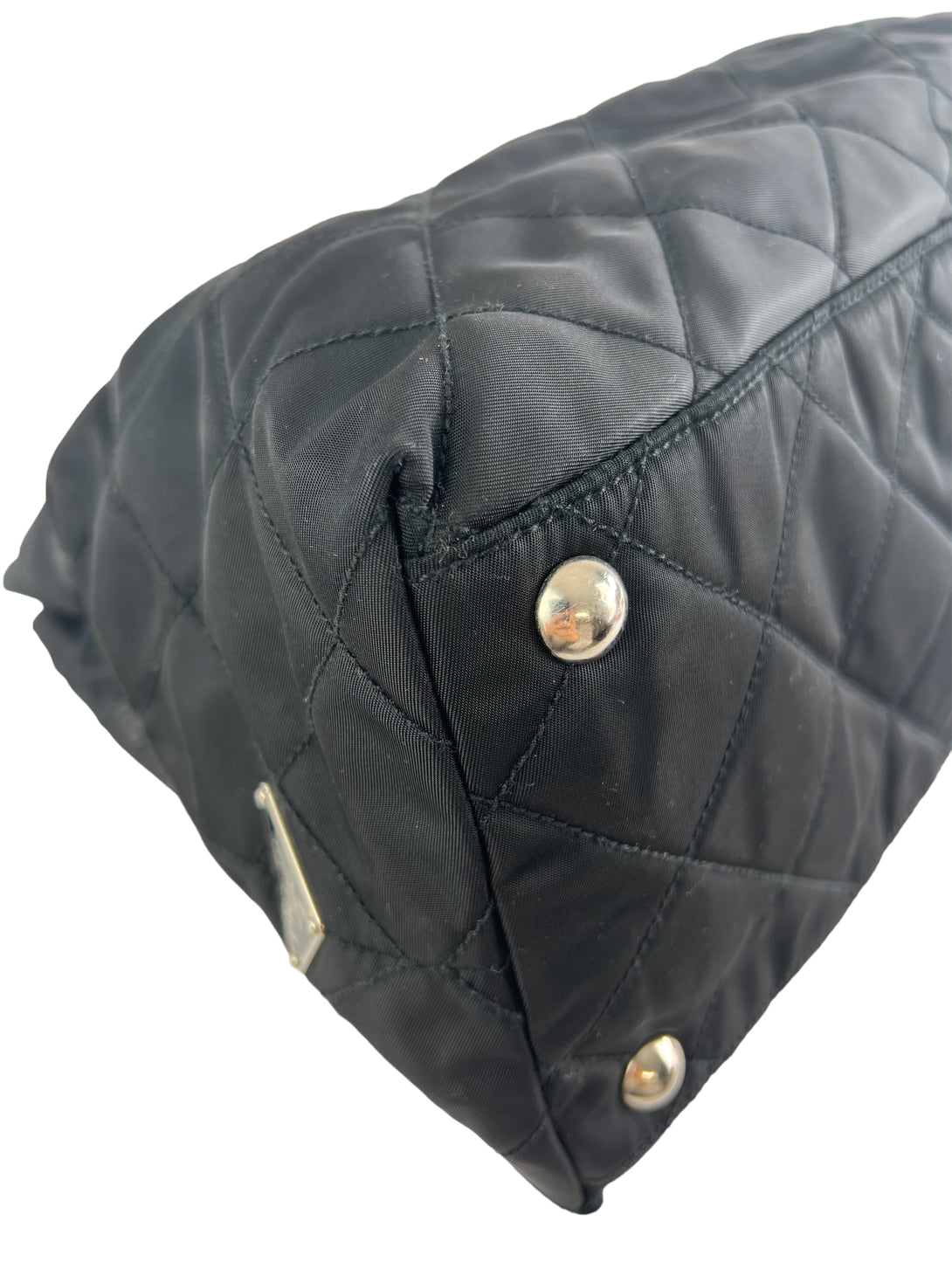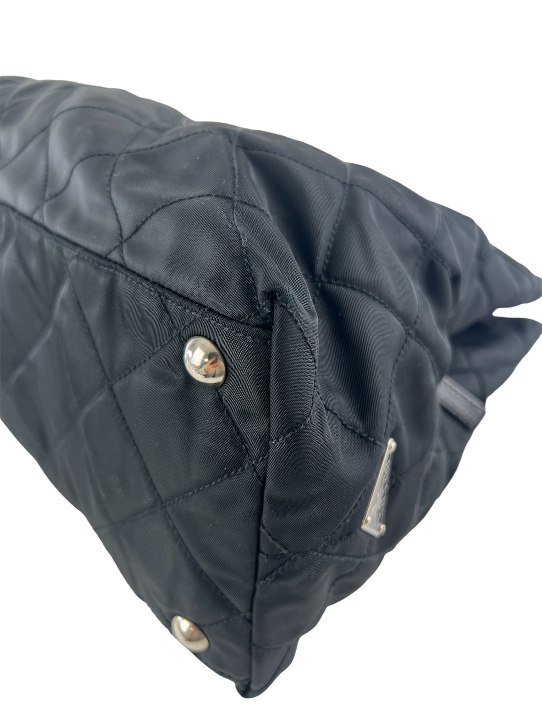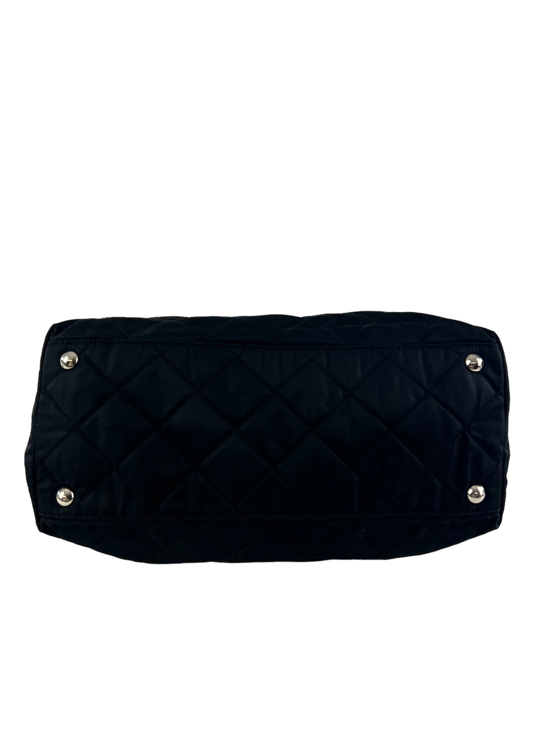 Prada Black Nylon Tote with Silver Chain Detail