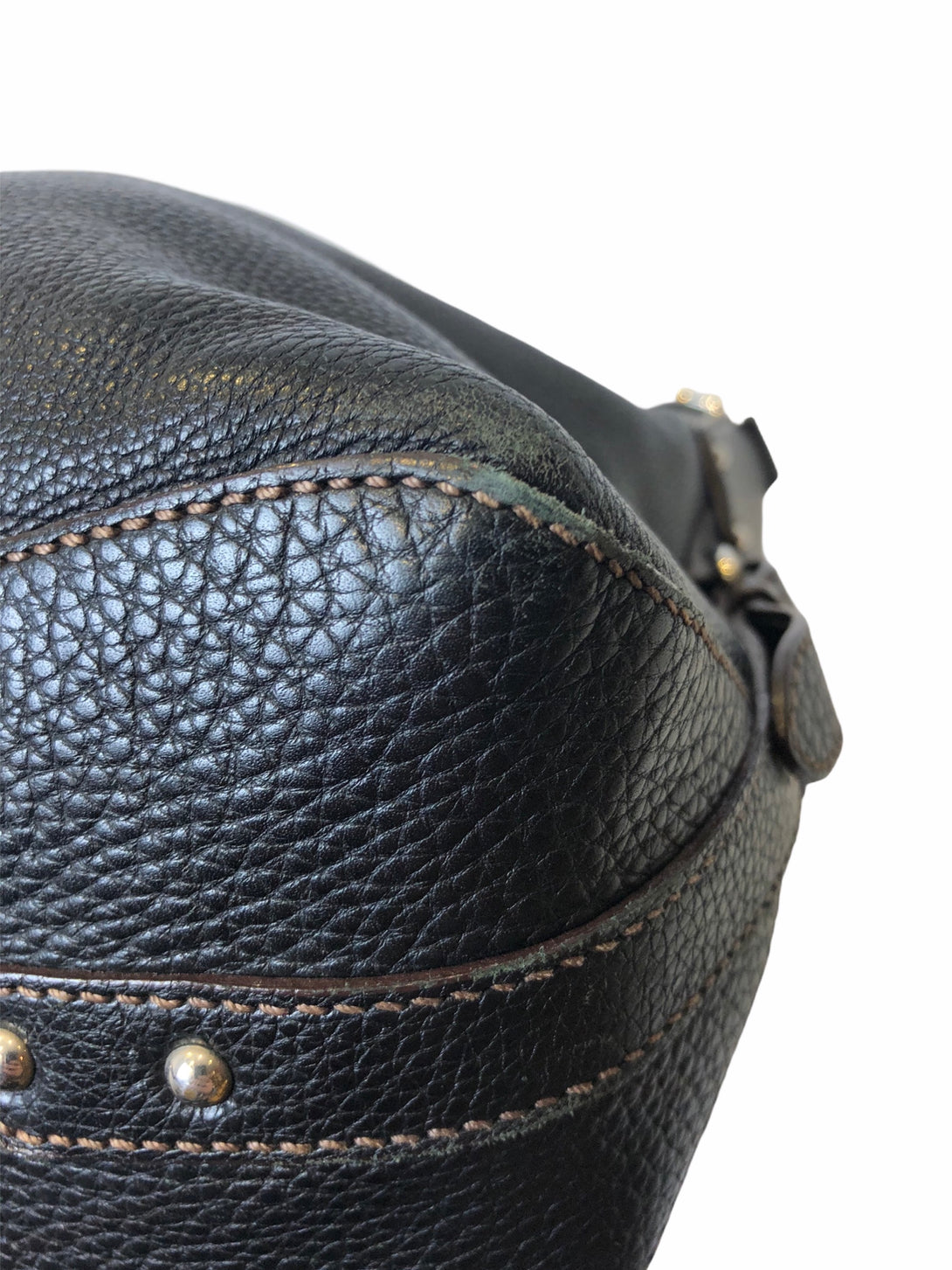 Good: Items show more prominent wear such as noticeable discoloration, stains and snags to fabric. May have worn corners and handles, tarnishing to hardware and creasing to leather. Pen or make up marks may be visible in the interior of the bag.