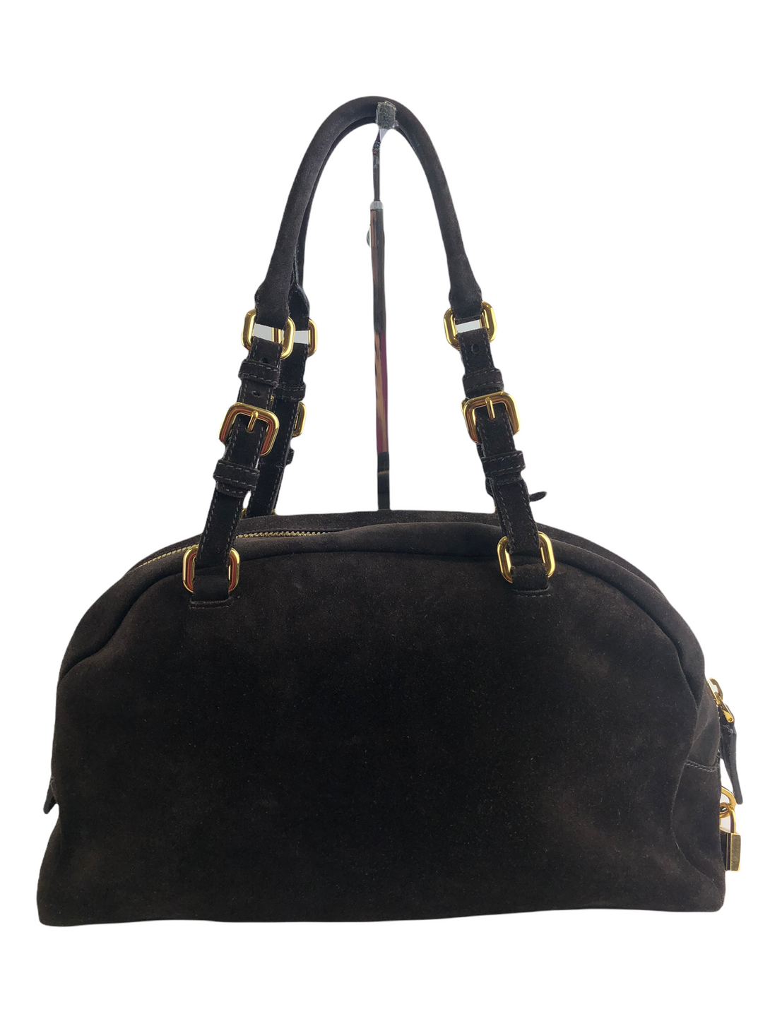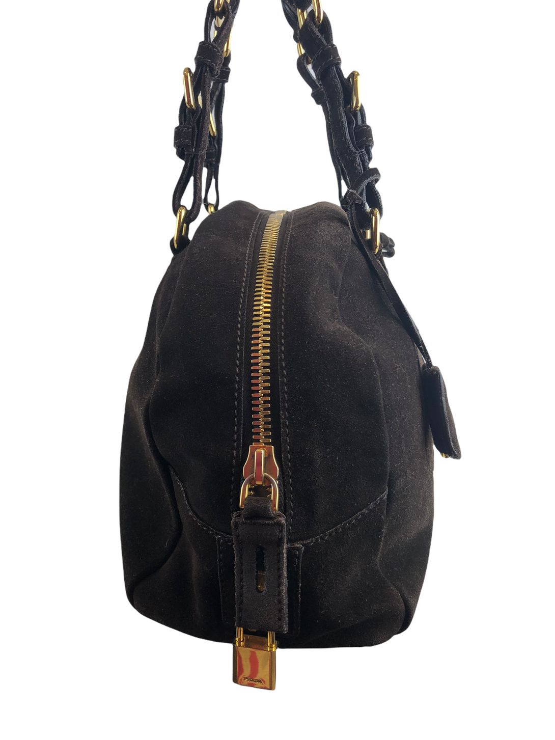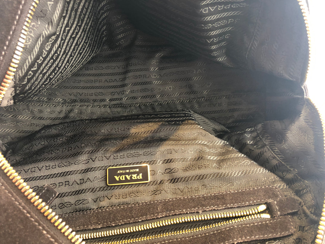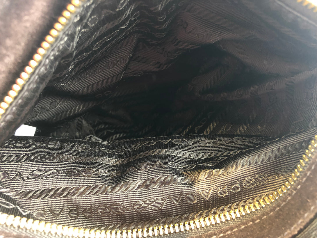 Prada Brown Suede “Bauetto” Shoulder Bag