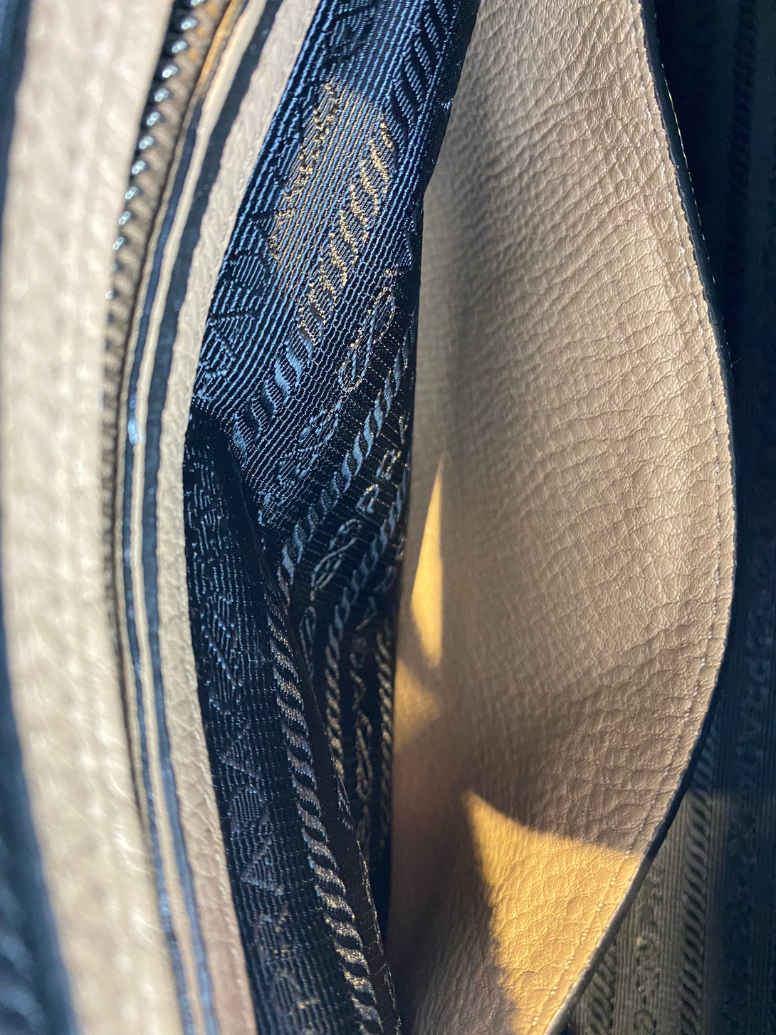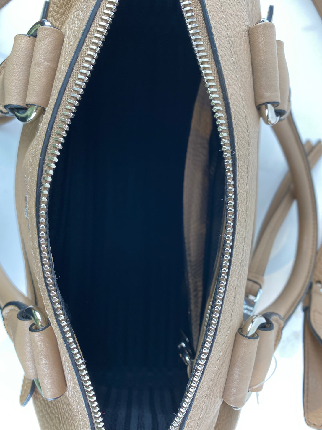 Good: Items show more prominent wear such as noticeable discoloration, stains and snags to fabric. May have worn corners and handles, tarnishing to hardware and creasing to leather. Pen or make up marks may be visible in the interior of the bag.