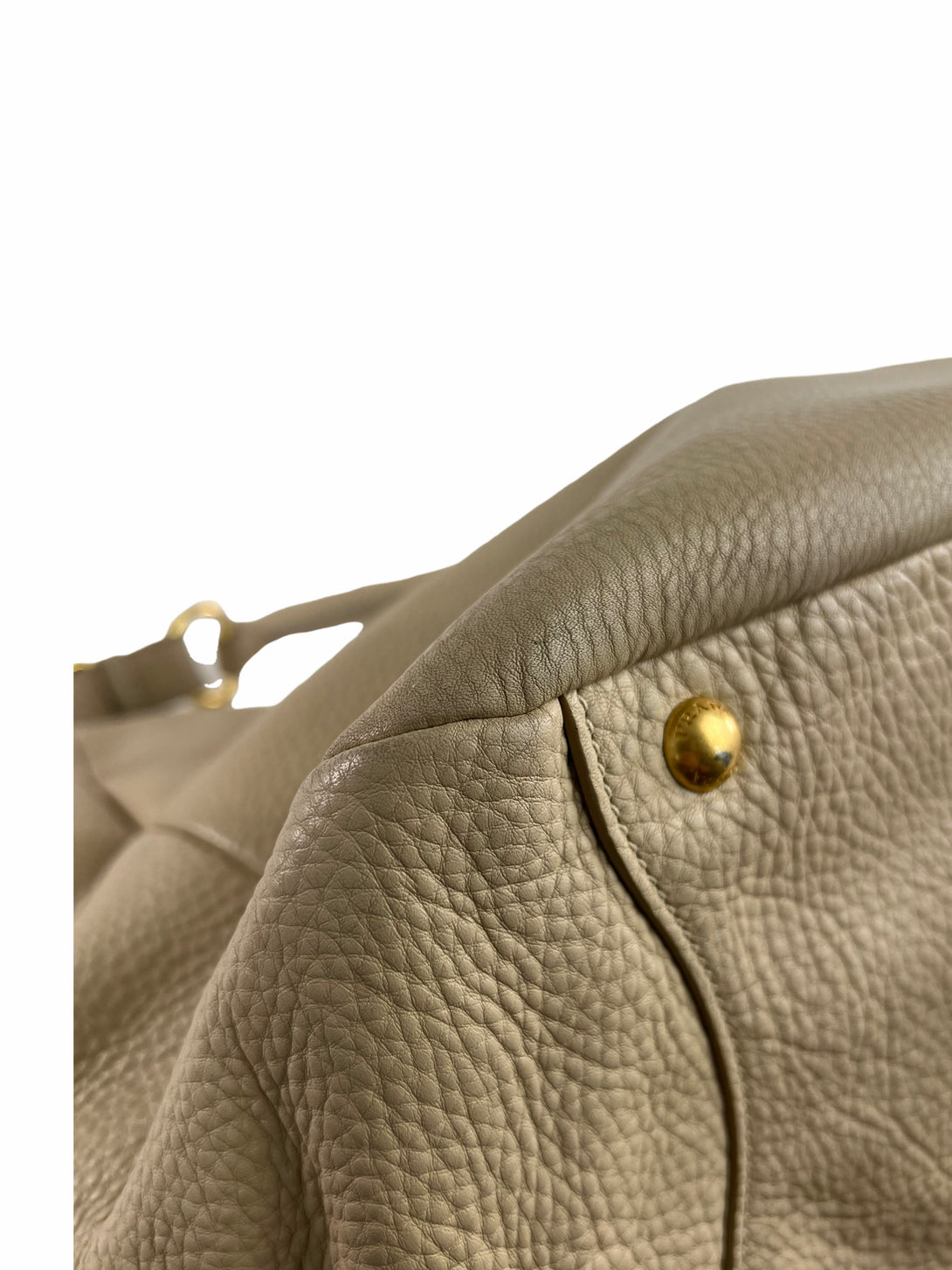 Good: Items show more prominent wear such as noticeable discoloration, stains and snags to fabric. May have worn corners and handles, tarnishing to hardware and creasing to leather. Pen or make up marks may be visible in the interior of the bag.