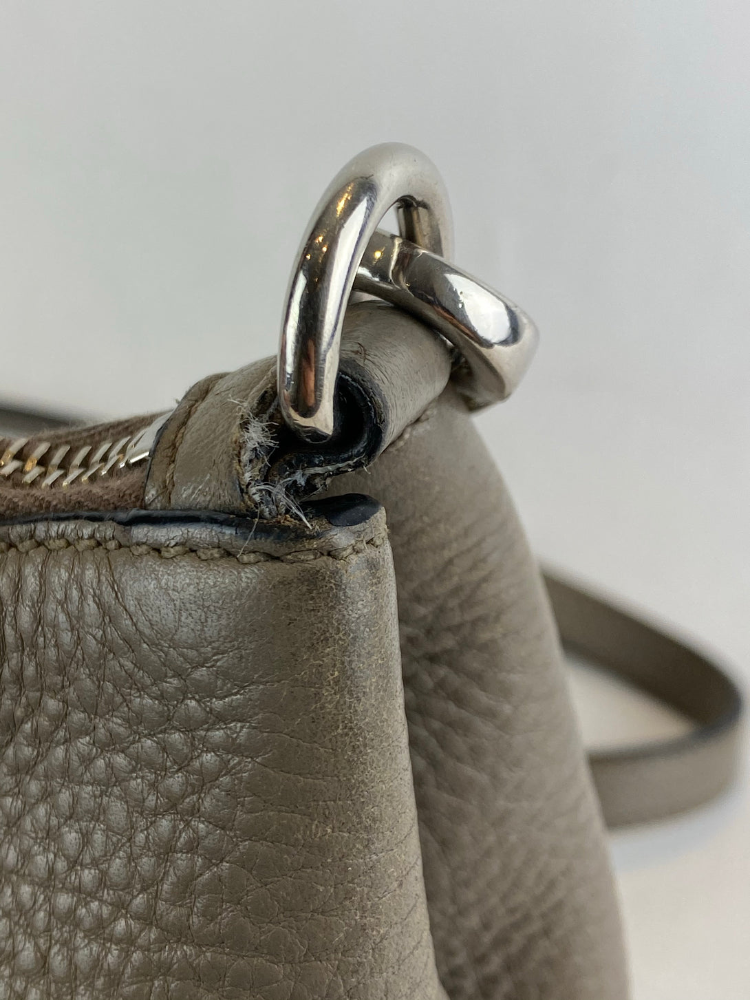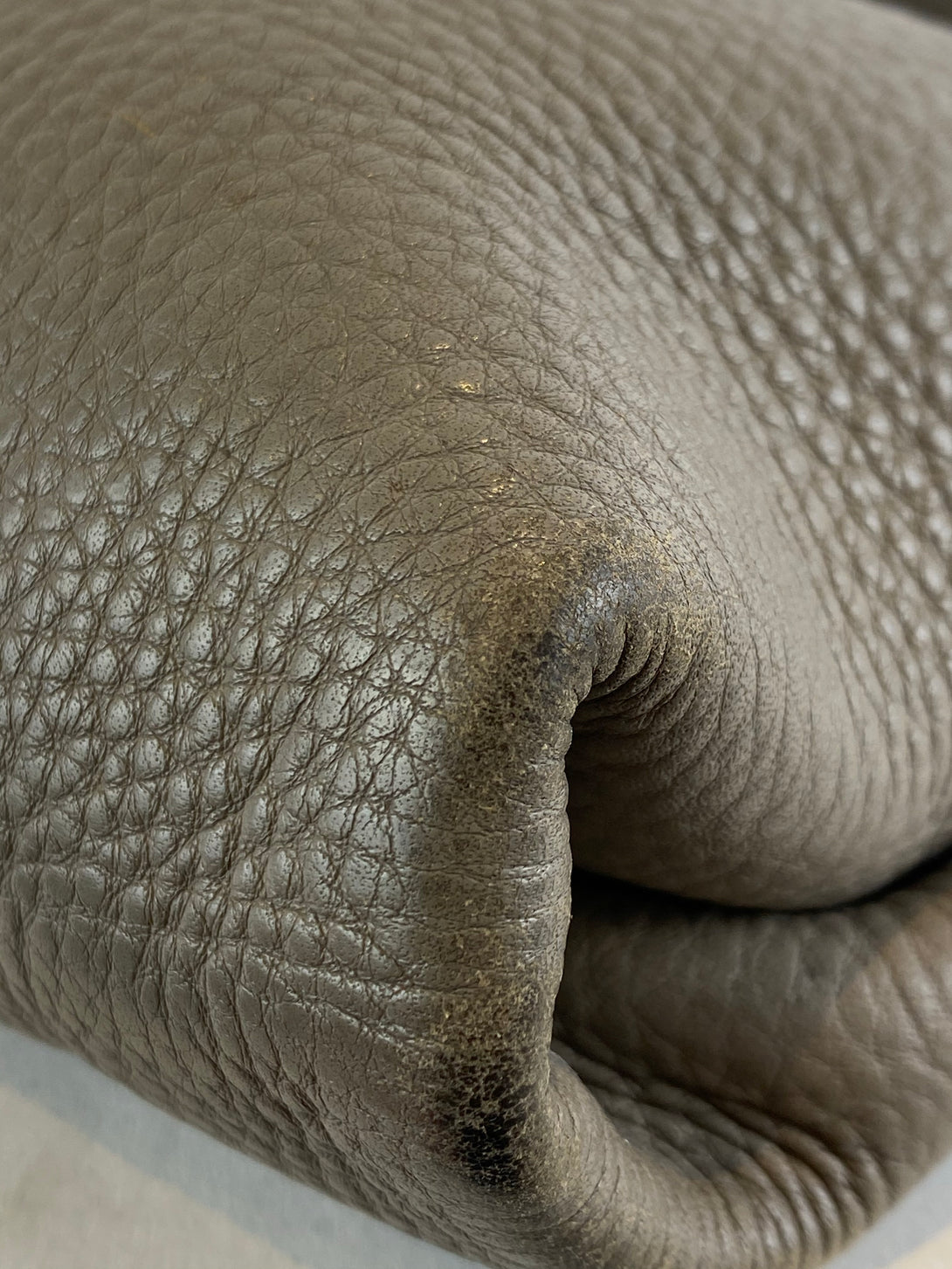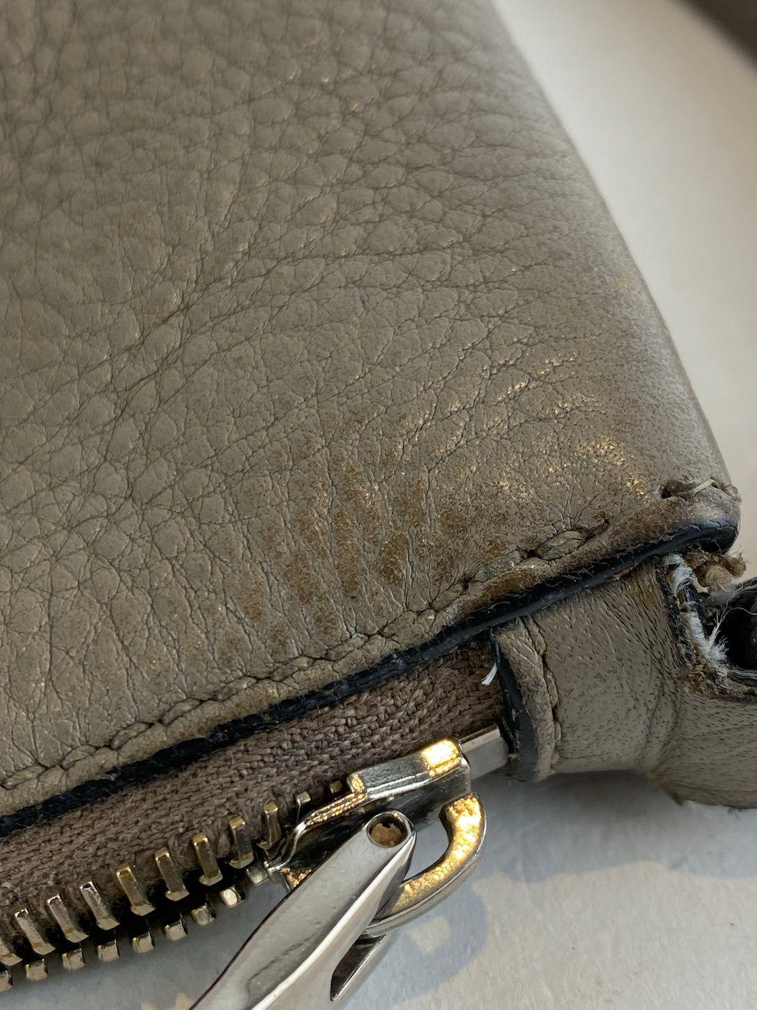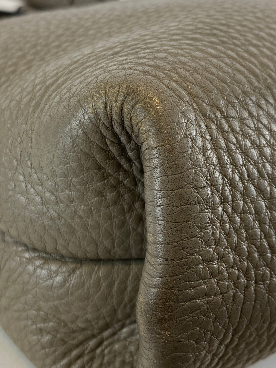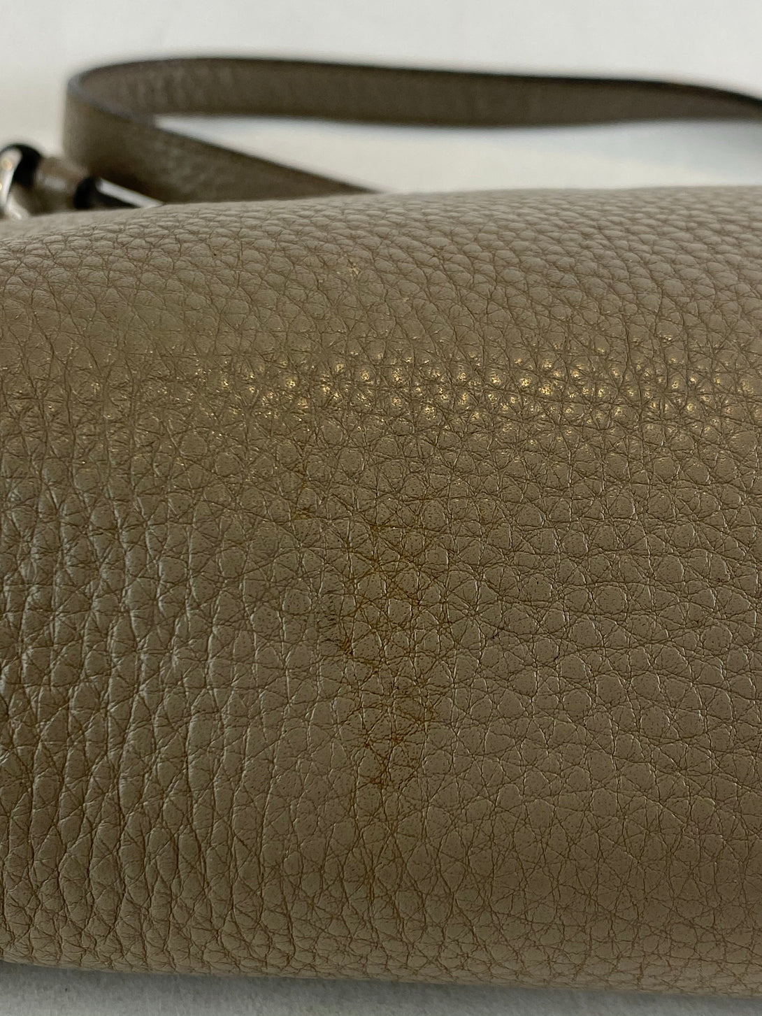 Good: Items show more prominent wear such as noticeable discoloration, stains and snags to fabric. May have worn corners and handles, tarnishing to hardware and creasing to leather. Pen or make up marks may be visible in the interior of the bag.