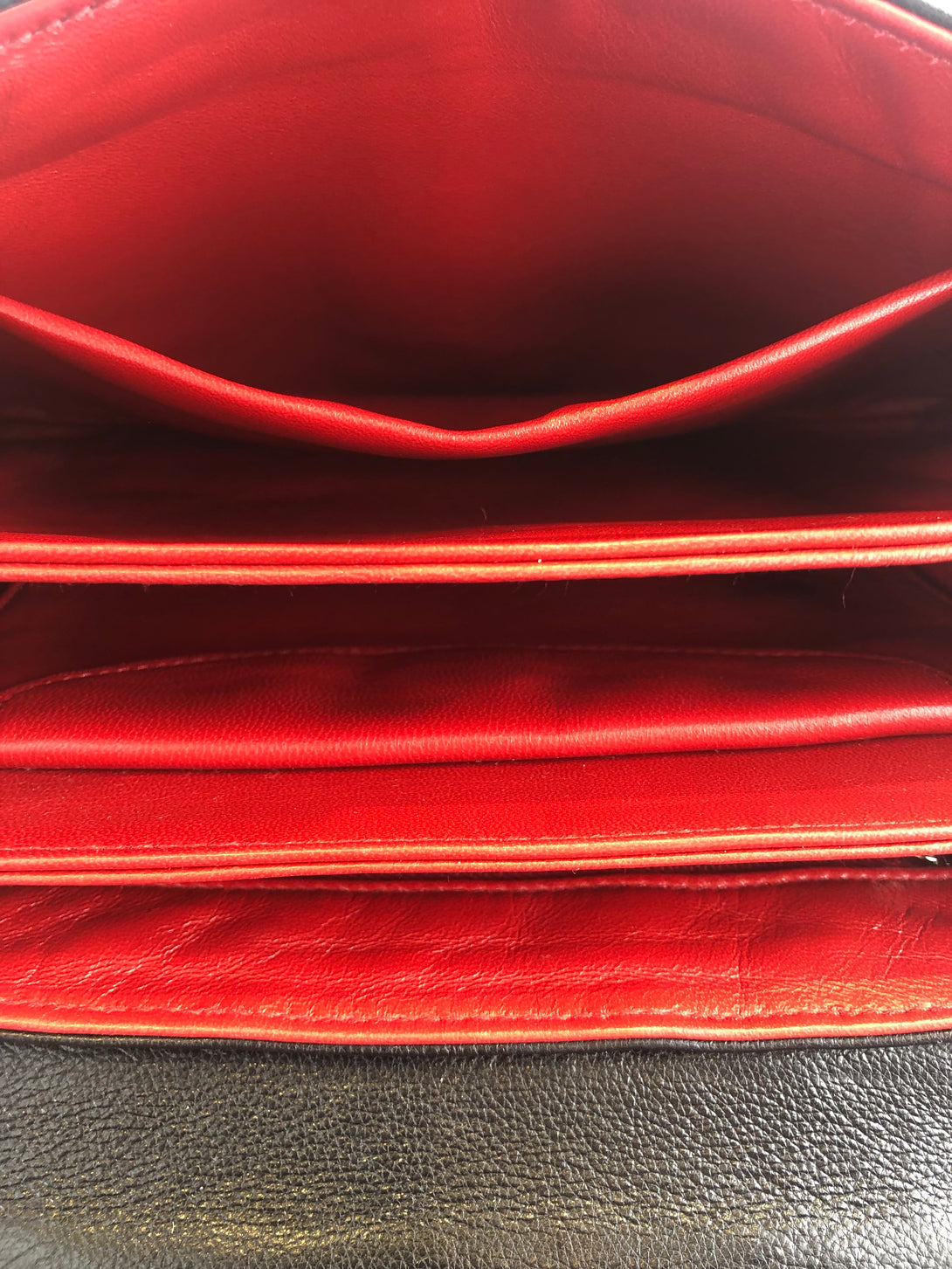 Good: Items show more prominent wear such as noticeable discoloration, stains and snags to fabric. May have worn corners and handles, tarnishing to hardware and creasing to leather. Pen or make up marks may be visible in the interior of the bag.