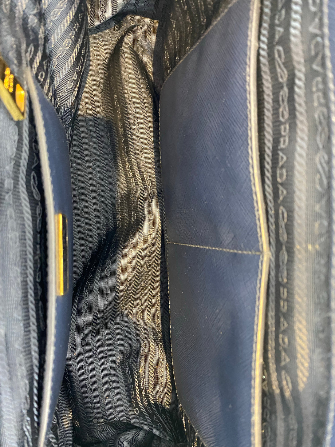 Good: Items show more prominent wear such as noticeable discoloration, stains and snags to fabric. May have worn corners and handles, tarnishing to hardware and creasing to leather. Pen or make up marks may be visible in the interior of the bag.