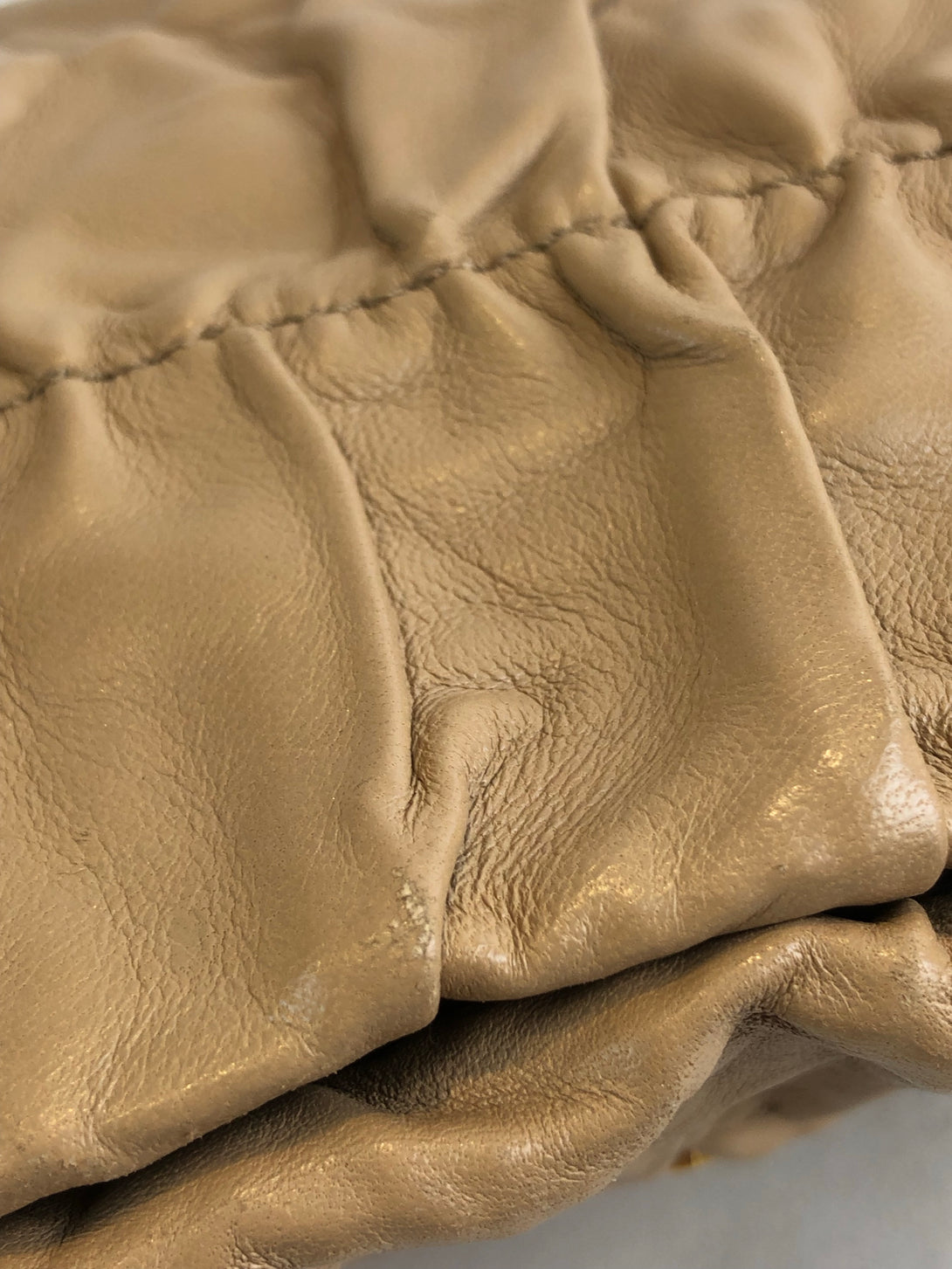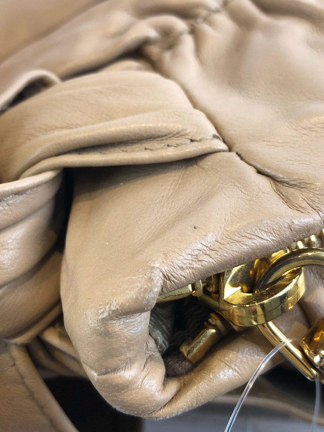 Good: Items show more prominent wear such as noticeable discoloration, stains and snags to fabric. May have worn corners and handles, tarnishing to hardware and creasing to leather. Pen or make up marks may be visible in the interior of the bag.