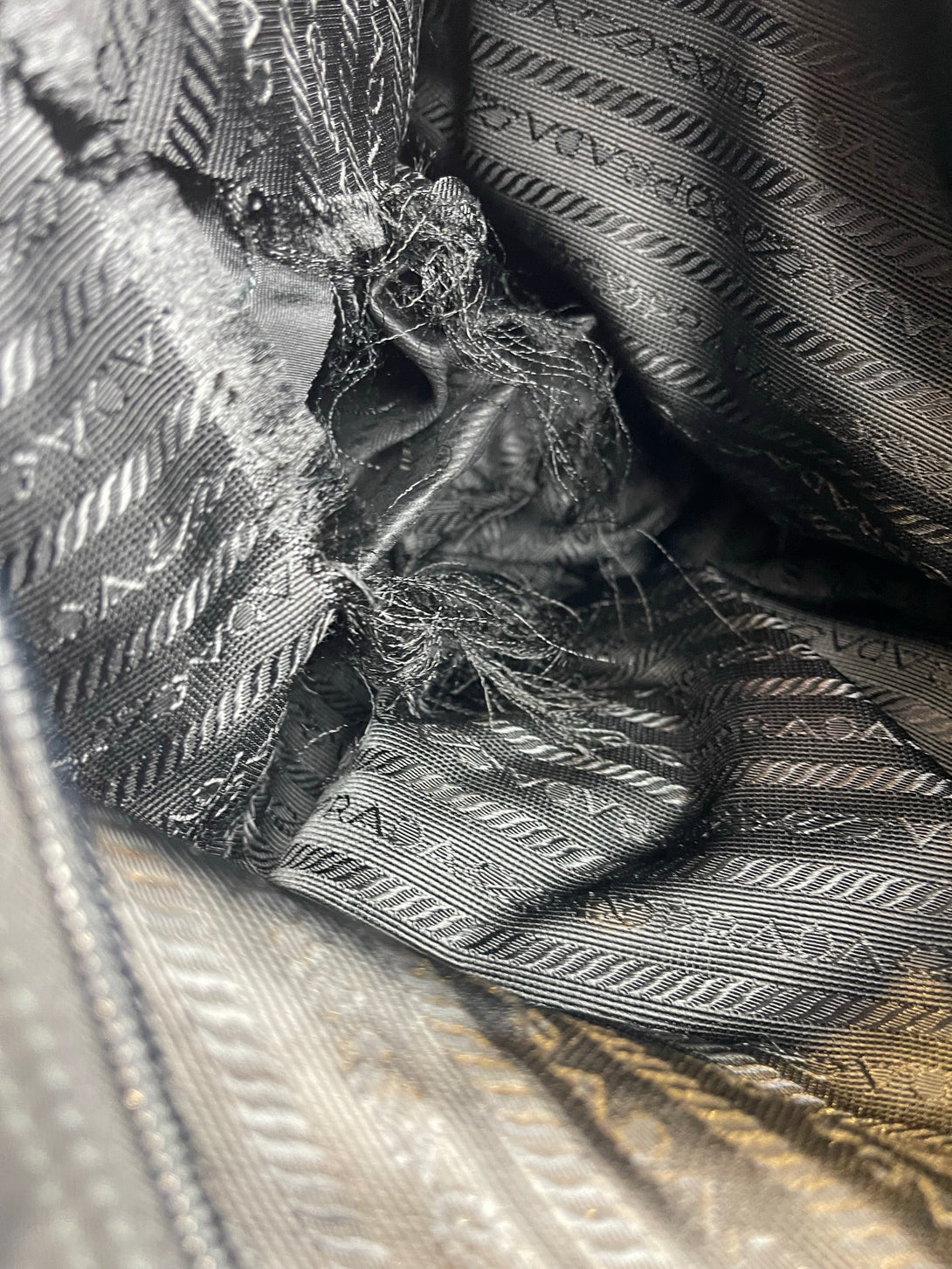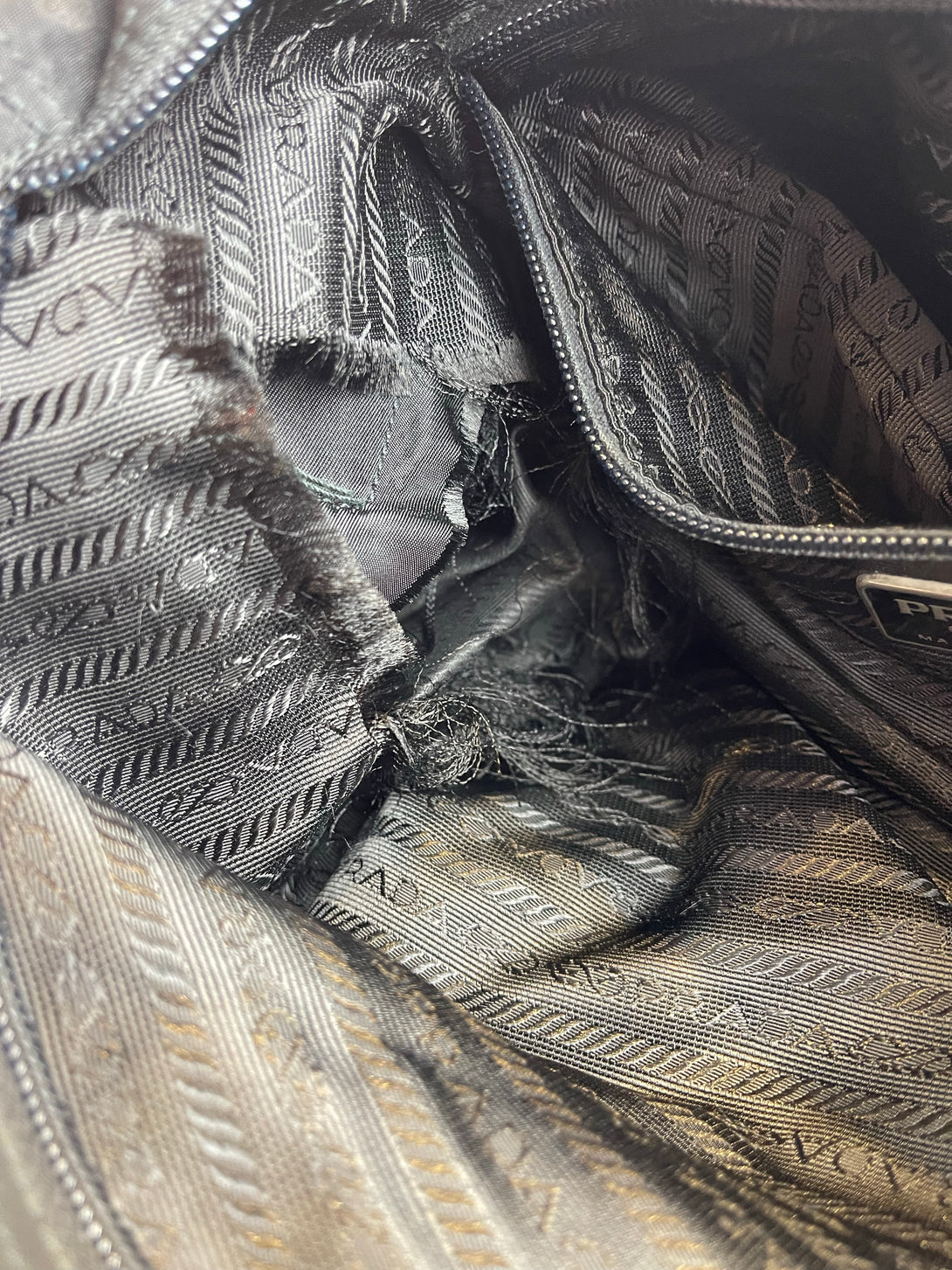 - Interior Condition: Fair Pre-Loved Condition - large tear inside bag as shown