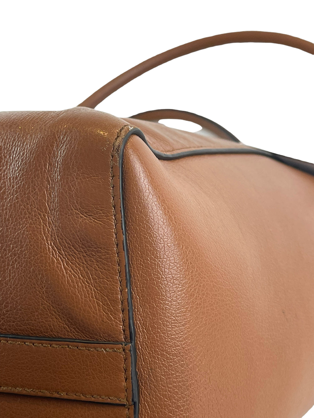 Good: Items show more prominent wear such as noticeable discoloration, stains and snags to fabric. May have worn corners and handles, tarnishing to hardware and creasing to leather. Pen or make up marks may be visible in the interior of the bag.