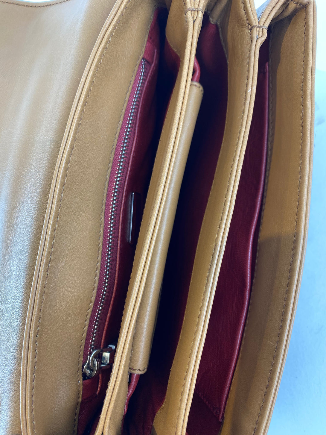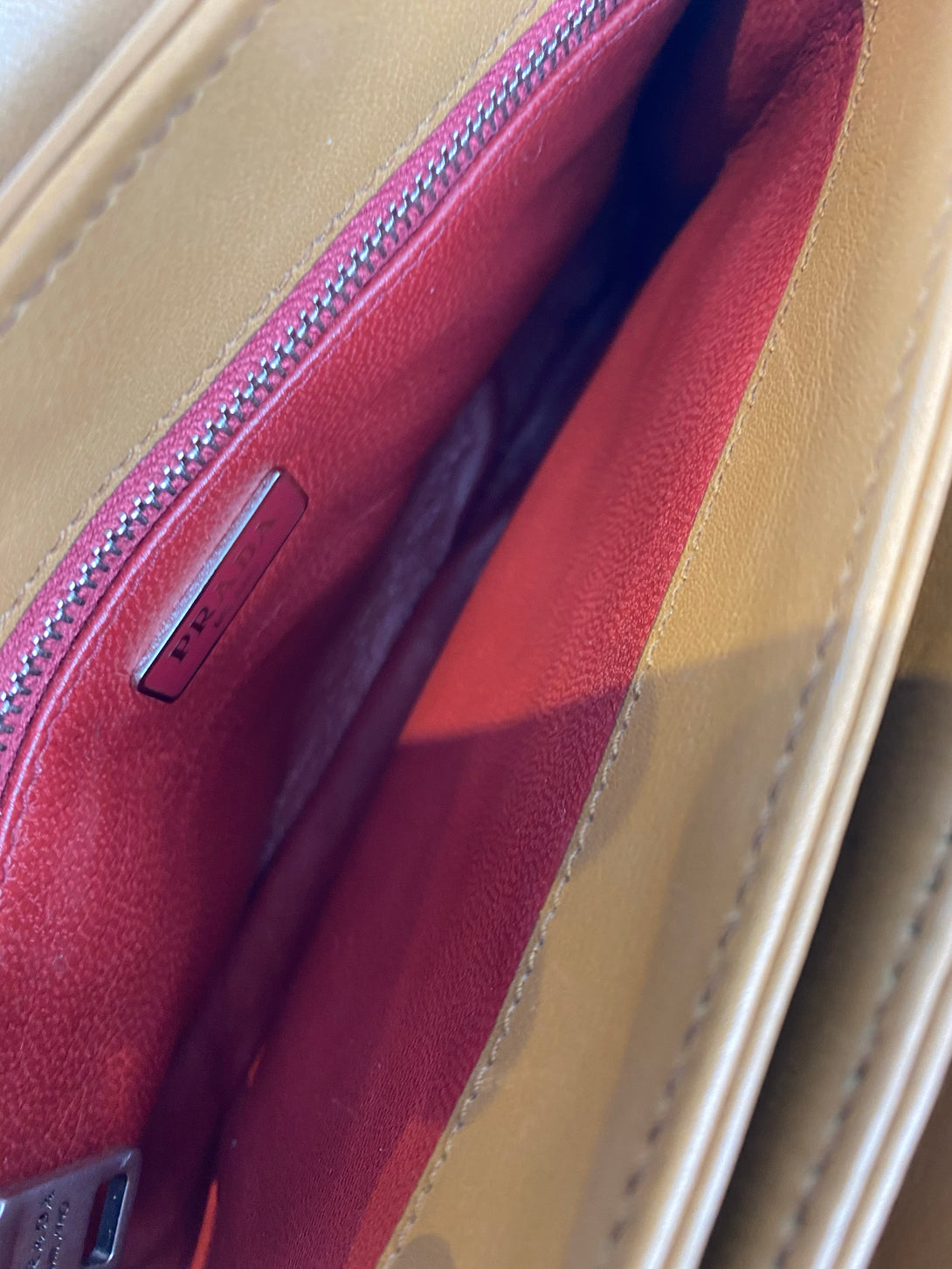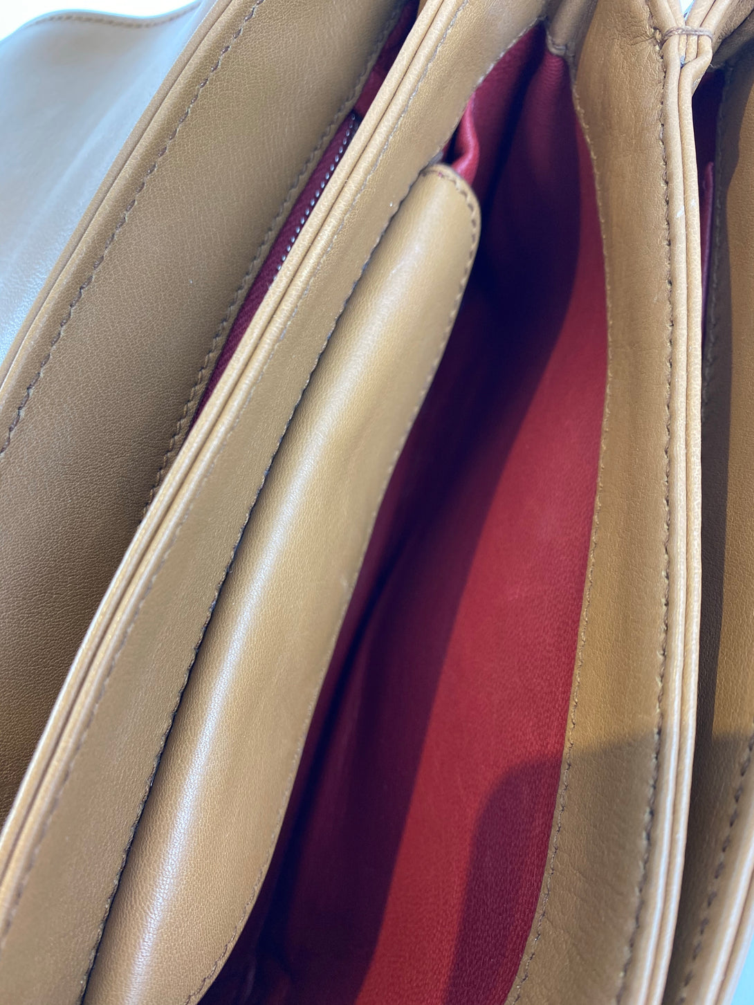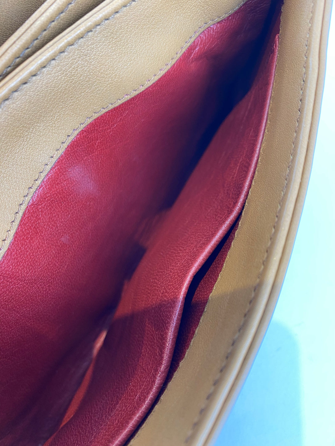 Good: Items show more prominent wear such as noticeable discoloration, stains and snags to fabric. May have worn corners and handles, tarnishing to hardware and creasing to leather. Pen or make up marks may be visible in the interior of the bag.