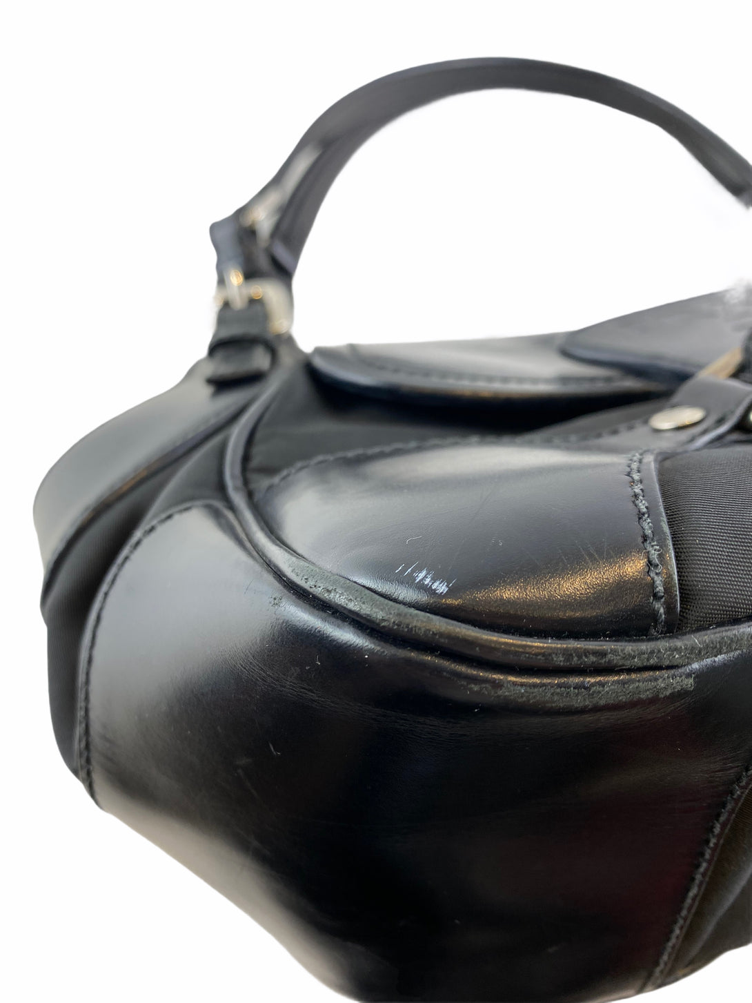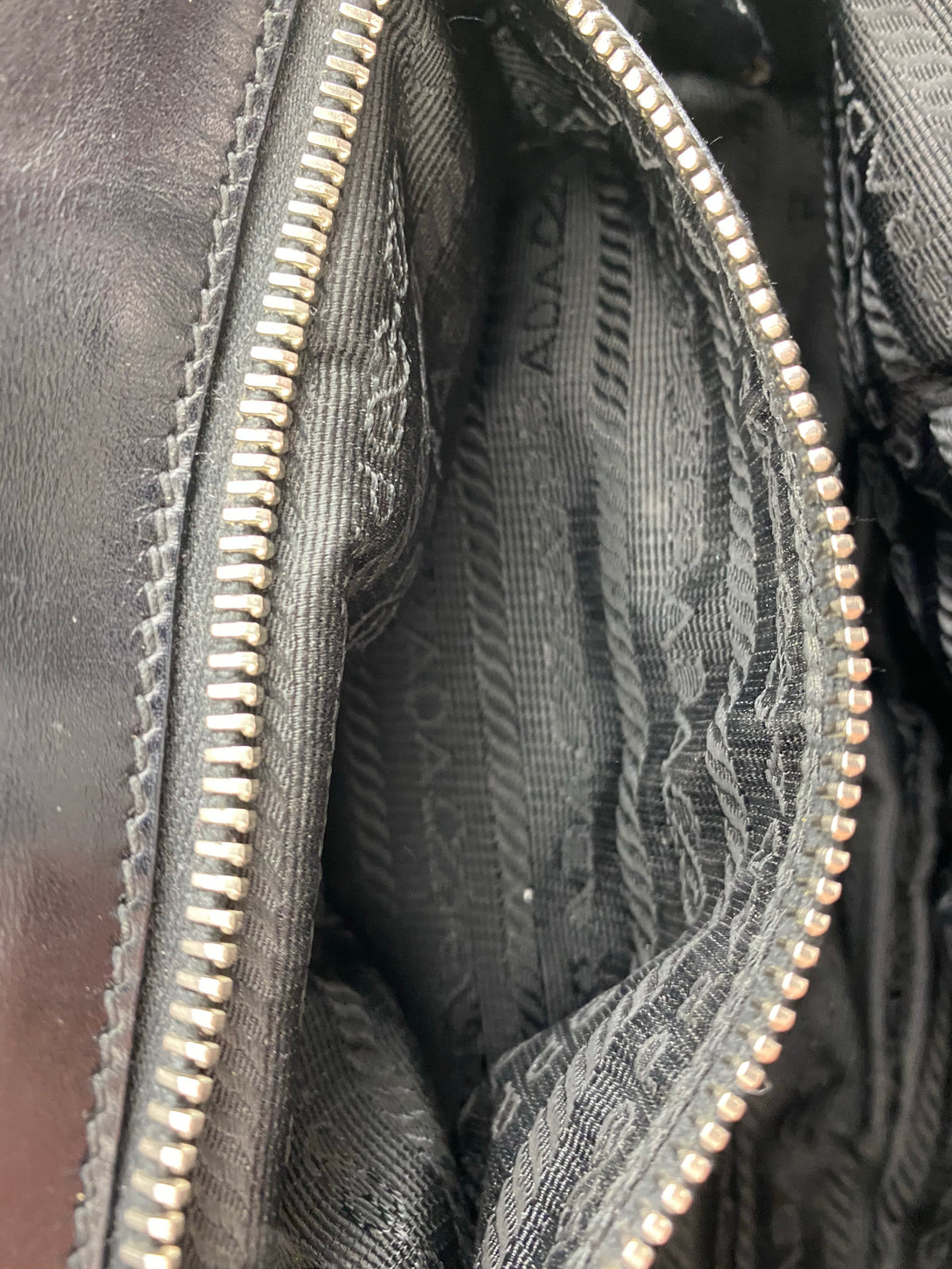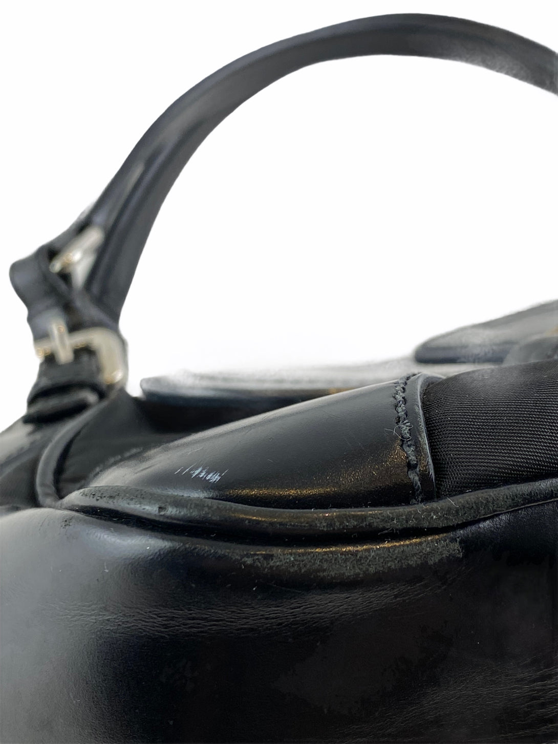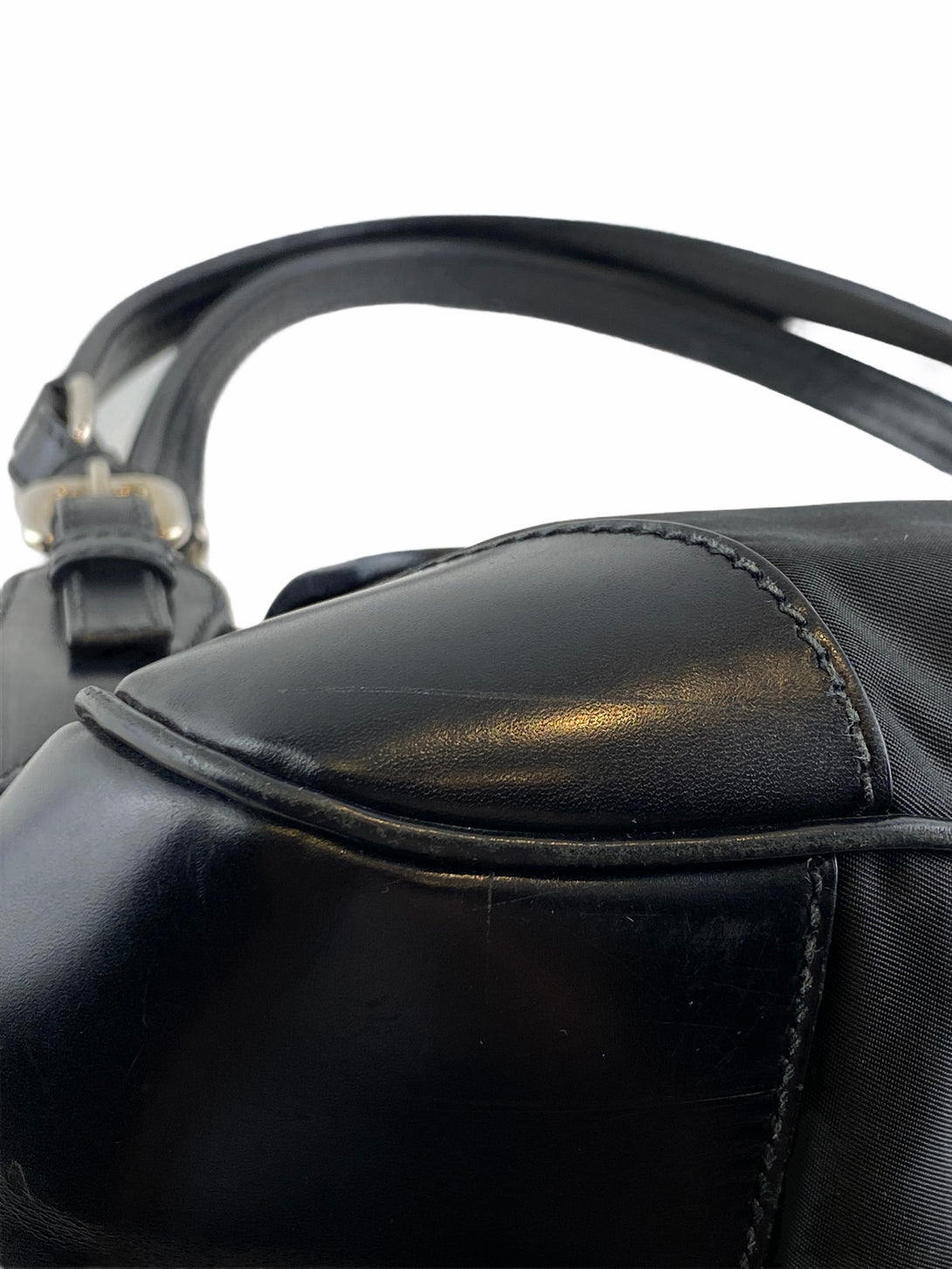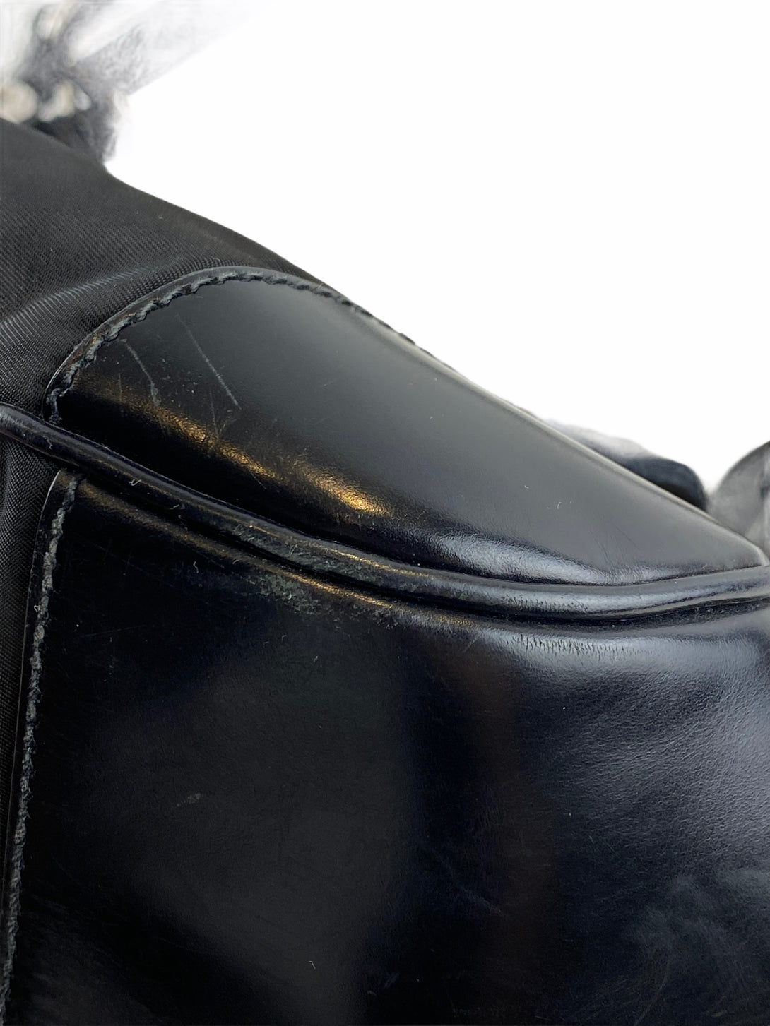 - Overall Condition: Very Good Pre-Loved Condition - scratches and scuffs on leather, small stain on nylon as shown