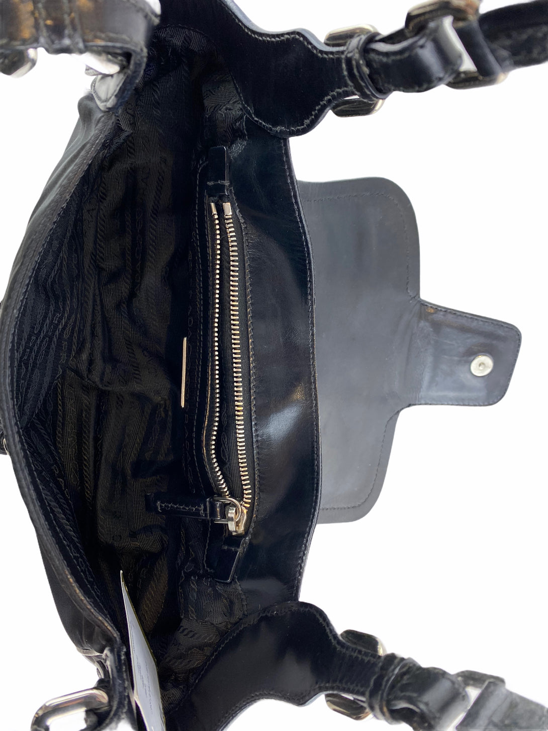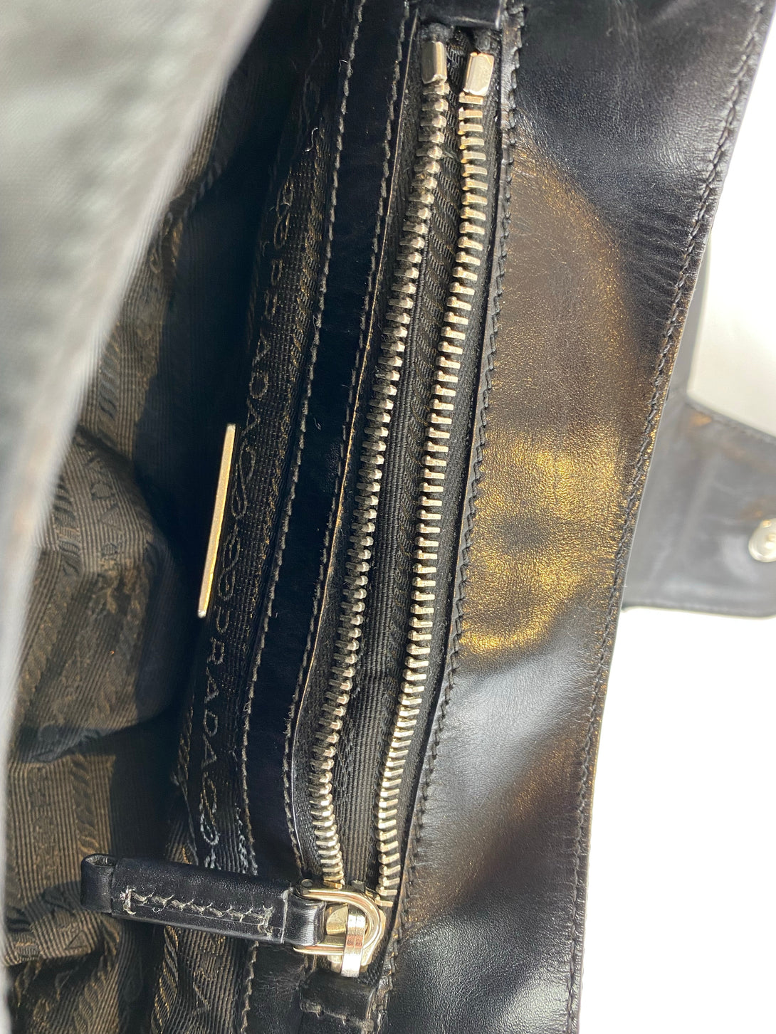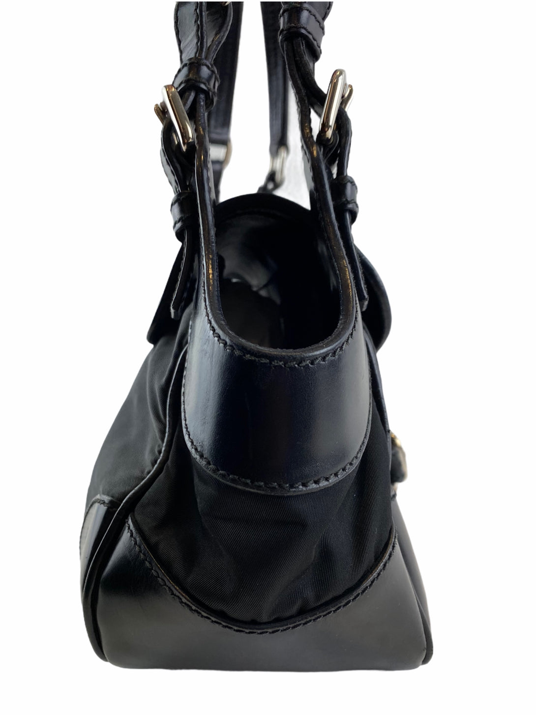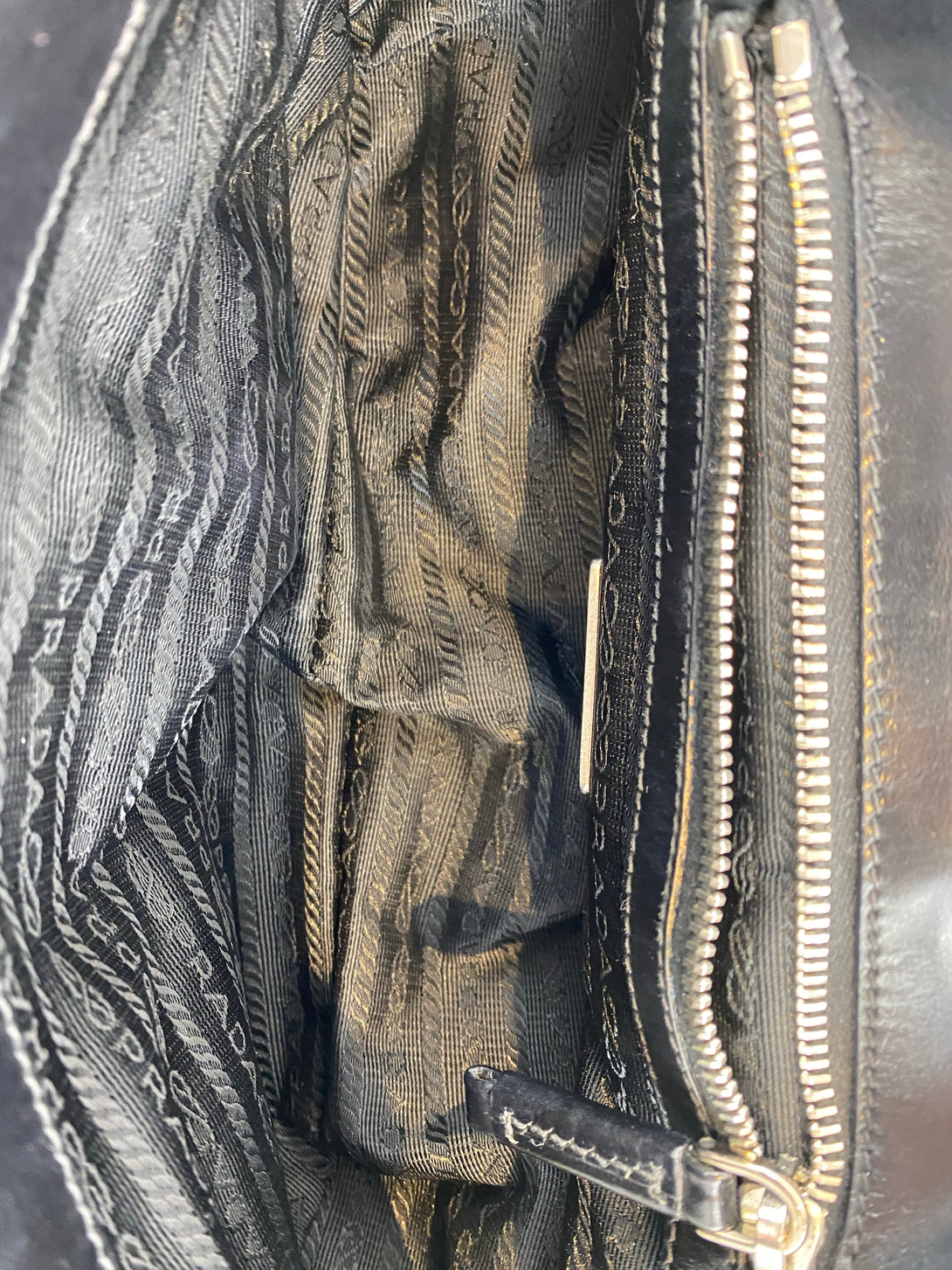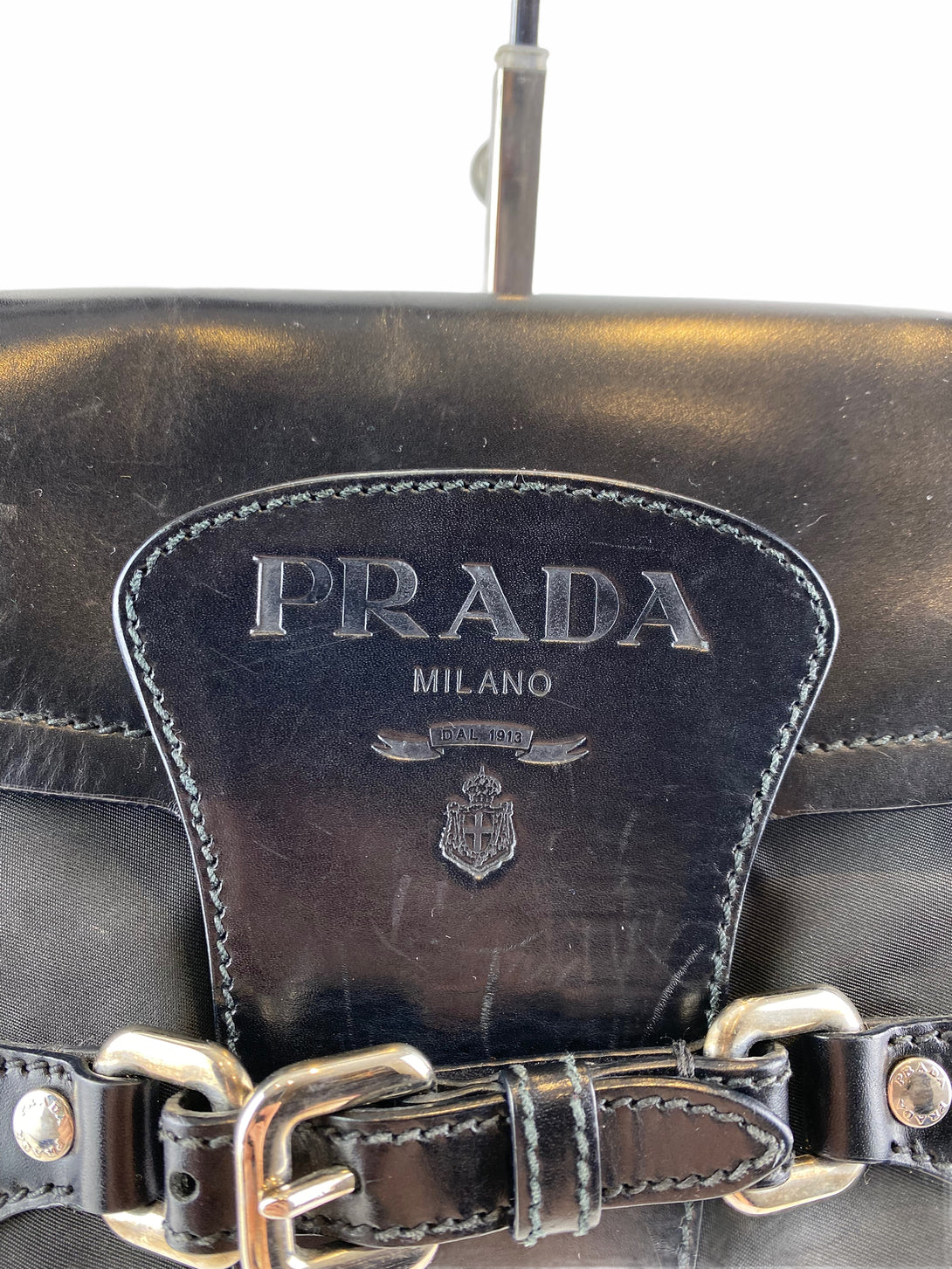 - Overall Condition: Very Good Pre-Loved Condition - scratches and scuffs on leather, small stain on nylon as shown