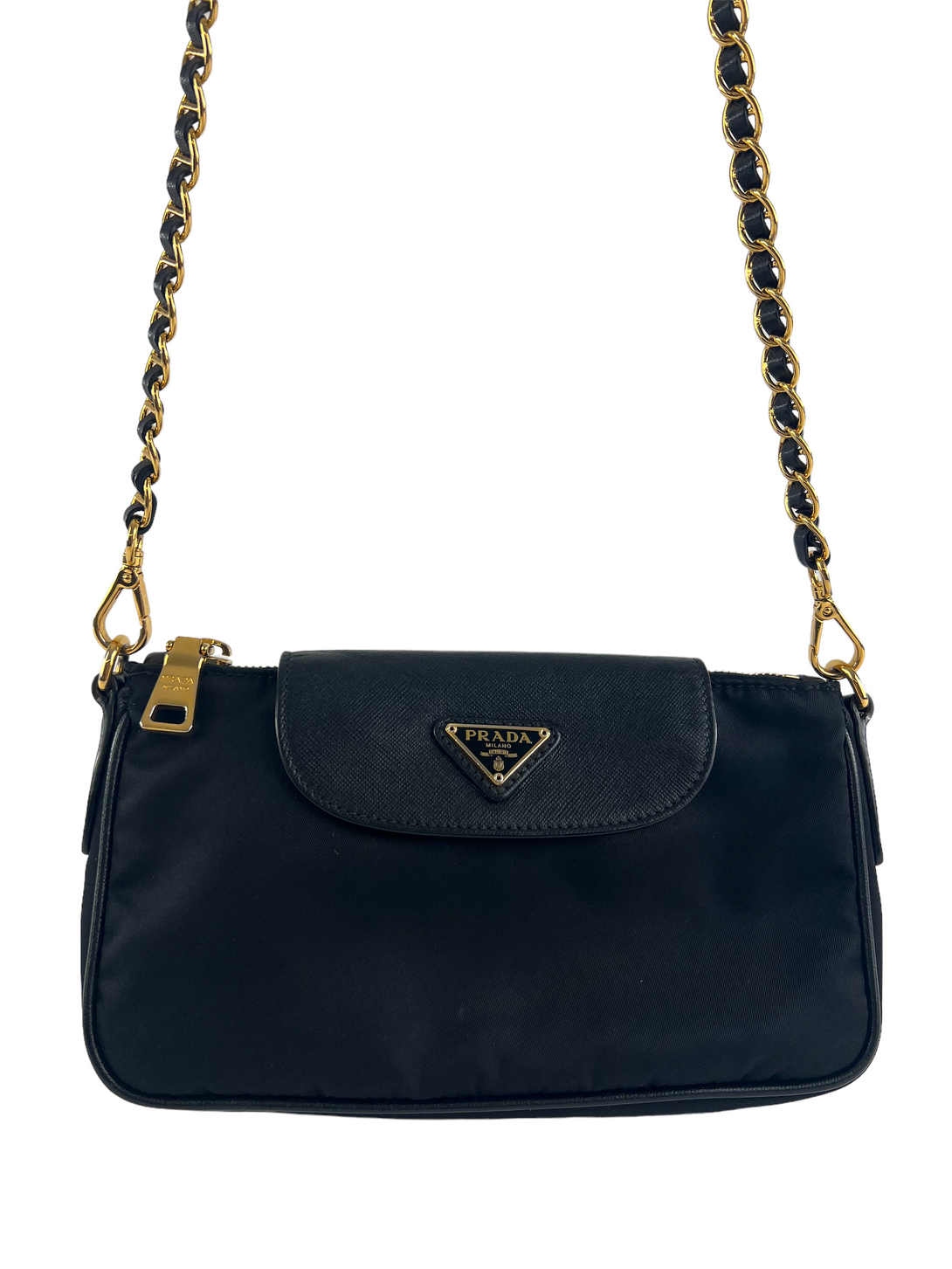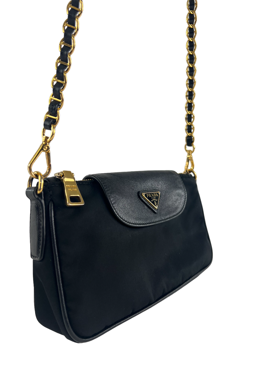 Prada Small Vintage Black Nylon & Leather Crossbody
