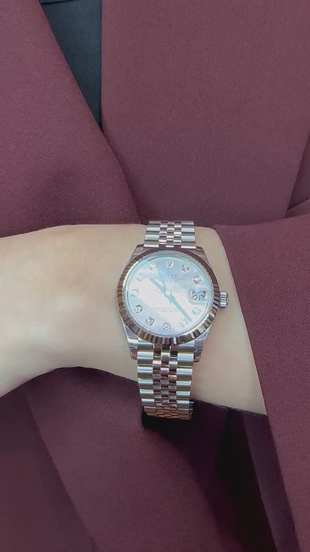 2023 Rolex Stainless Steel & White Gold Datejust 31 with Diamond set Mother of Pearl Silver Dial