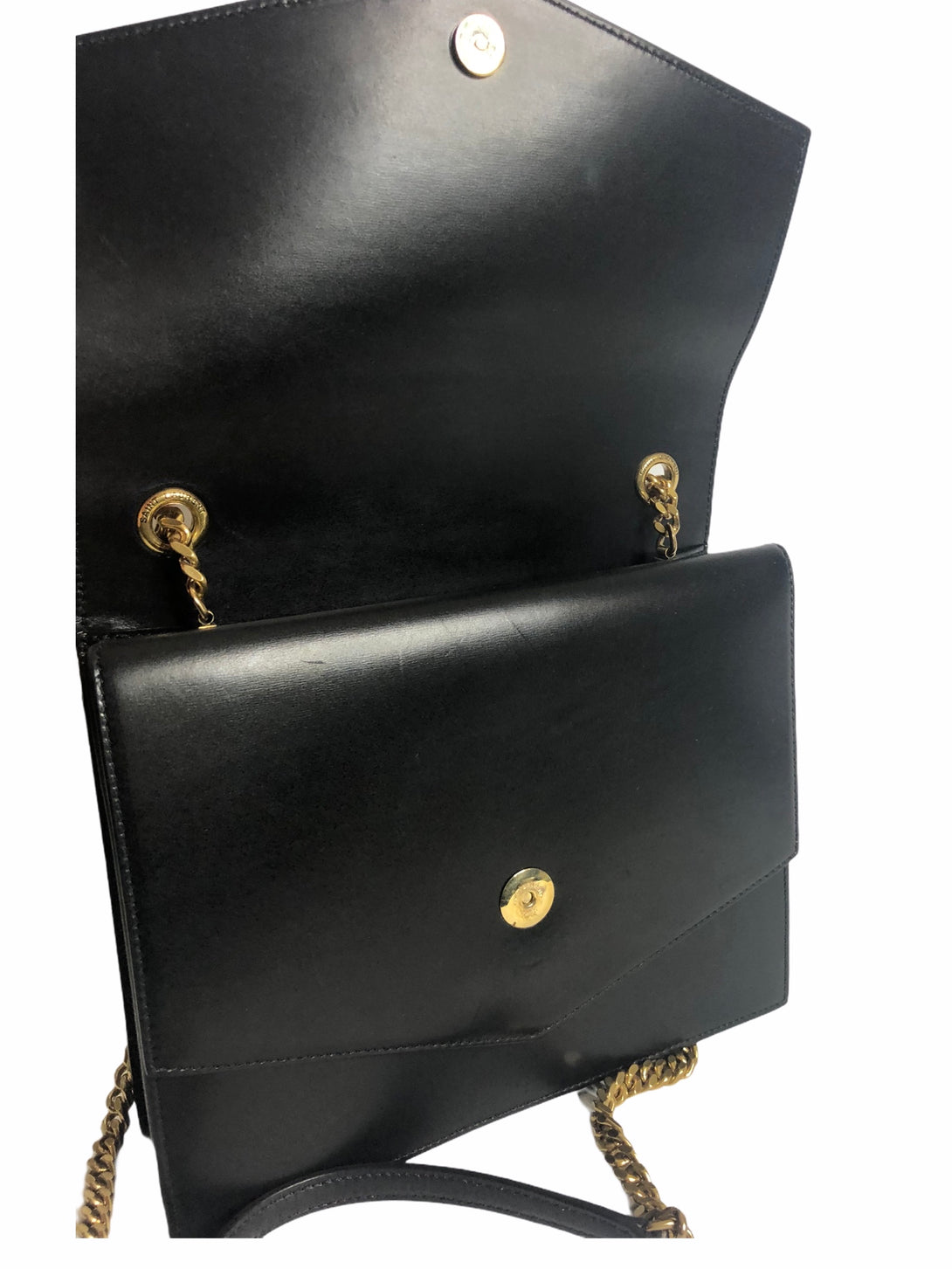 Saint Laurent Black Calf Leather Montaigne Double Flap Shoulder Bag