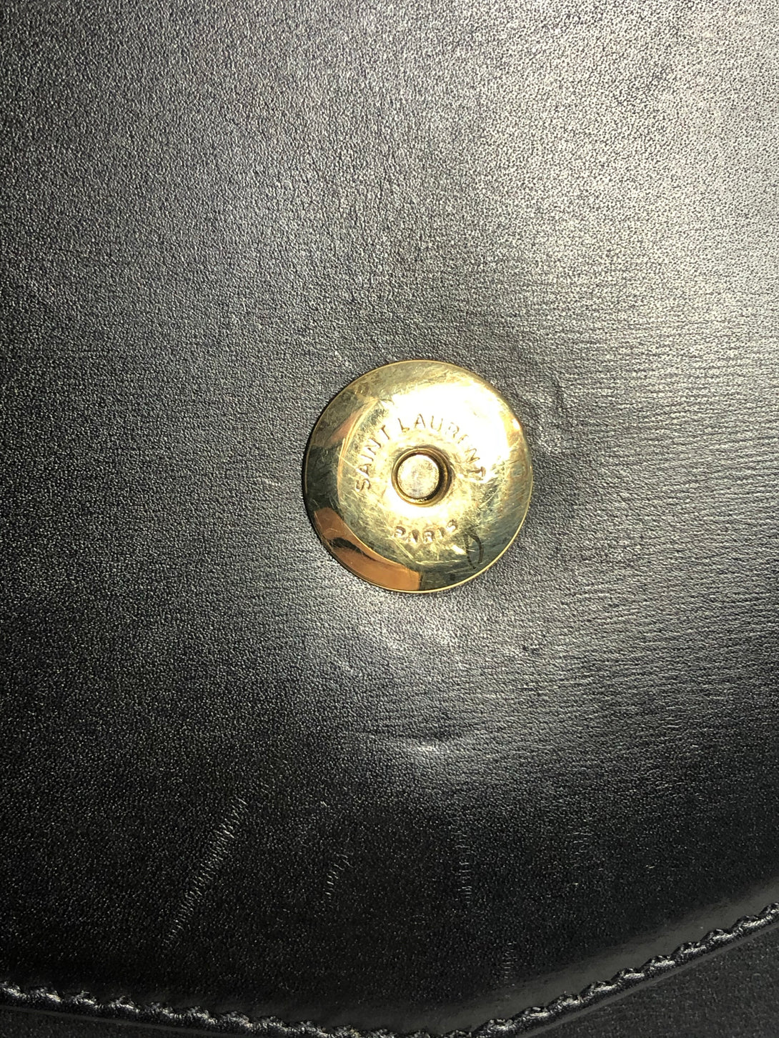 Good: Items show more prominent wear such as noticeable discoloration, stains and snags to fabric. May have worn corners and handles, tarnishing to hardware and creasing to leather. Pen or make up marks may be visible in the interior of the bag.