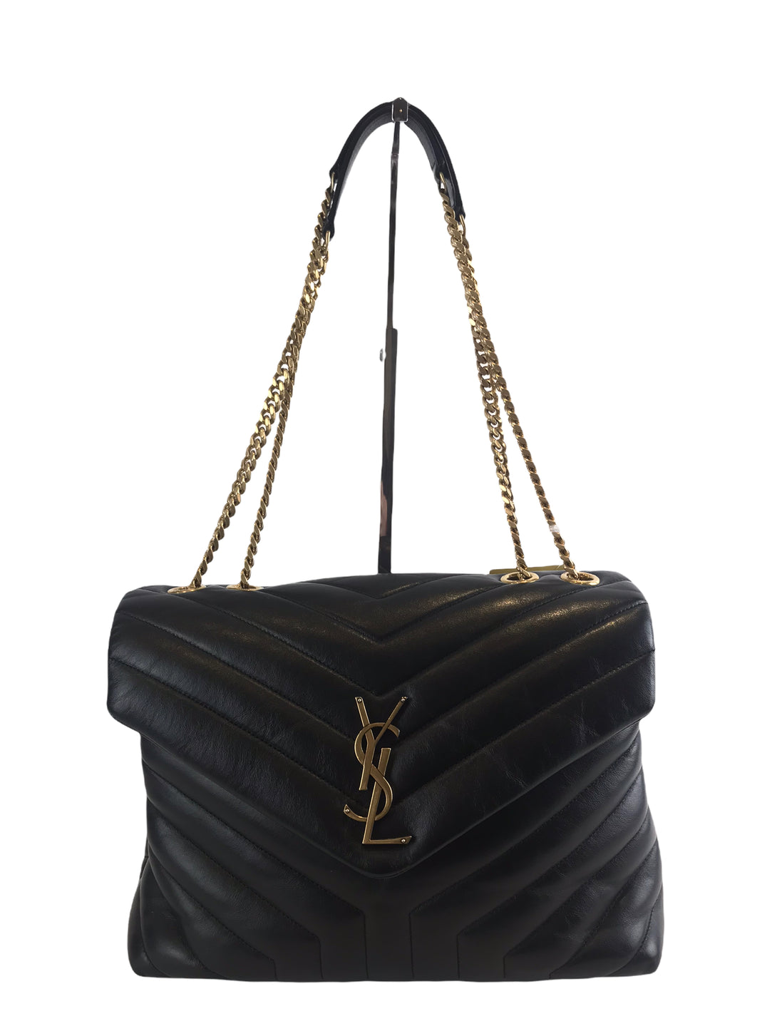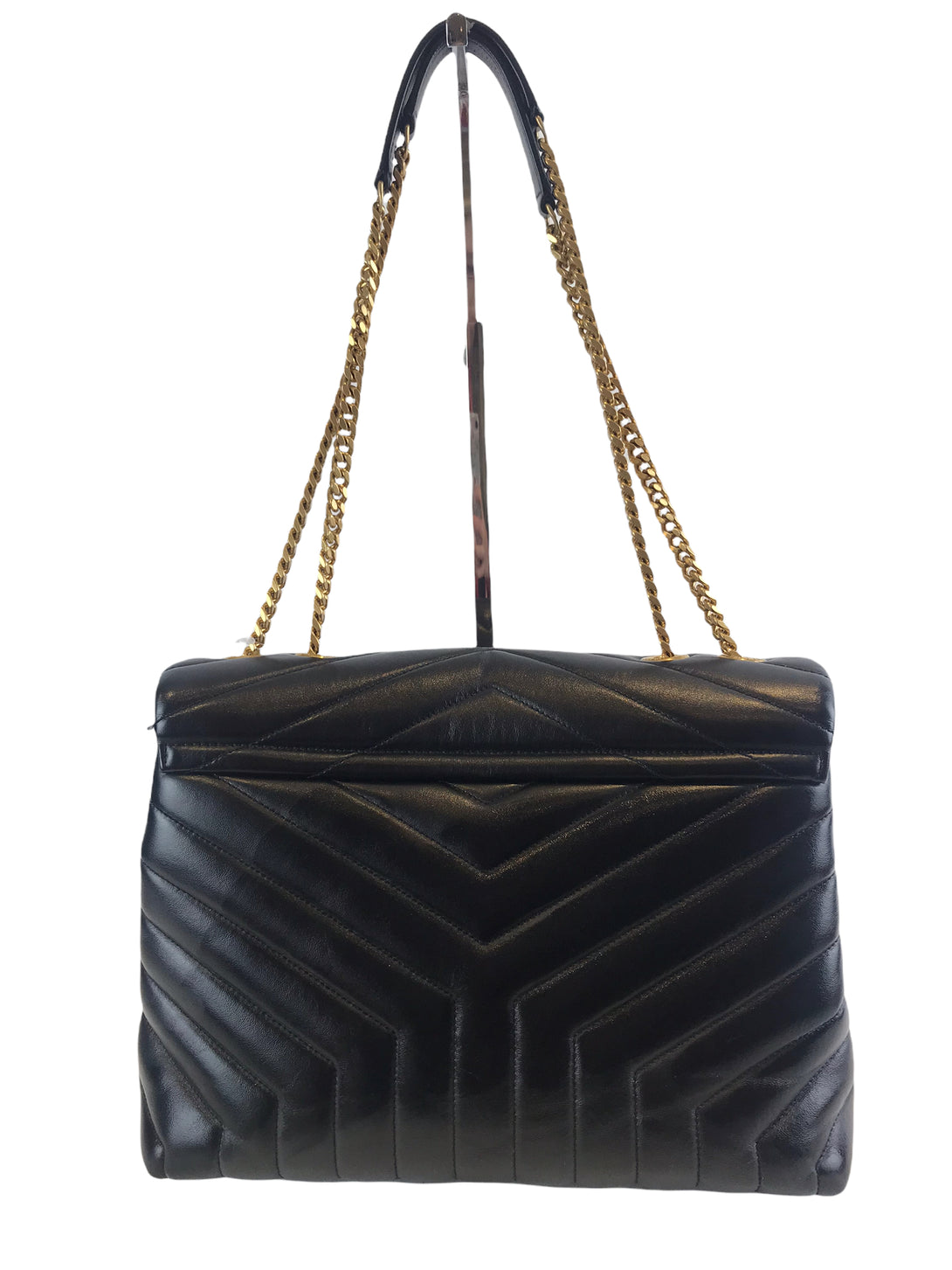 Saint Laurent Black Calfskin Leather ‘Loulou Maltelasse’ Medium Bag