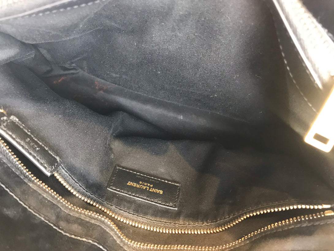 Good: Items show more prominent wear such as noticeable discoloration, stains and snags to fabric. May have worn corners and handles, tarnishing to hardware and creasing to leather. Pen or make up marks may be visible in the interior of the bag.