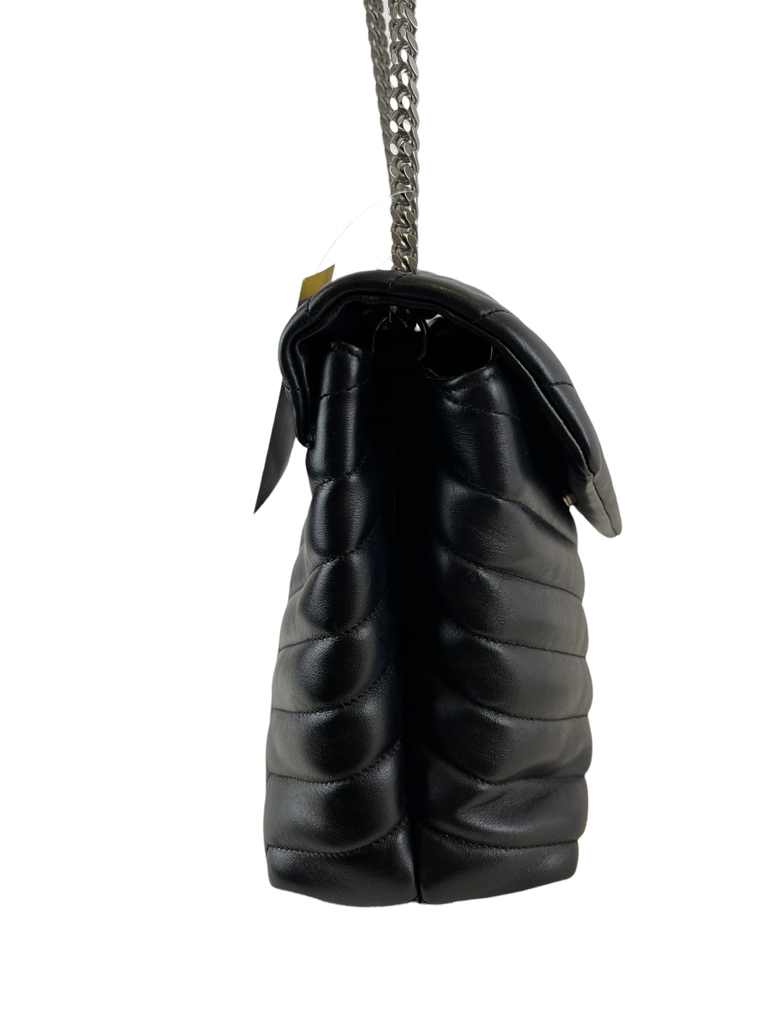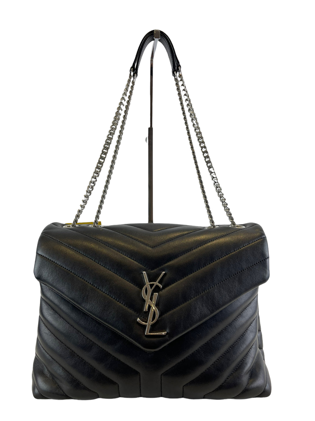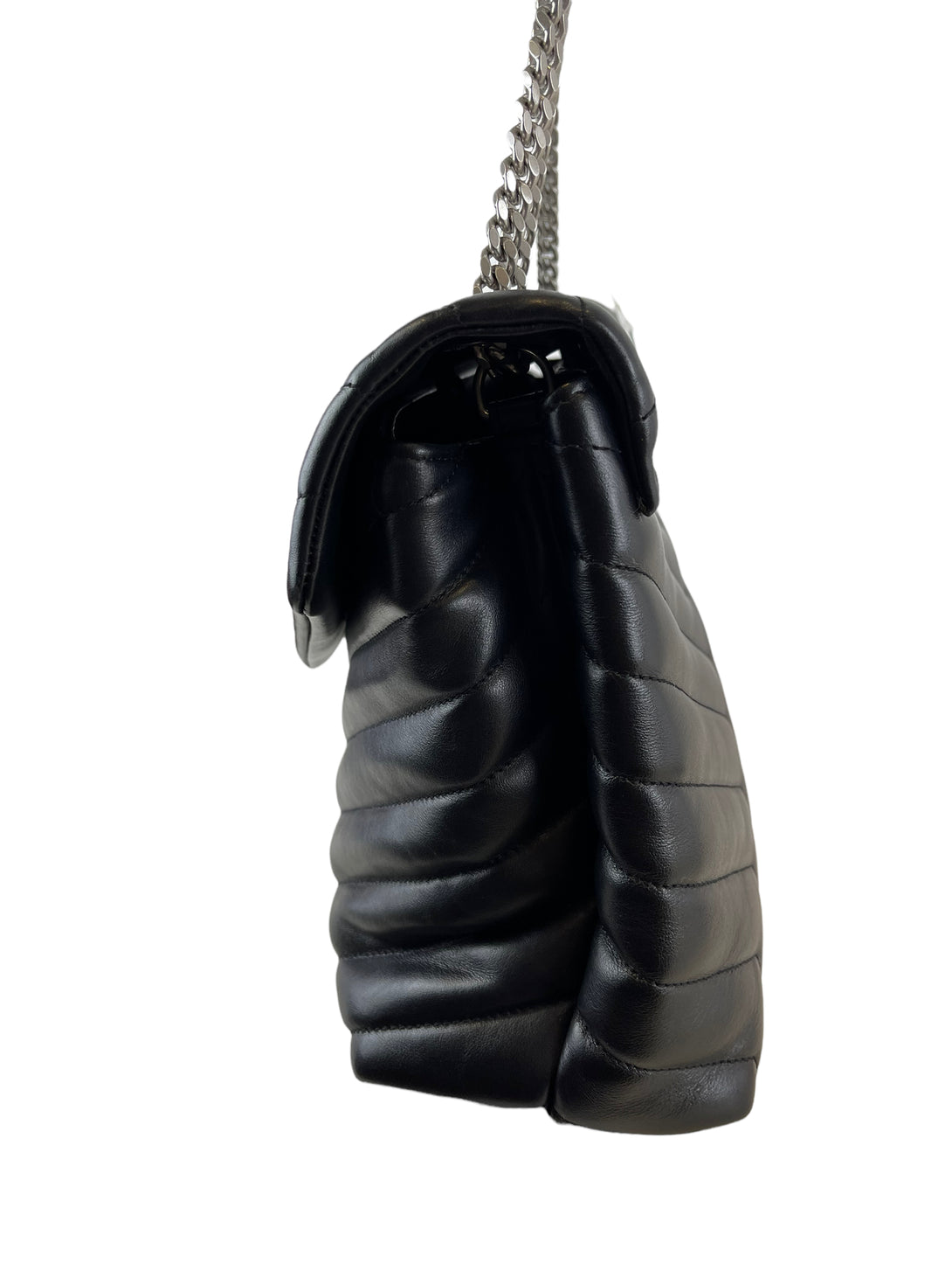 YSL / Saint Laurent Black Chevron Leather “LouLou” Medium Crossbody