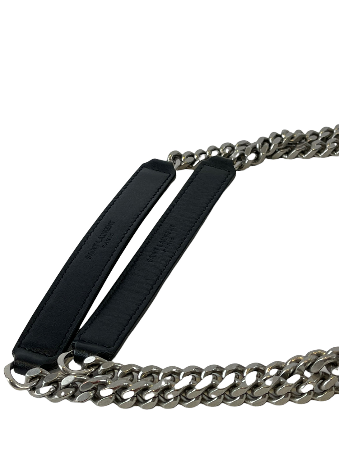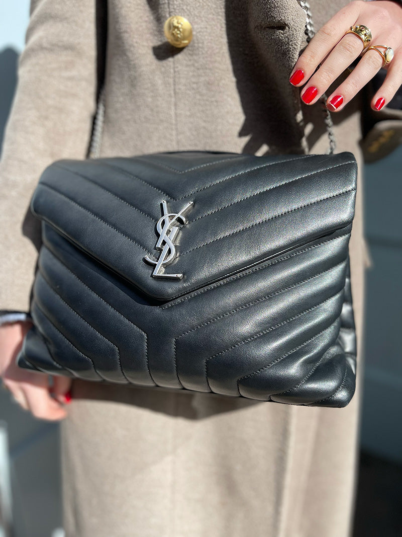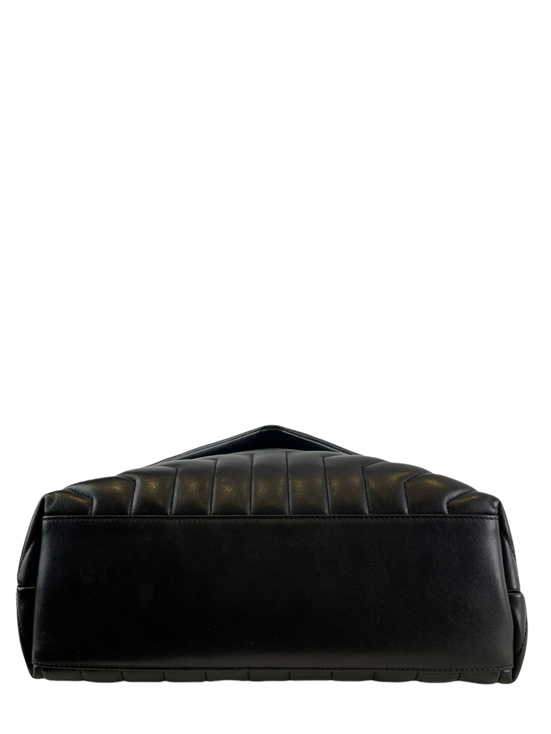 YSL / Saint Laurent Black Chevron Leather “LouLou” Medium Crossbody