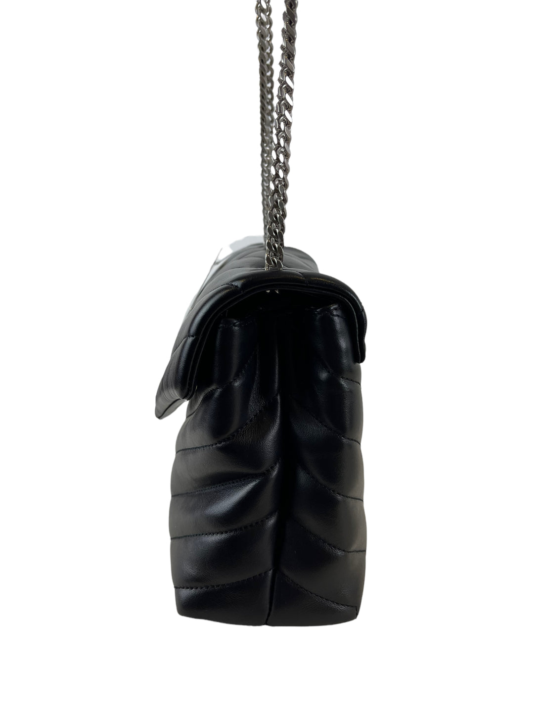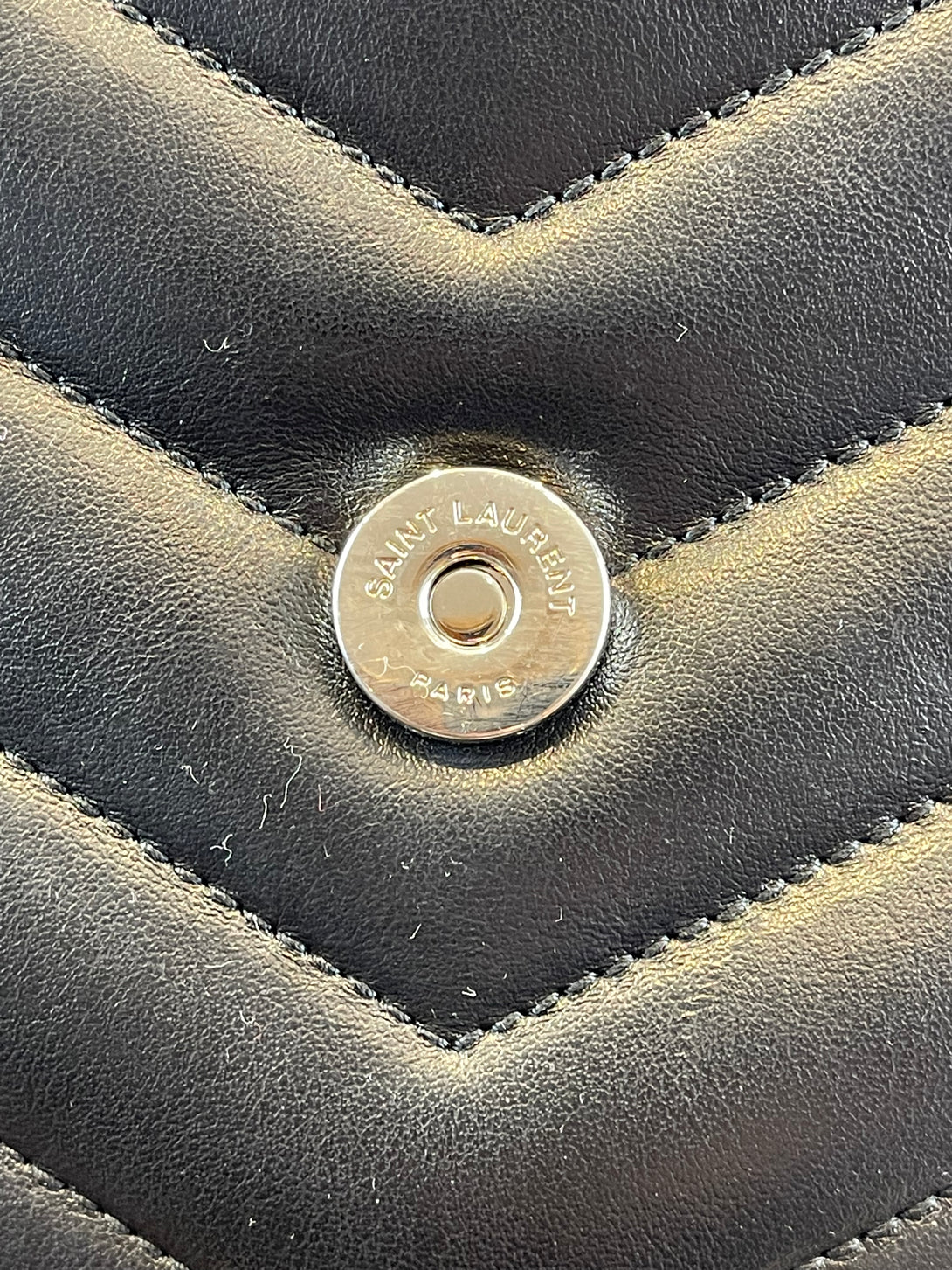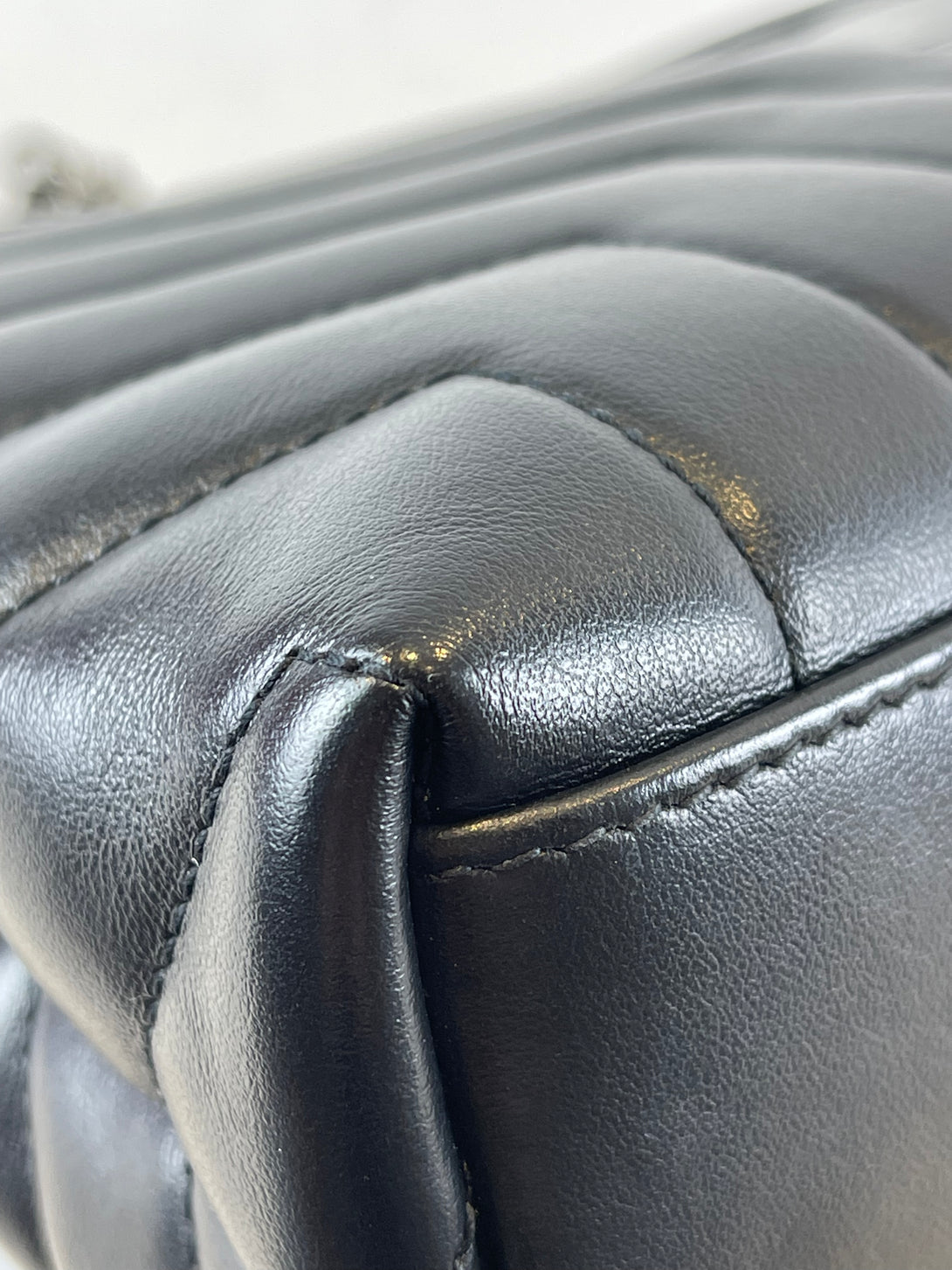 YSL / Saint Laurent Black Chevron Leather “LouLou” Small Crossbody