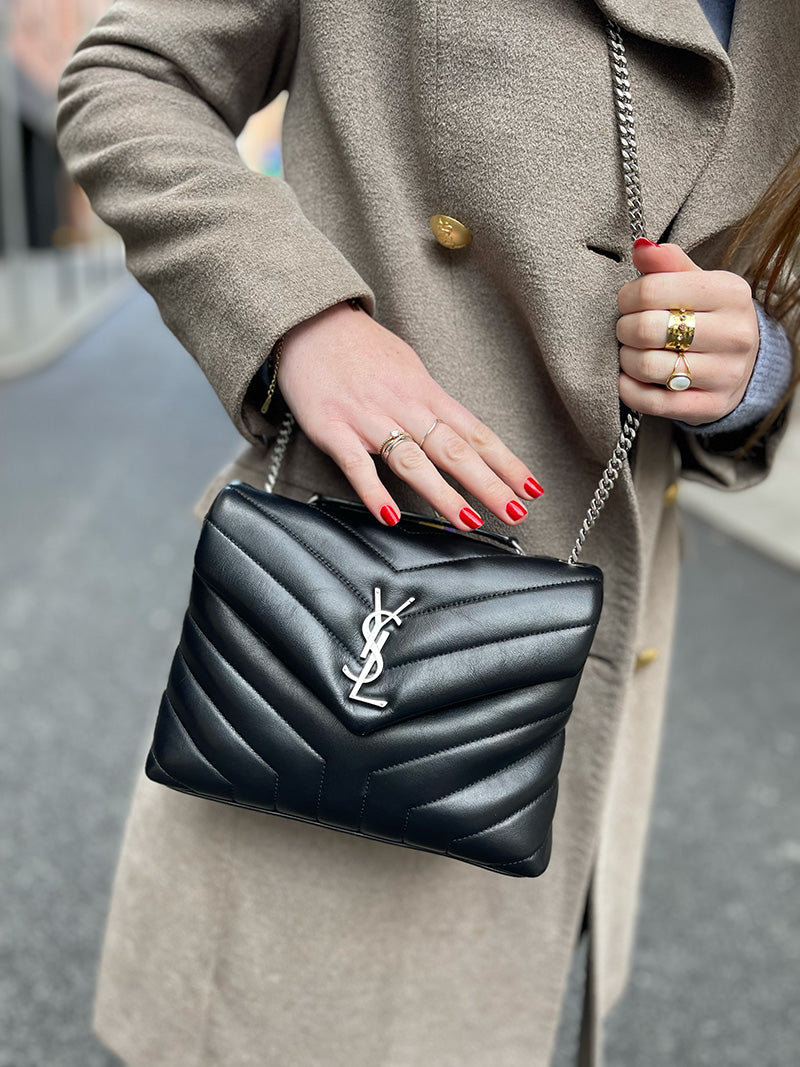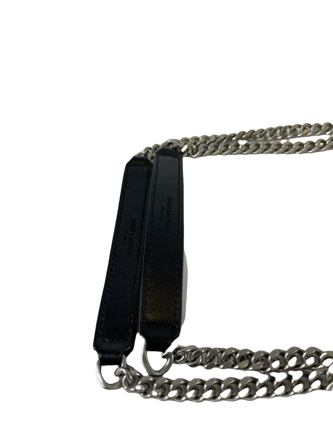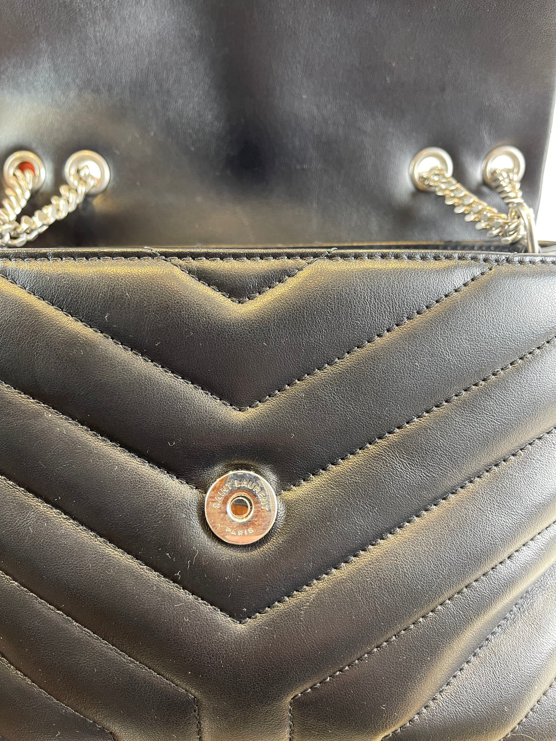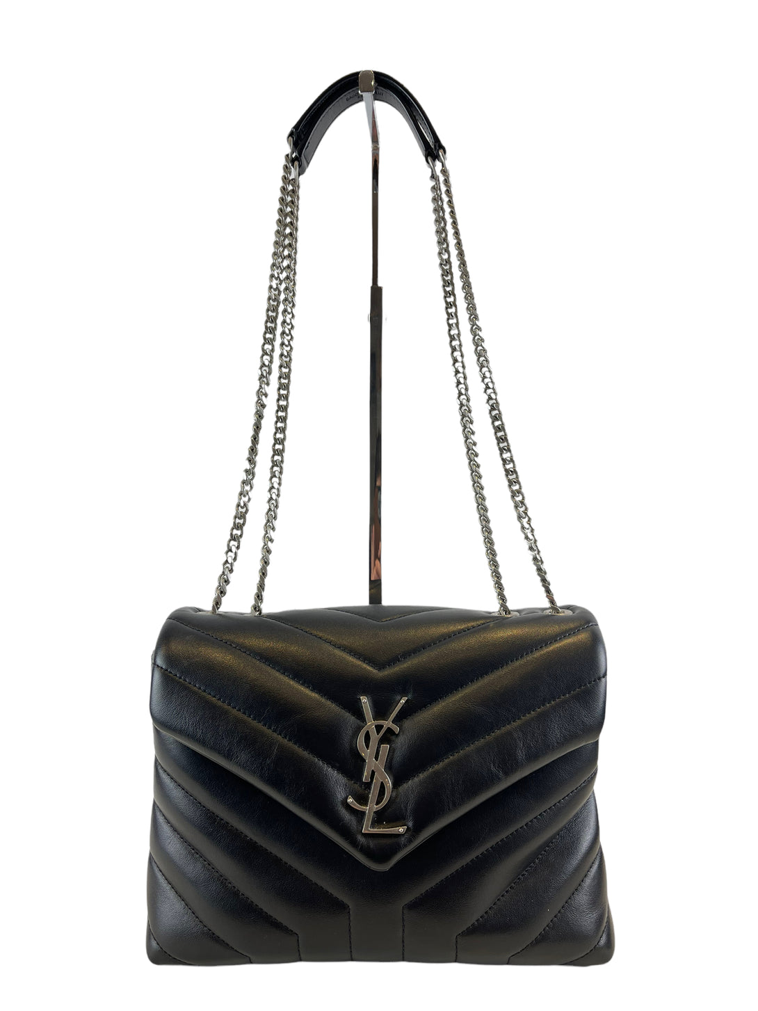 YSL / Saint Laurent Black Chevron Leather “LouLou” Small Crossbody