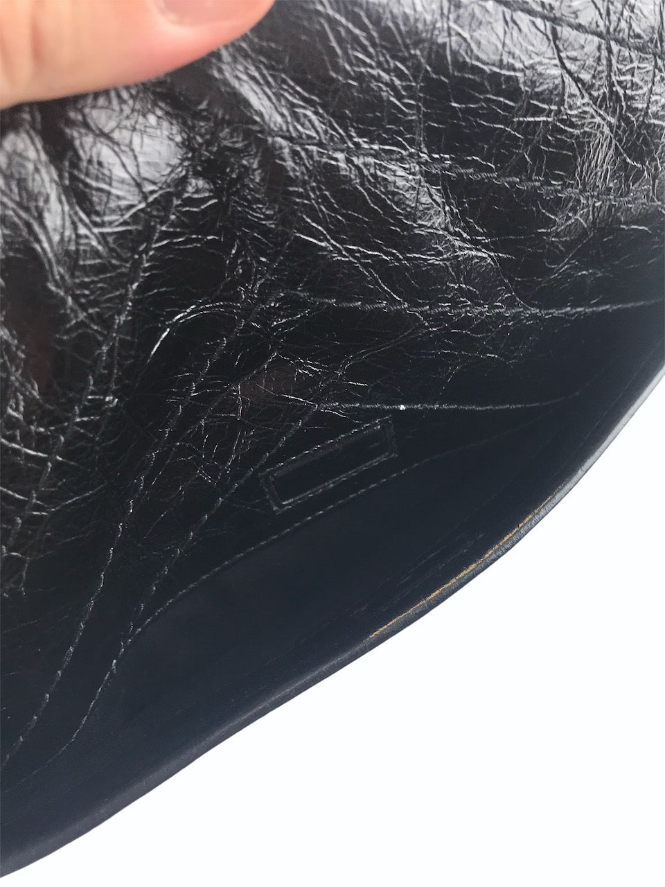 Good: Items show more prominent wear such as noticeable discoloration, stains and snags to fabric. May have worn corners and handles, tarnishing to hardware and creasing to leather. Pen or make up marks may be visible in the interior of the bag.