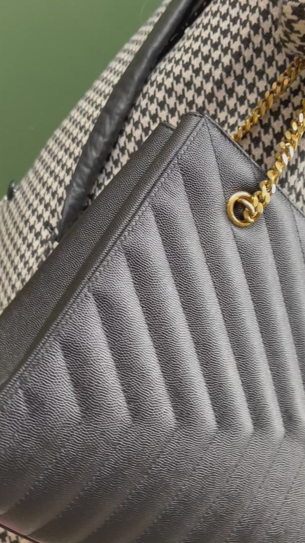 Saint Laurent Black Matelasse Chevron Leather Tribeca Shoulder Bag