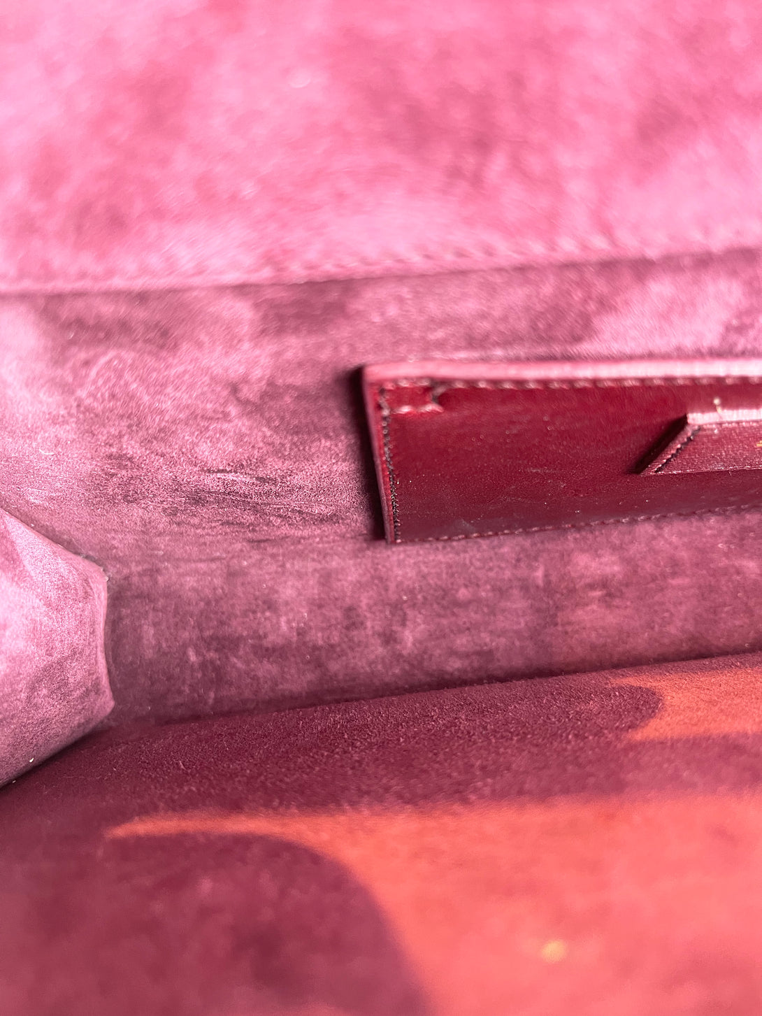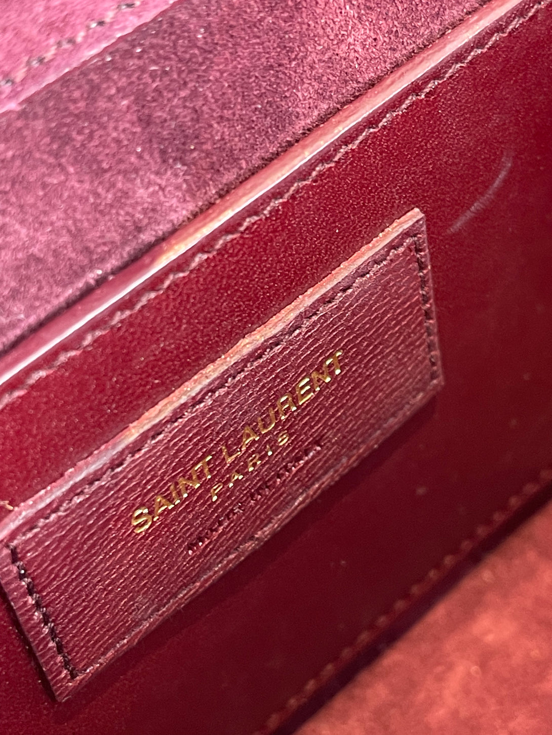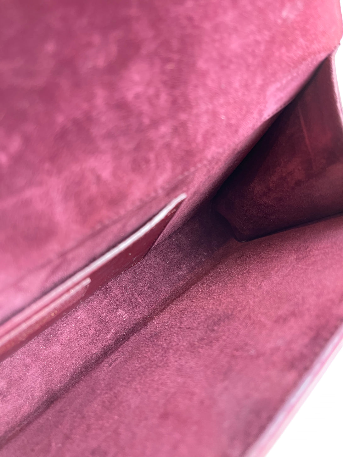 Good: Items show more prominent wear such as noticeable discoloration, stains and snags to fabric. May have worn corners and handles, tarnishing to hardware and creasing to leather. Pen or make up marks may be visible in the interior of the bag.