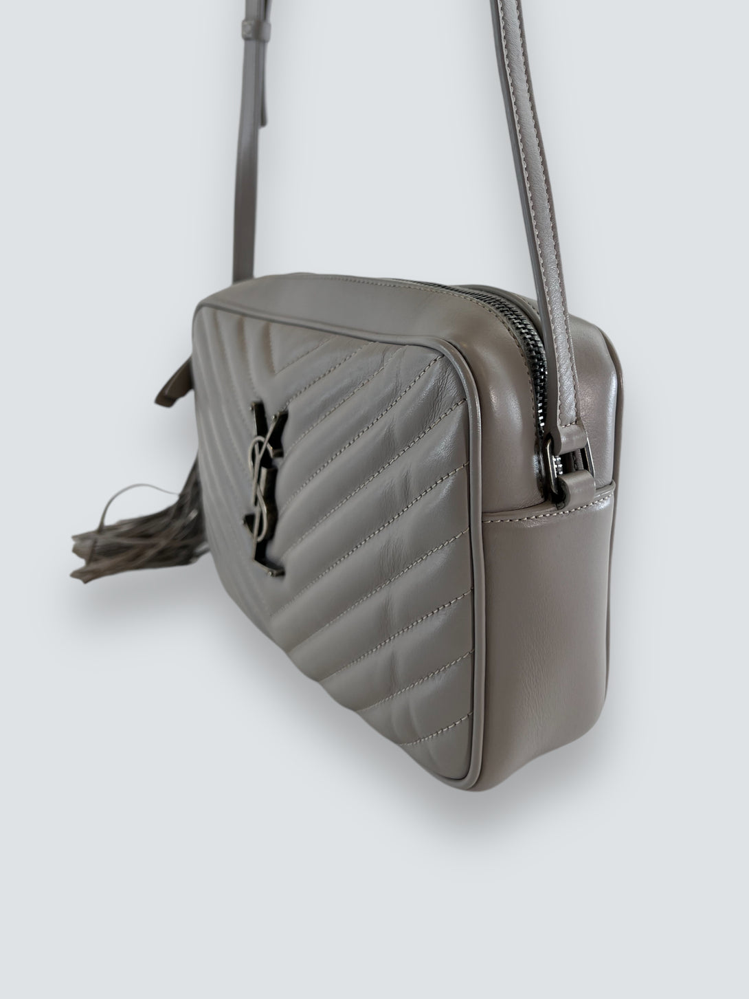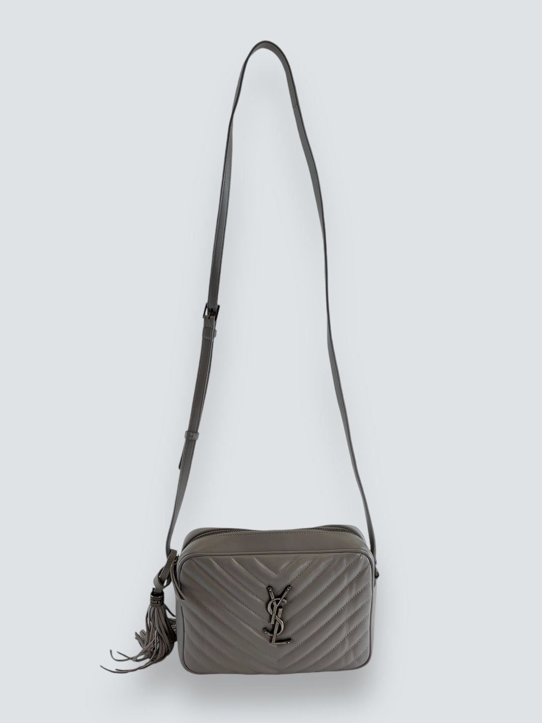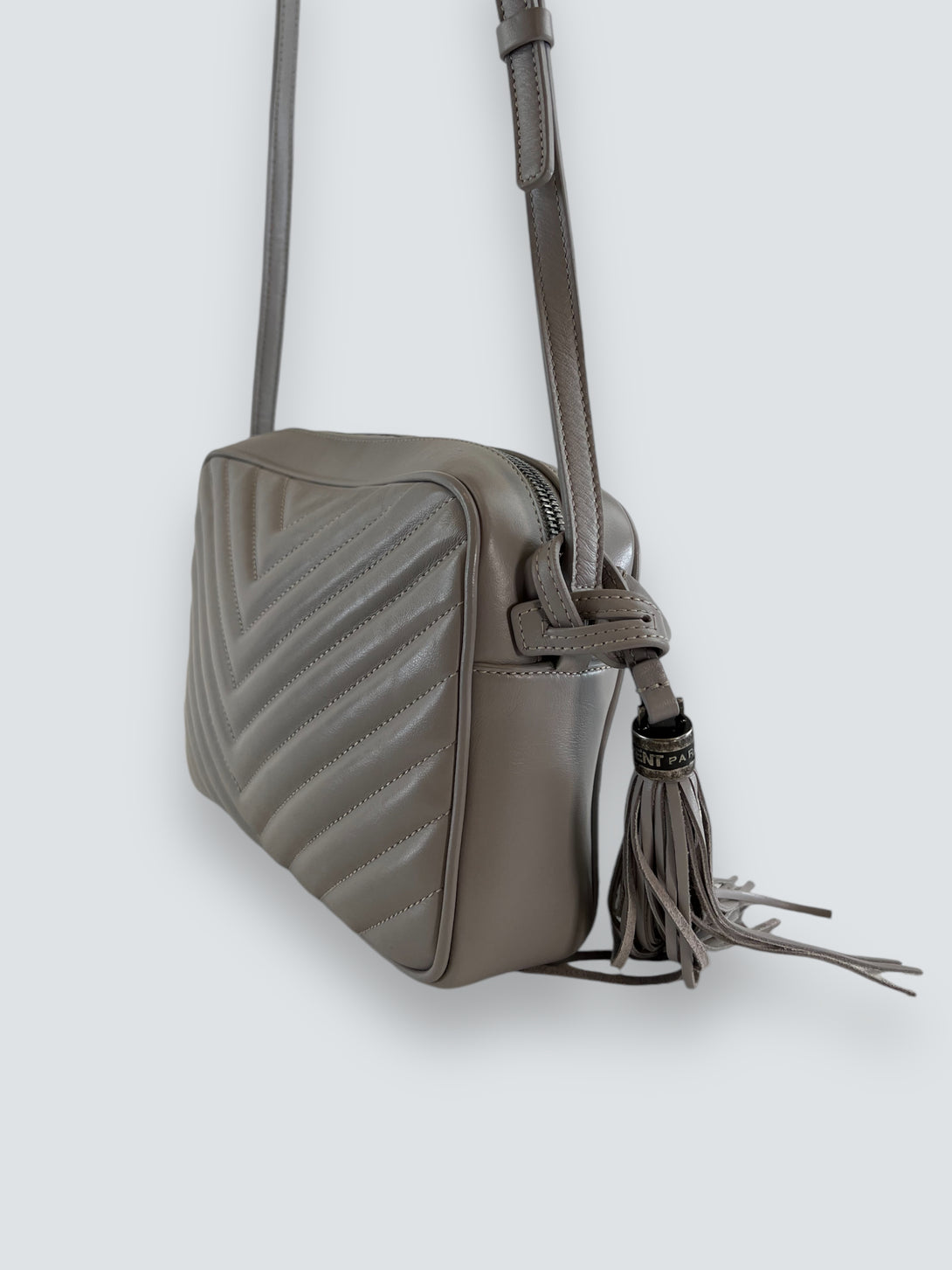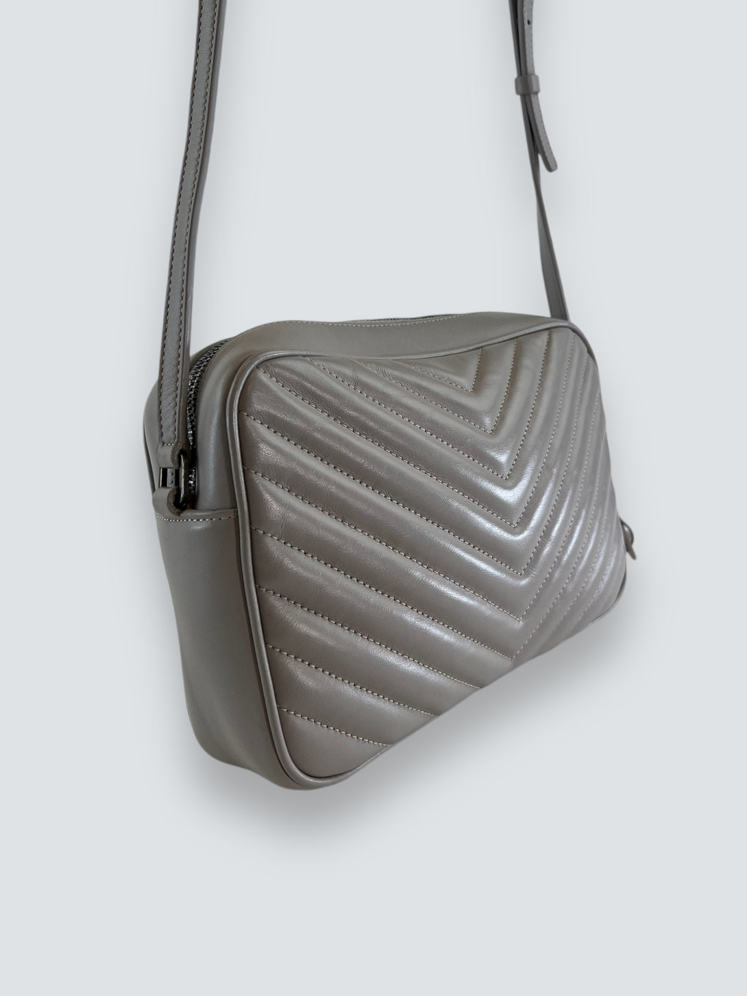 Saint Laurent Grey Quilted Leather "Lou" Crossbody