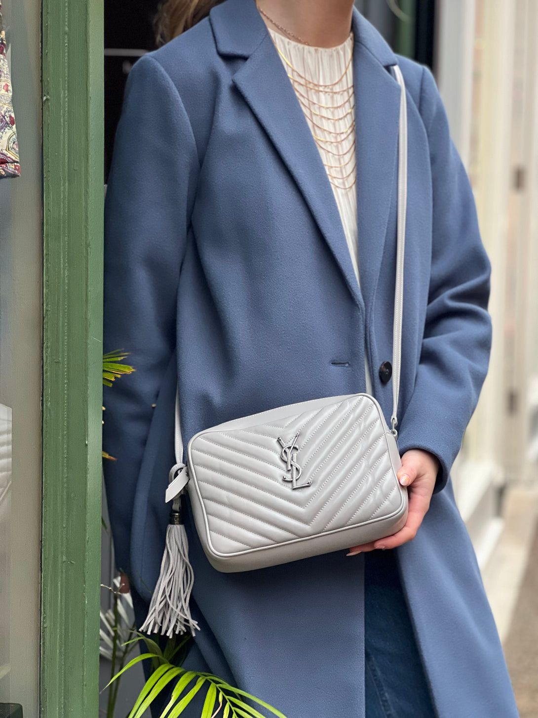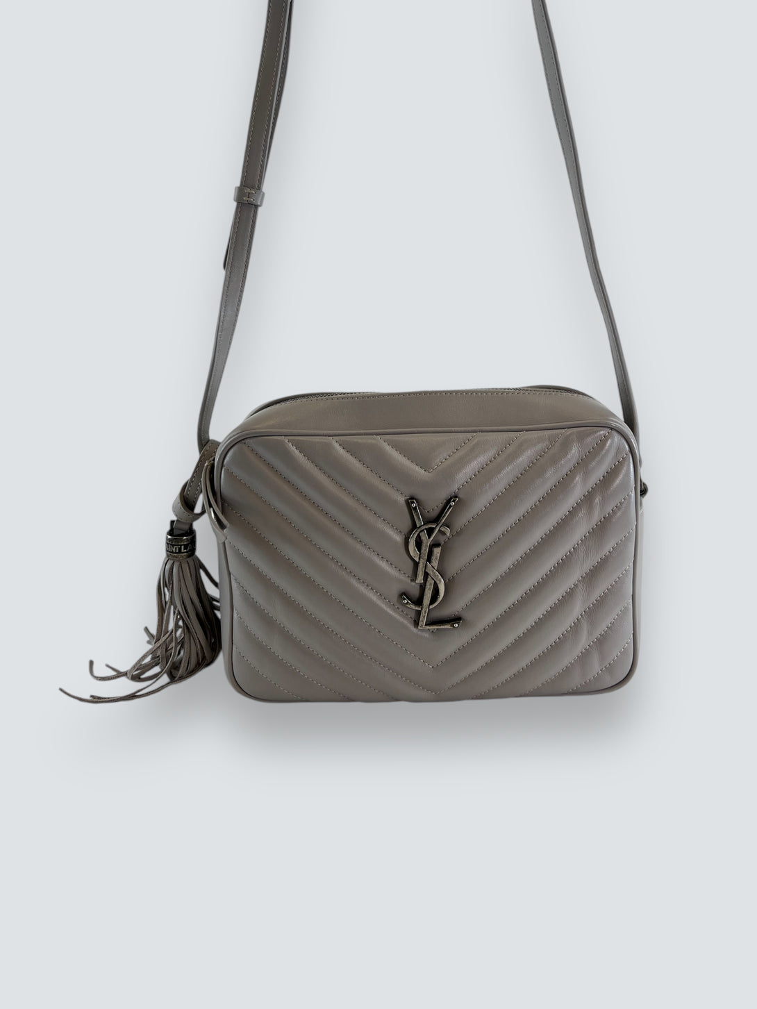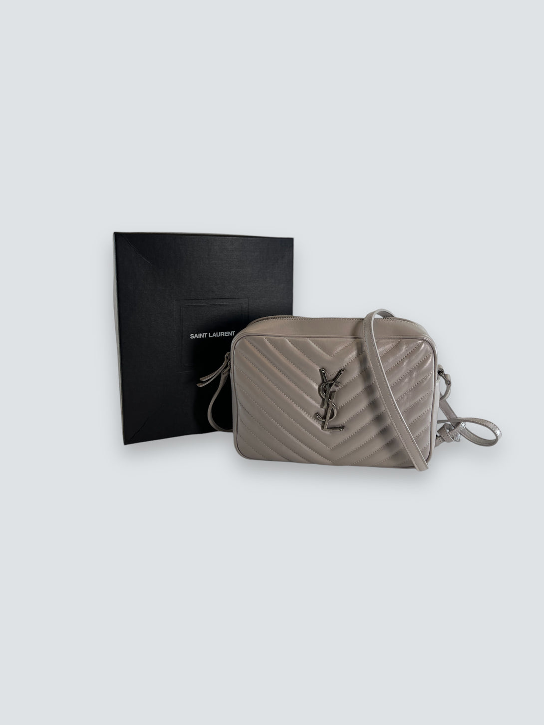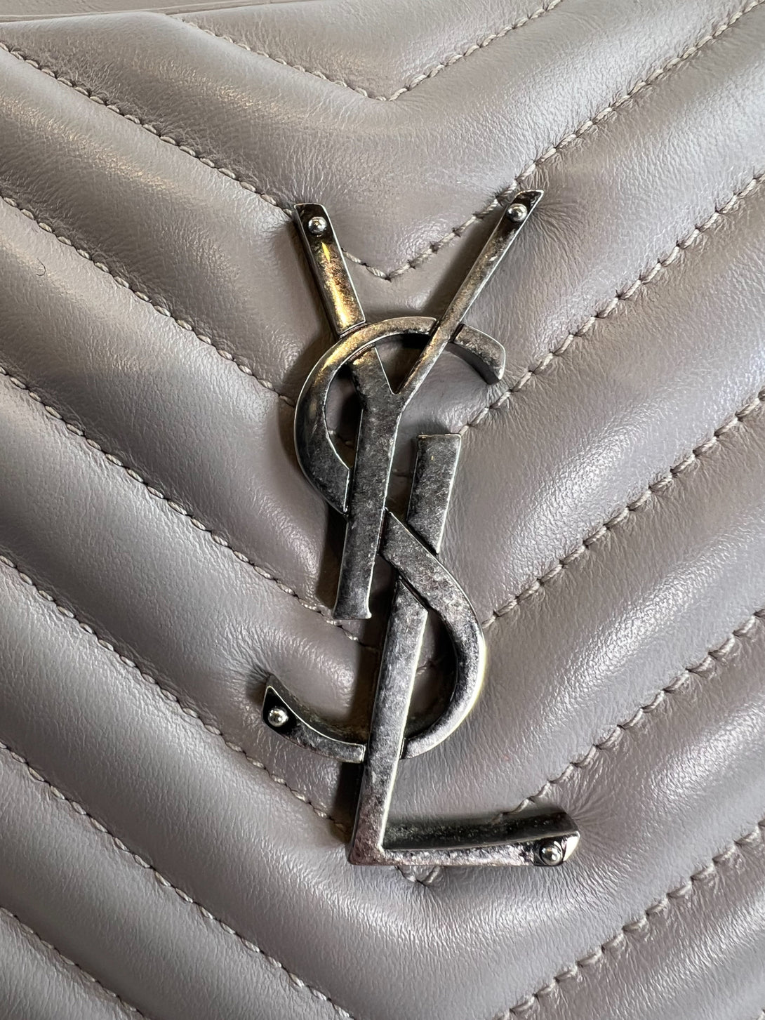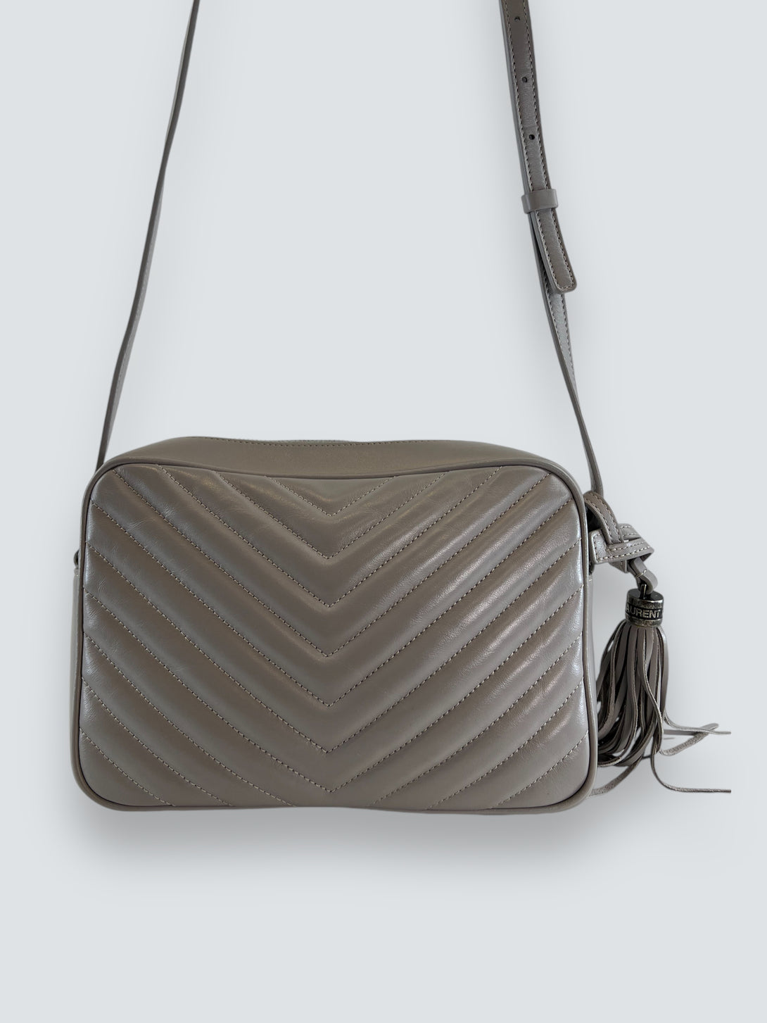 Saint Laurent Grey Quilted Leather "Lou" Crossbody