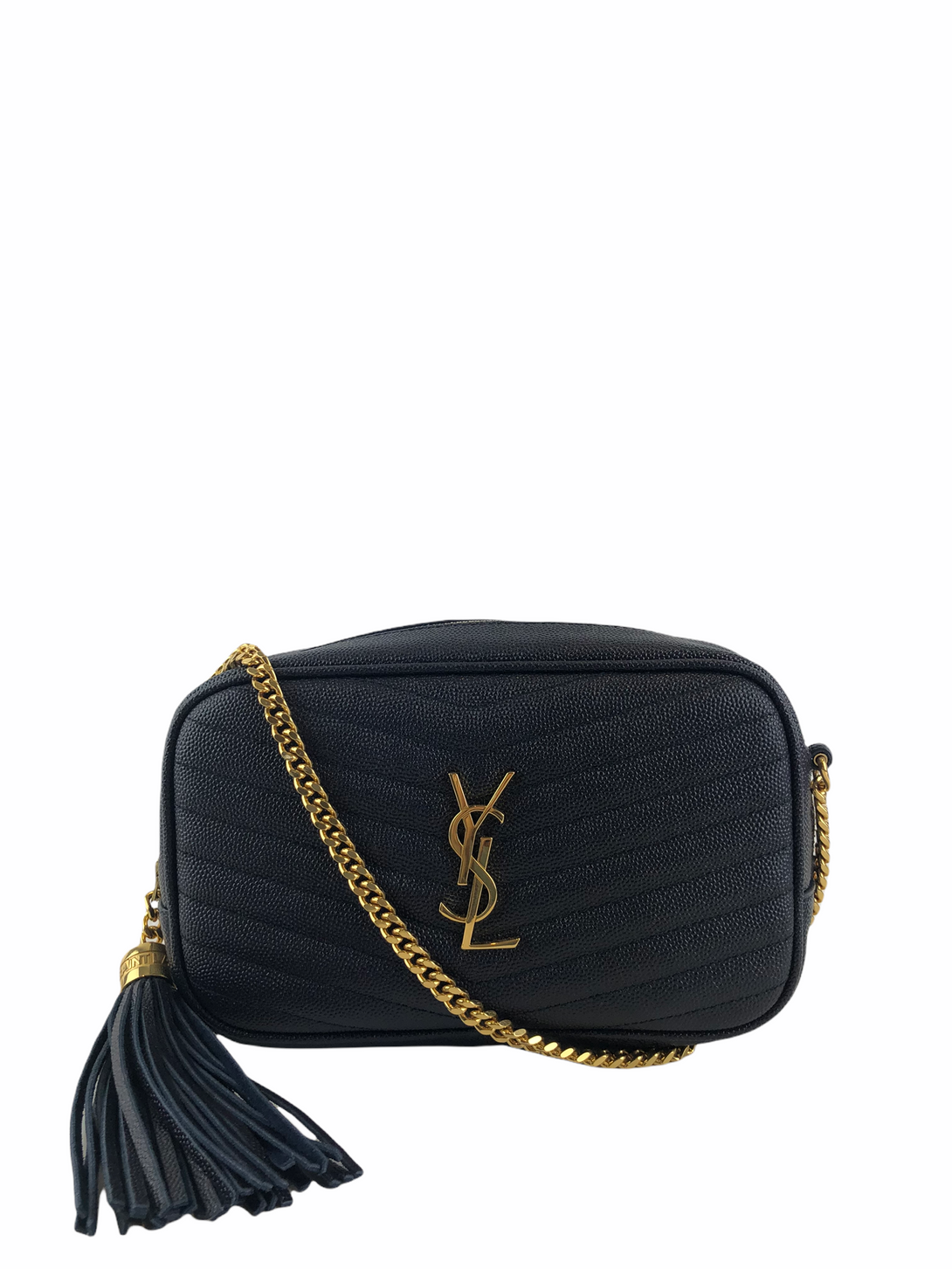 Saint Laurent Navy Leather “Lou” Camera Crossbody