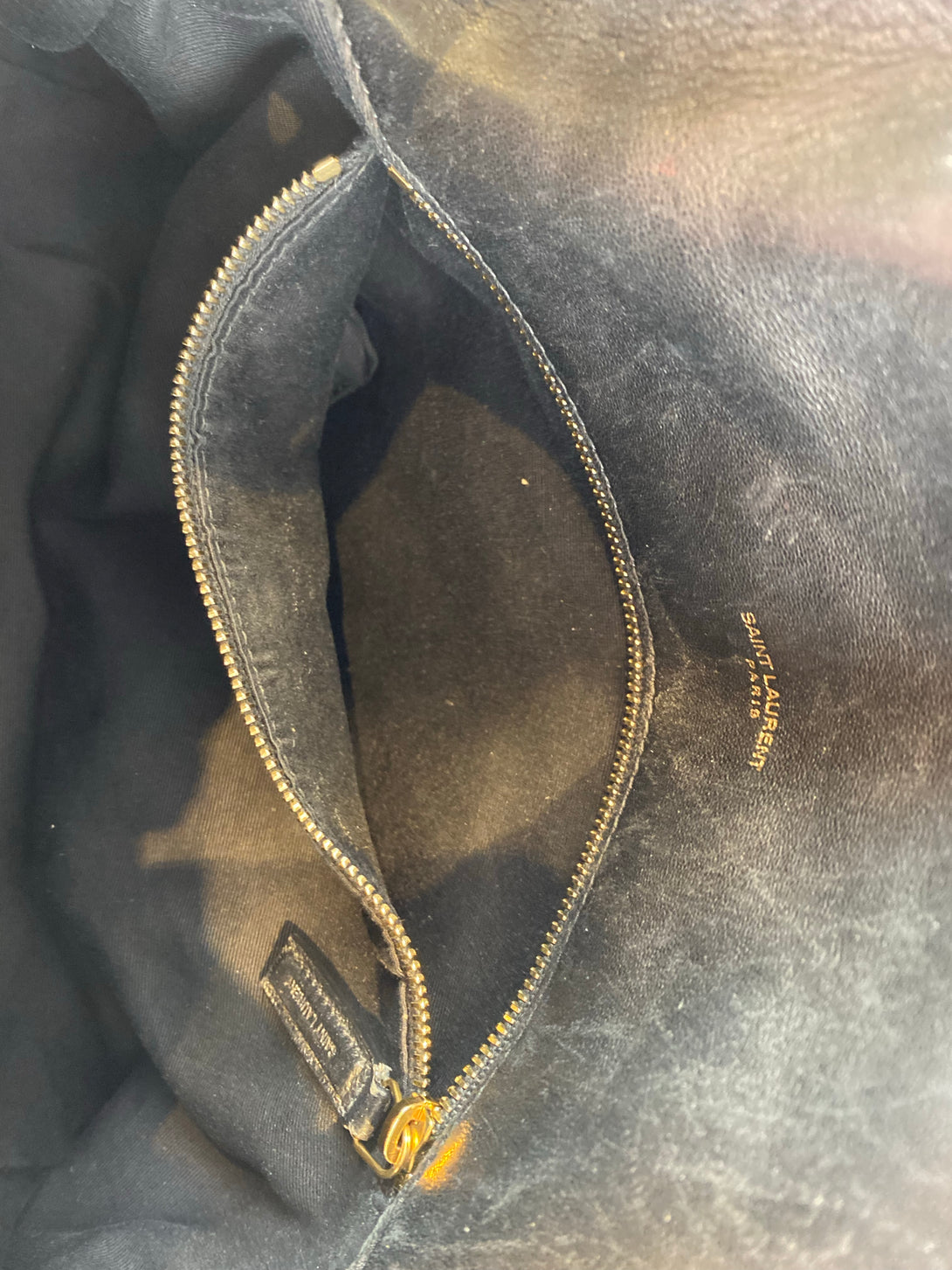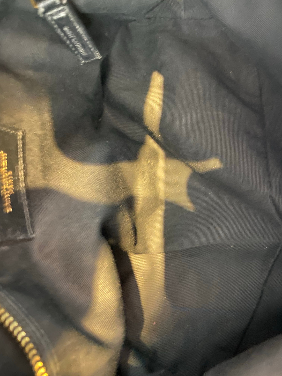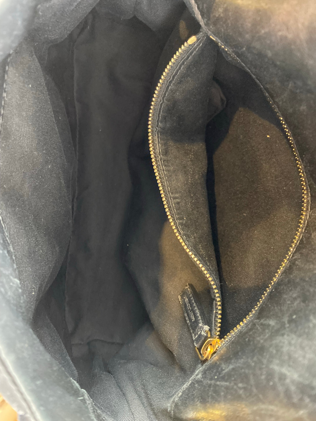 Good: Items show more prominent wear such as noticeable discoloration, stains and snags to fabric. May have worn corners and handles, tarnishing to hardware and creasing to leather. Pen or make up marks may be visible in the interior of the bag.