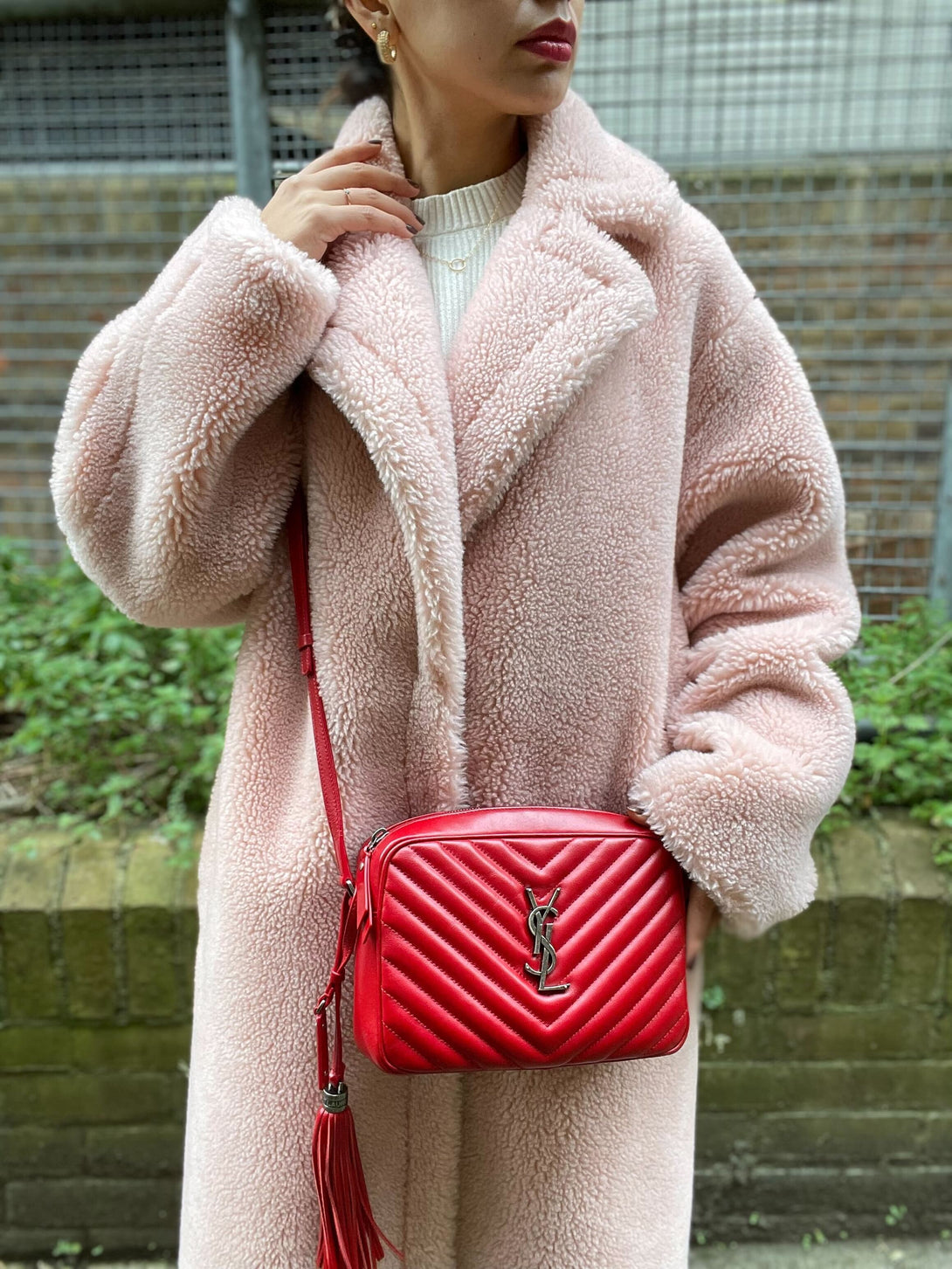 Saint Laurent Red Chevron Leather 'Lou Camera' Bag