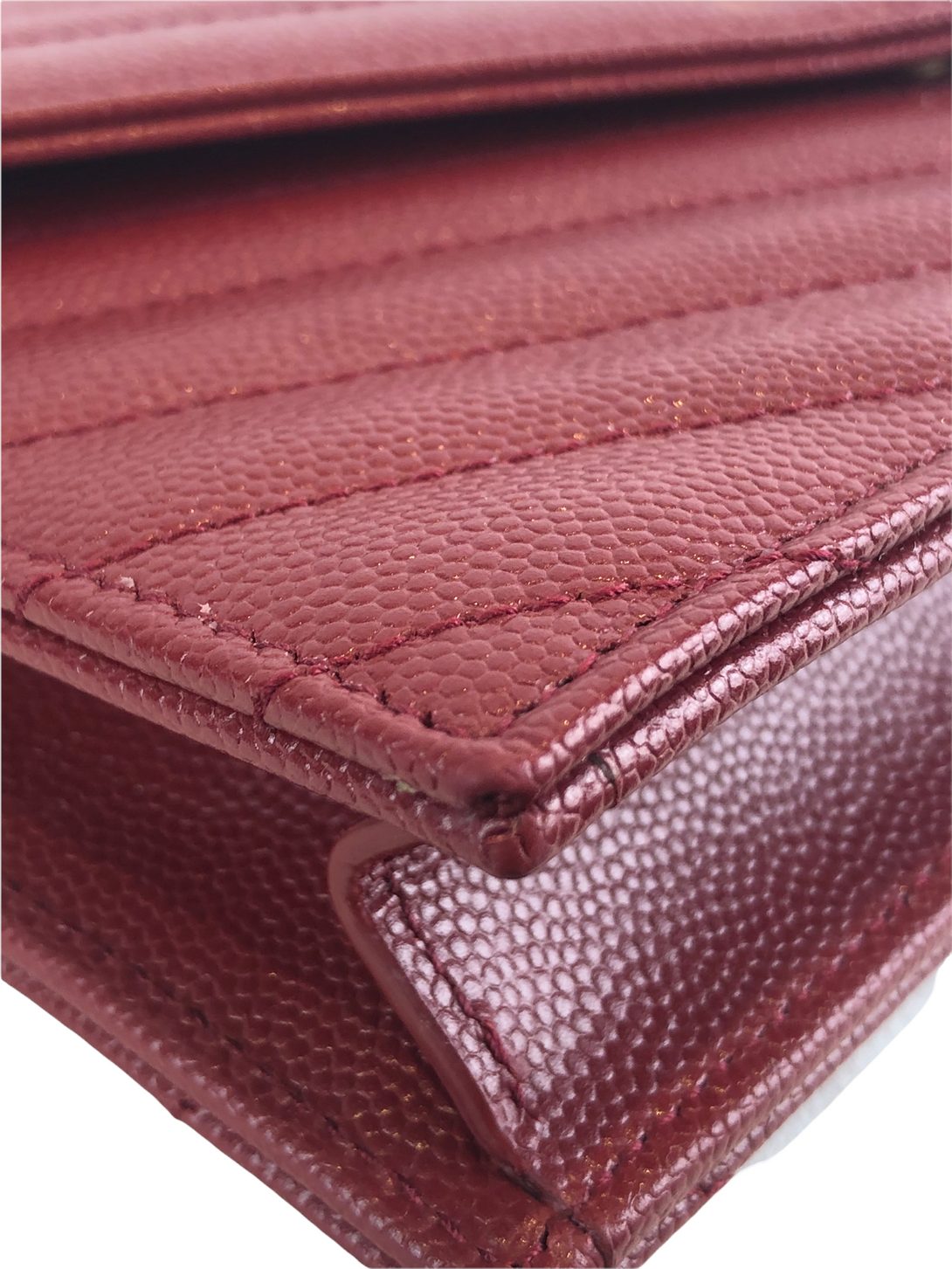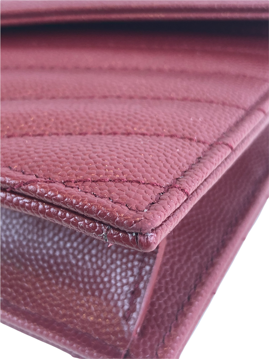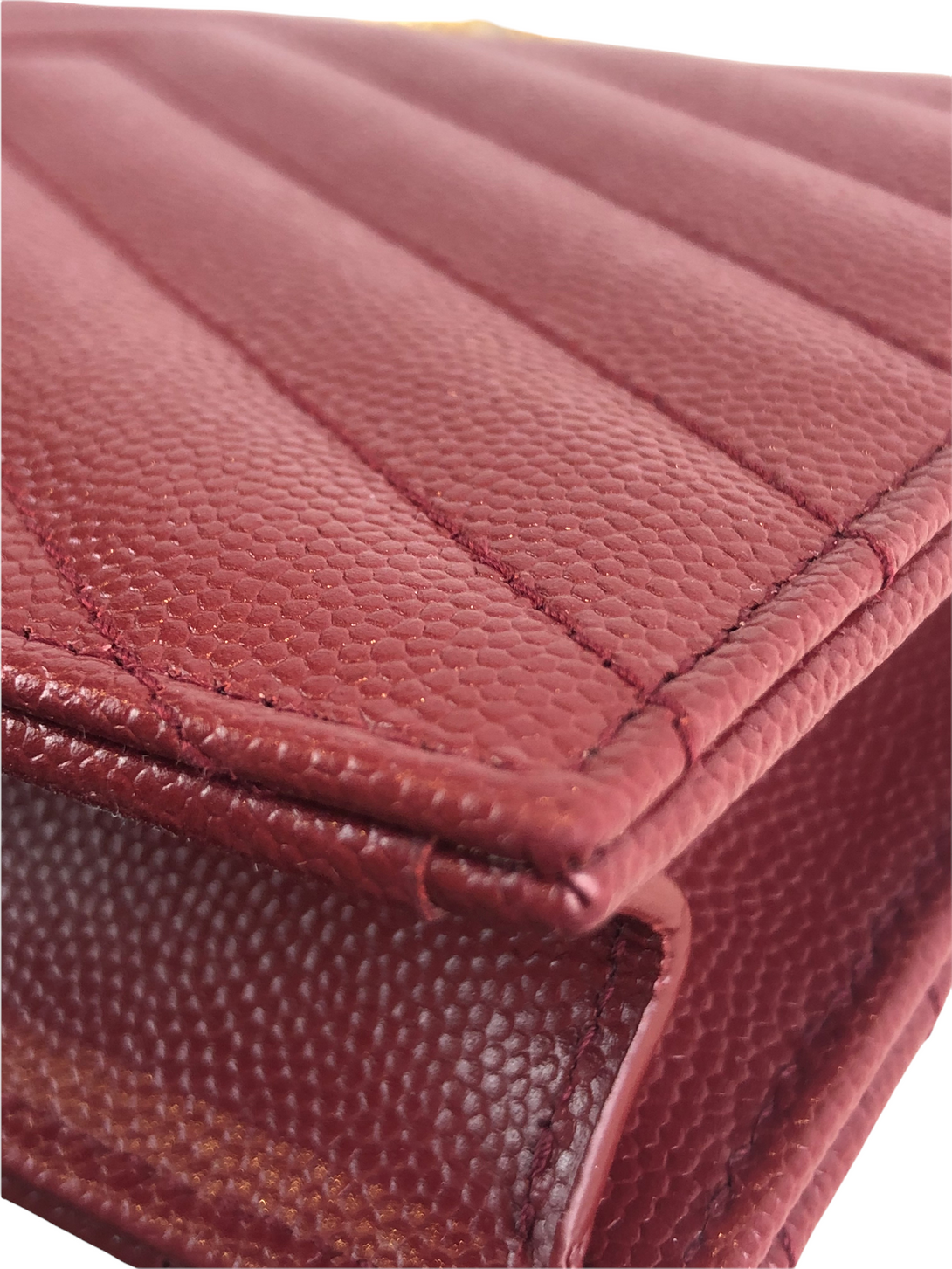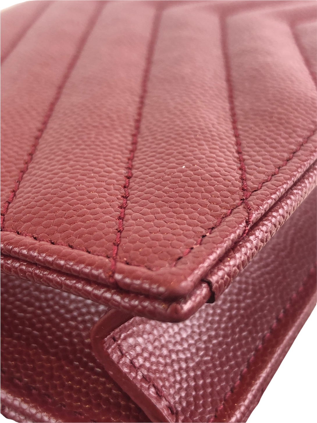 Saint Laurent Red Matelasse Chevron Leather Wallet on Chain