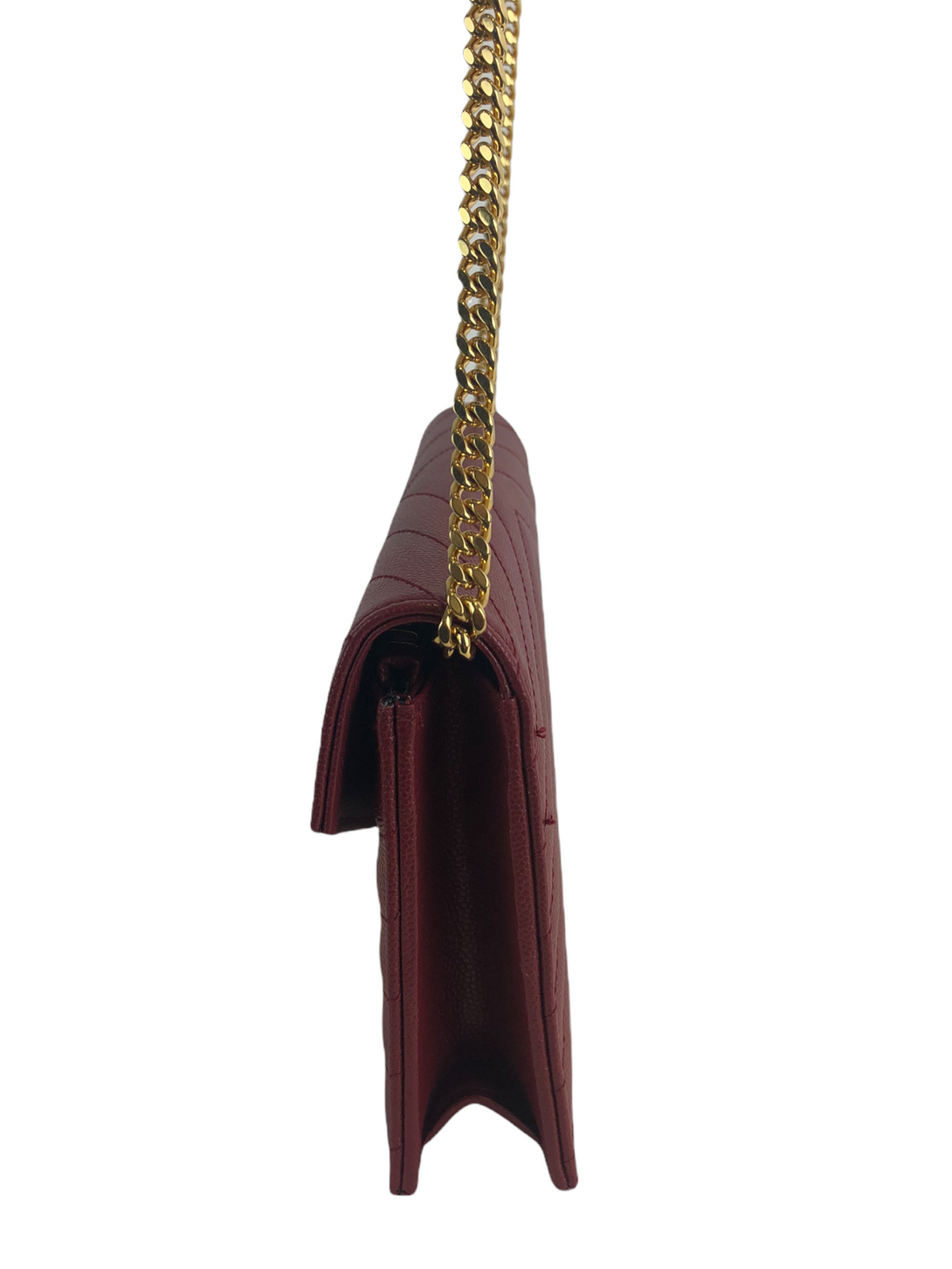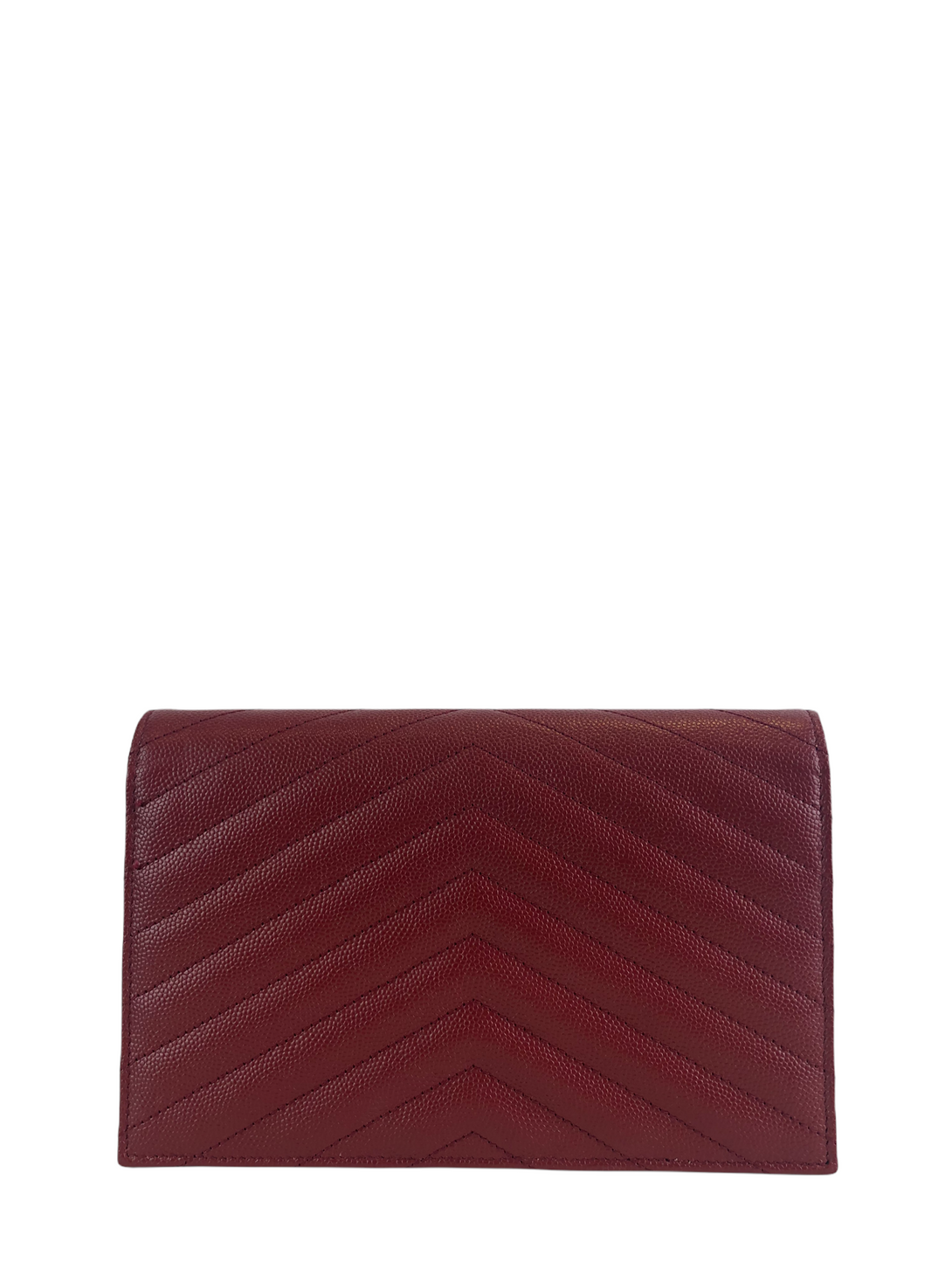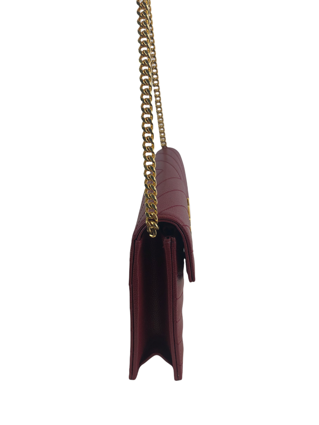 Saint Laurent Red Matelasse Chevron Leather Wallet on Chain