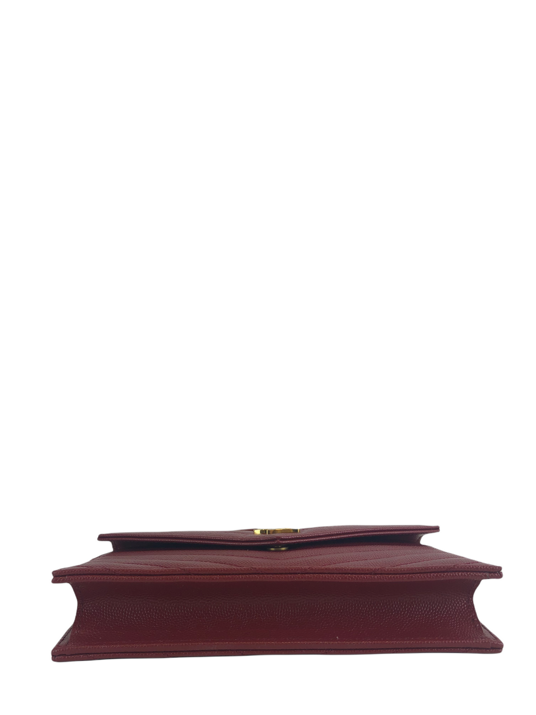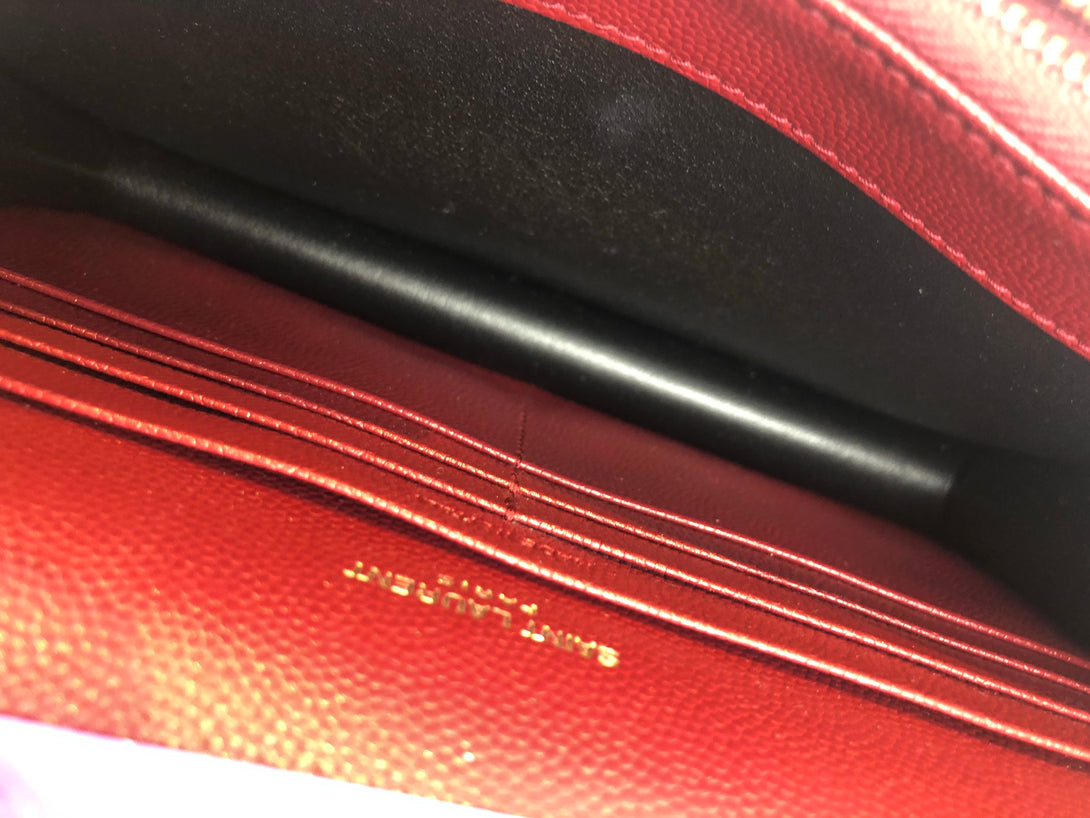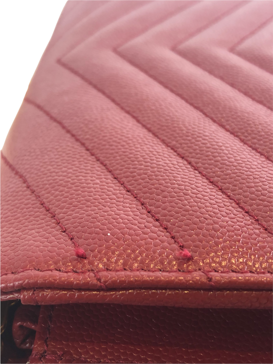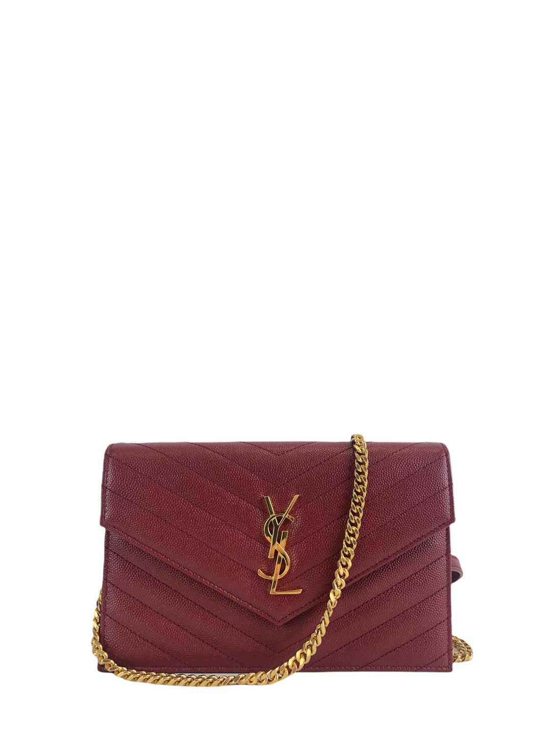 Saint Laurent Red Matelasse Chevron Leather Wallet on Chain